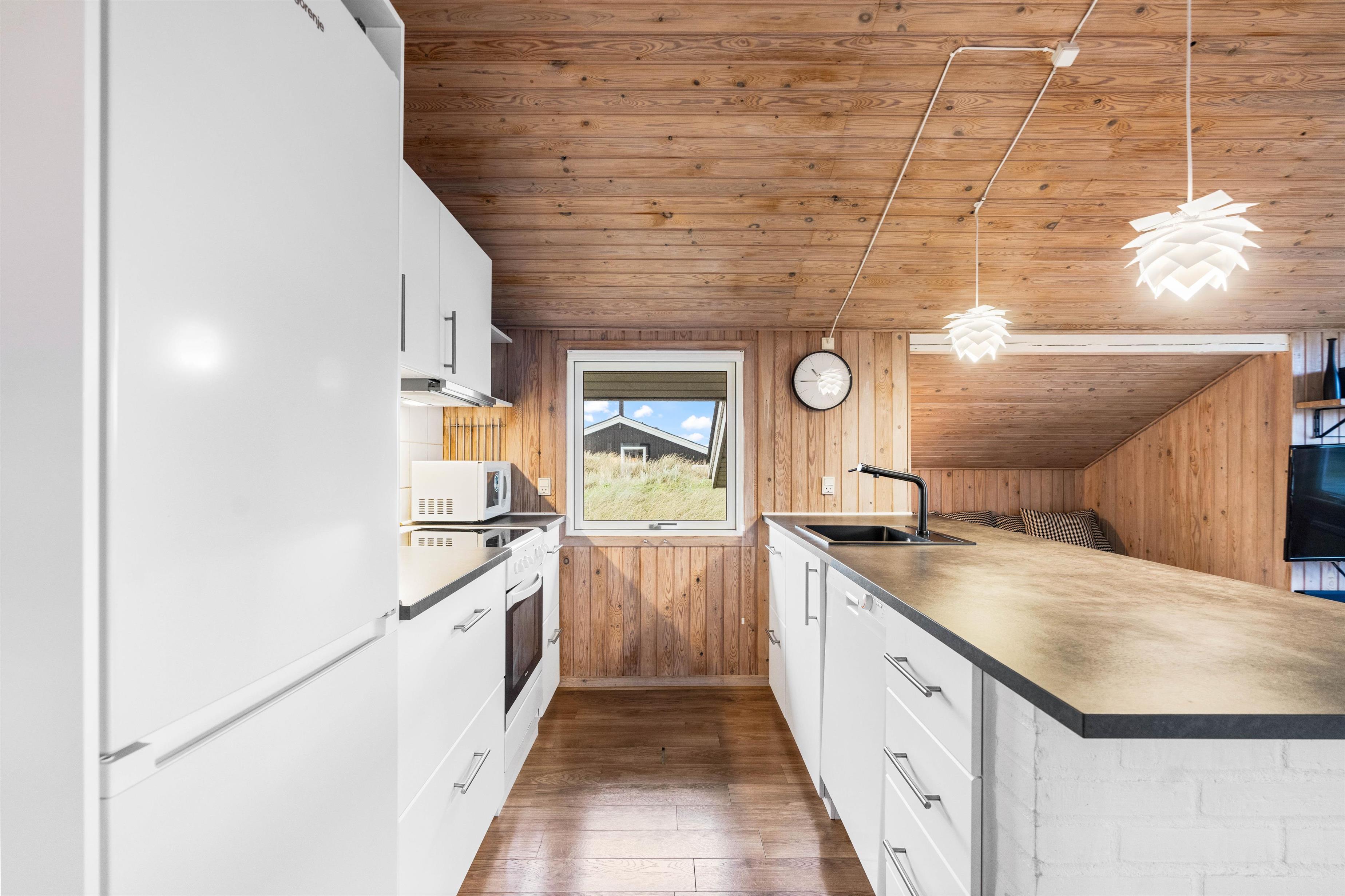 Her finder du de perfekte rammer for en vellykket ferie: Lyst træhus i en dejlig beliggenhed tæt på stranden. Feriehuset er hyggeligt og pænt indrettet og blev delvist renoveret i 2020 - med nyt badeværelse og køkken. Sommerhuset har en stor lukketterrasse og ligger på en kuperet klitgrund.
