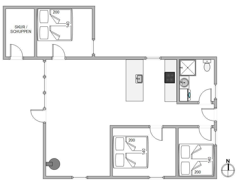 Til natten kan I fordele jer på sommerhusets 3 flotte og gode soveværelser, der alle er indrettet med komfortable dobbeltsenge på 140 centimeter.