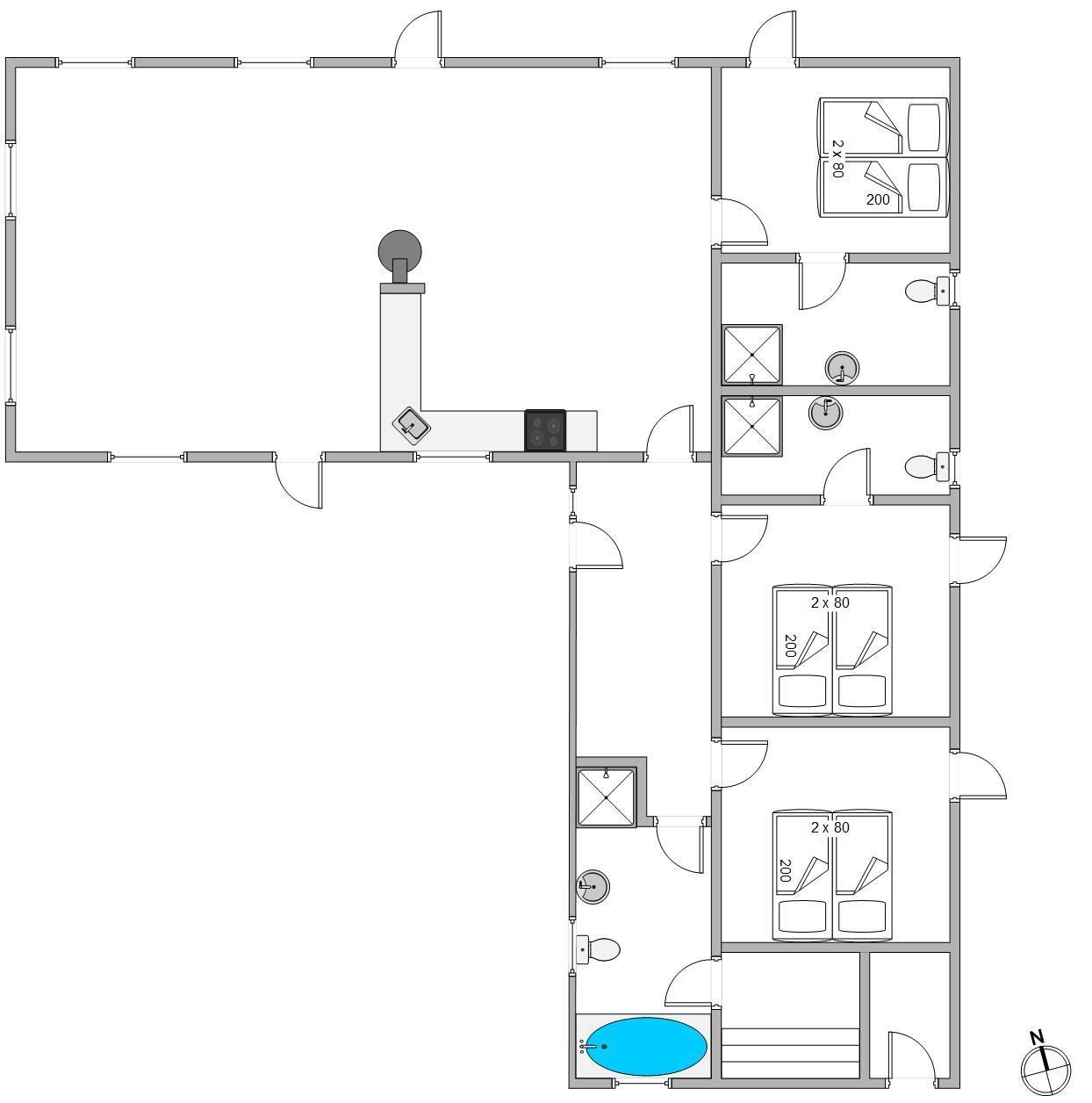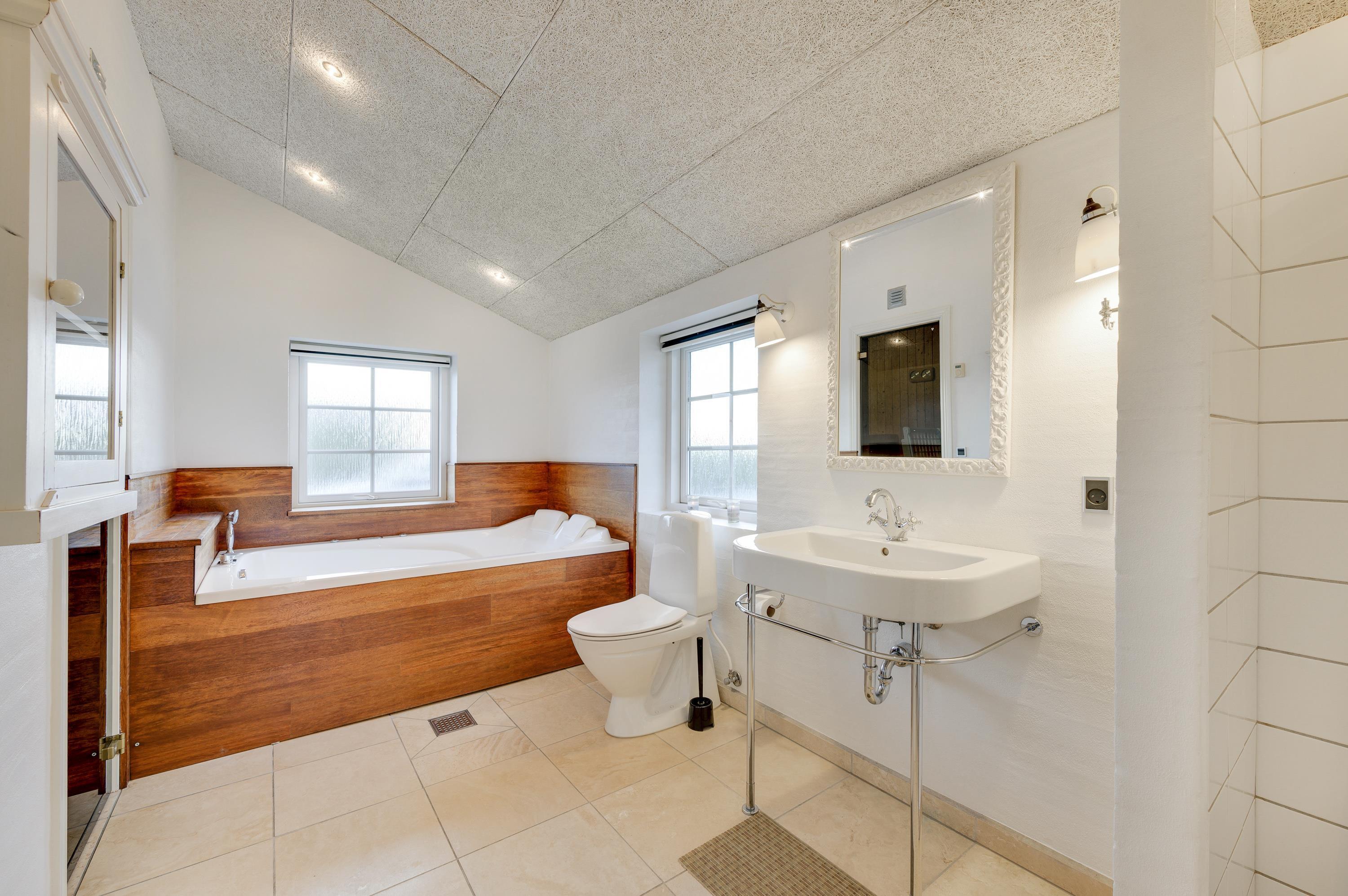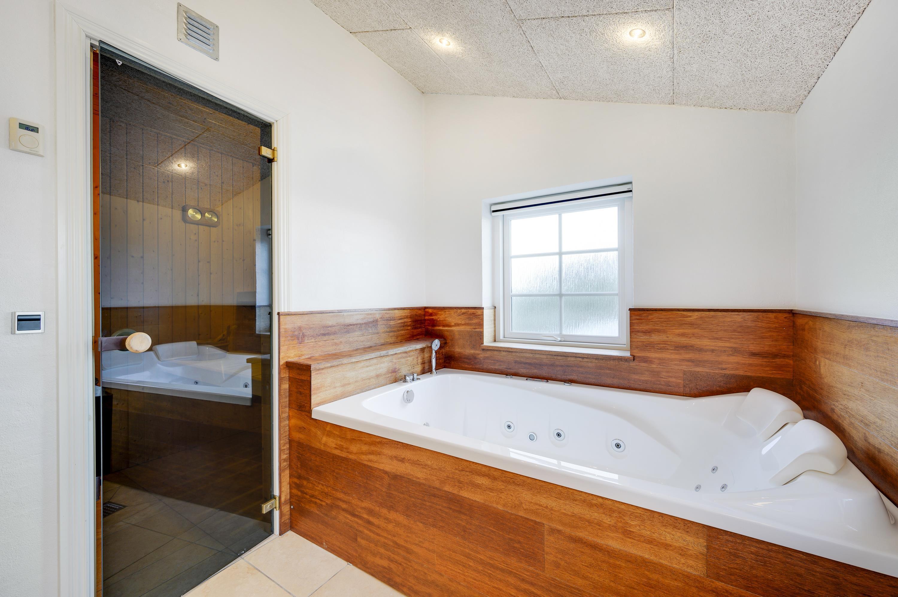 Specielt ved dette sommerhus er, at hvert soveværelse har sit eget badeværelse med brusebad og gulvvarme. Det største af badeværelserne er også udstyret med en sauna og et spa. Efter en lang vandretur kan i slappe af i saunaen og nyde et varmt bad i spaen. Om sommeren kan du få et hurtigt skyl under udendørsbruseren efter din tur i wellnessområdet. Udebruseren kan benyttes fra april til november. I dette moderne udstyrede feriehus kan du lade hverdagens stress ligge bag dig og slappe af.