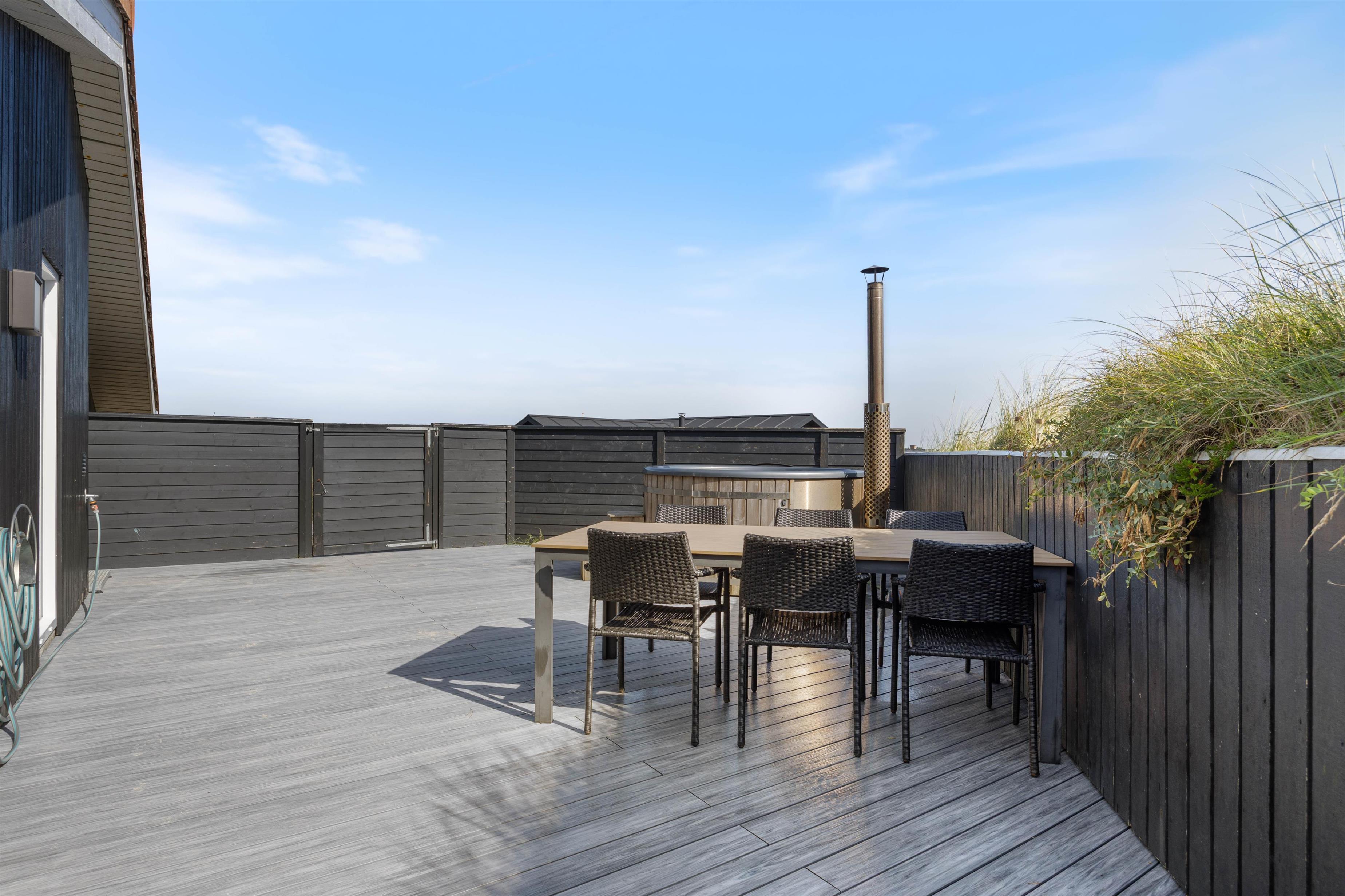 Et af feriehusets hightlights finder I desuden her på terrassen. Her står vildmarksbadet nemlig klar til at blive tændt op, og der findes intet bedre, end at nyde den friske havluft herfra.