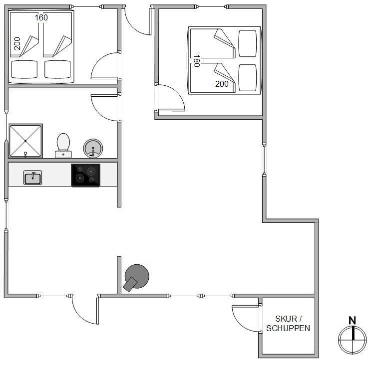 Et rigtigt sommerhus med praktisk indretning – her fornemmer man hygge og nærvær. Opholdsrummet er hjertet i huset. Stuen med sofa og alkove lægger op til afslapning med en god bog foran den knitrende ild i brændeovnen.