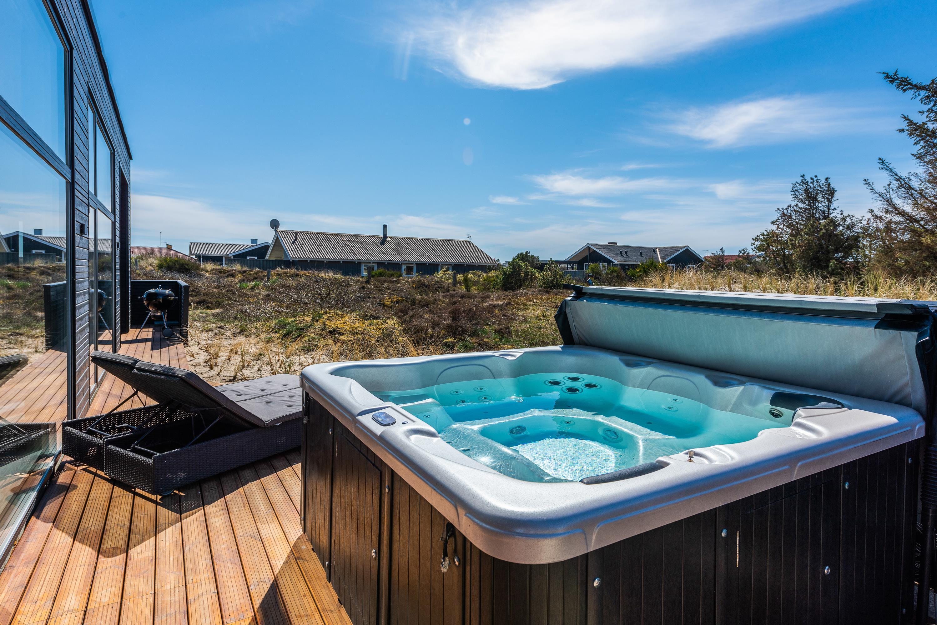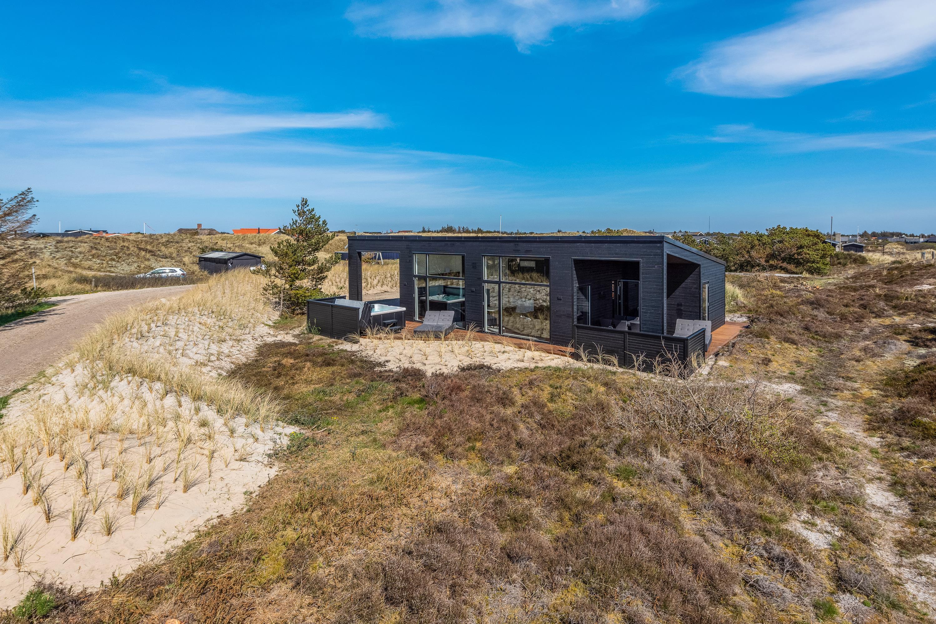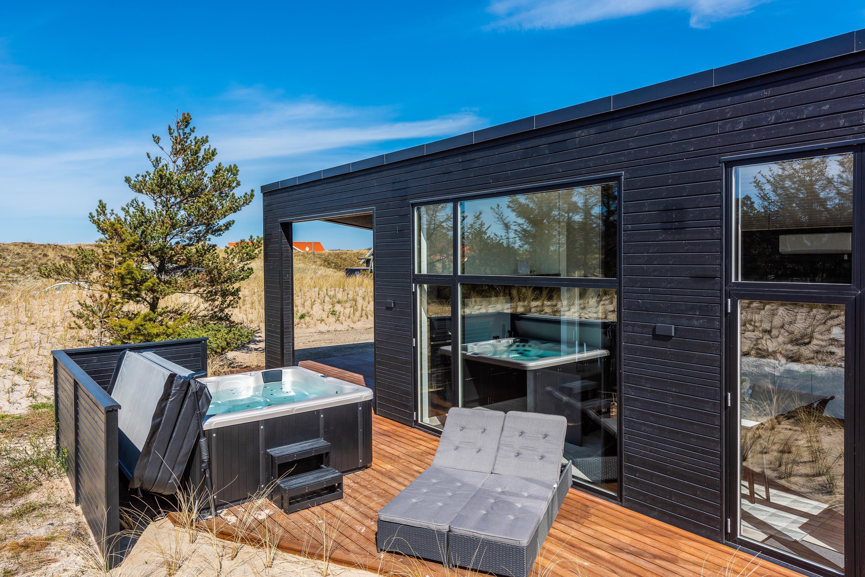 Det moderne indrettede hus rummer mange gode detaljer. I det store fællesrum med lækkert køkken og stue står brændeovnen og lover varme og masser af fælles hyggetid. En energibesparende varmepumpe garanterer godt indeklima – men skal I rigtigt slappe af og varmes igennem, så tænd op i husets sauna eller prøv en tur i spaen på terrassen. Det er hele året rundt en skøn oplevelse, men især i den kolde årstid, når aftenhimlen er særlig mørk og stjernerne rigtigt klare og tydelige, bliver turen i udespaen til feriens absolutte højdepunkt.