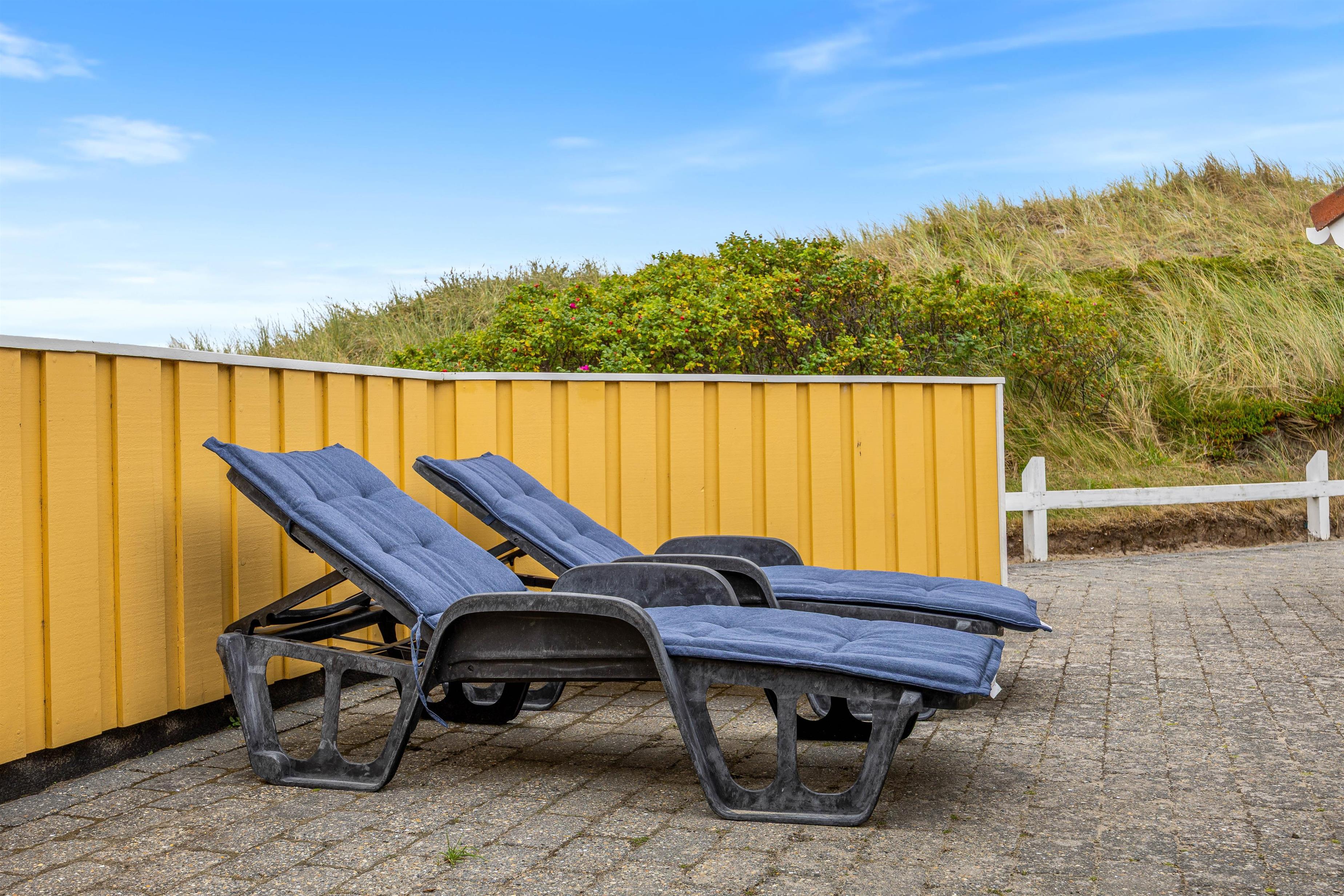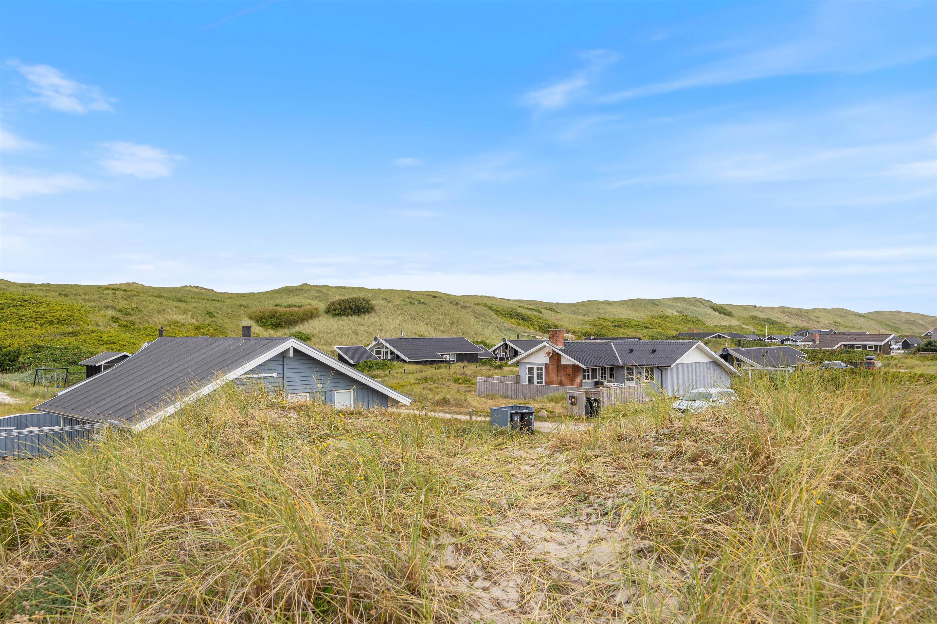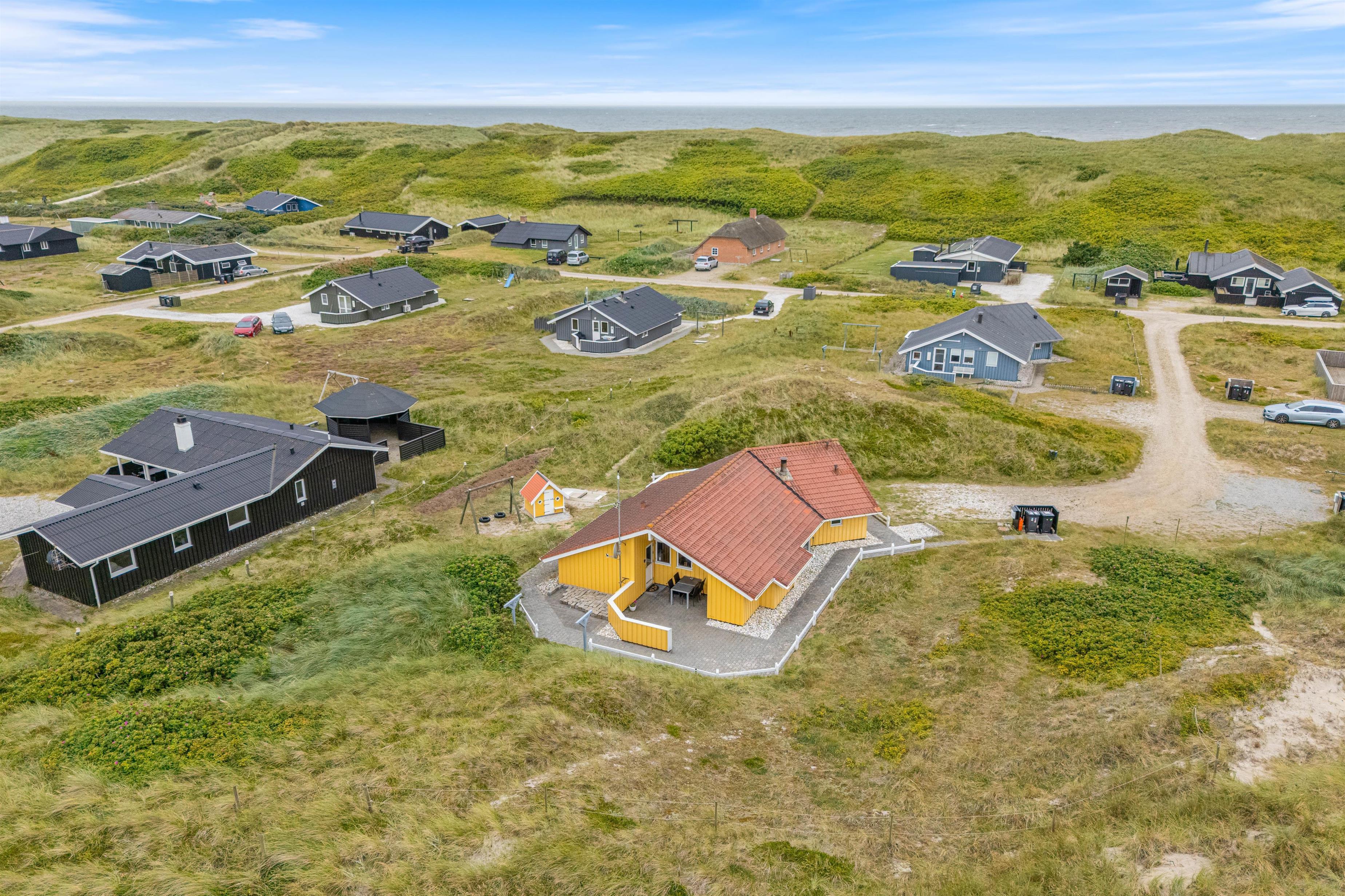 Sommerhuset ligger på en kombineret natur- og klitgrund, hvor I kan nyde den særlige ro, som kun findes tæt på havet. På den overdækkede terrasse kan I samles til fælles måltider i den friske luft, grille på lune sommeraftener eller blot sidde med en bog og lytte til havets brusen. Til børnene er der gynge og sandkasse, så de kan lege frit, mens I nyder omgivelserne og udsigten til klitterne.