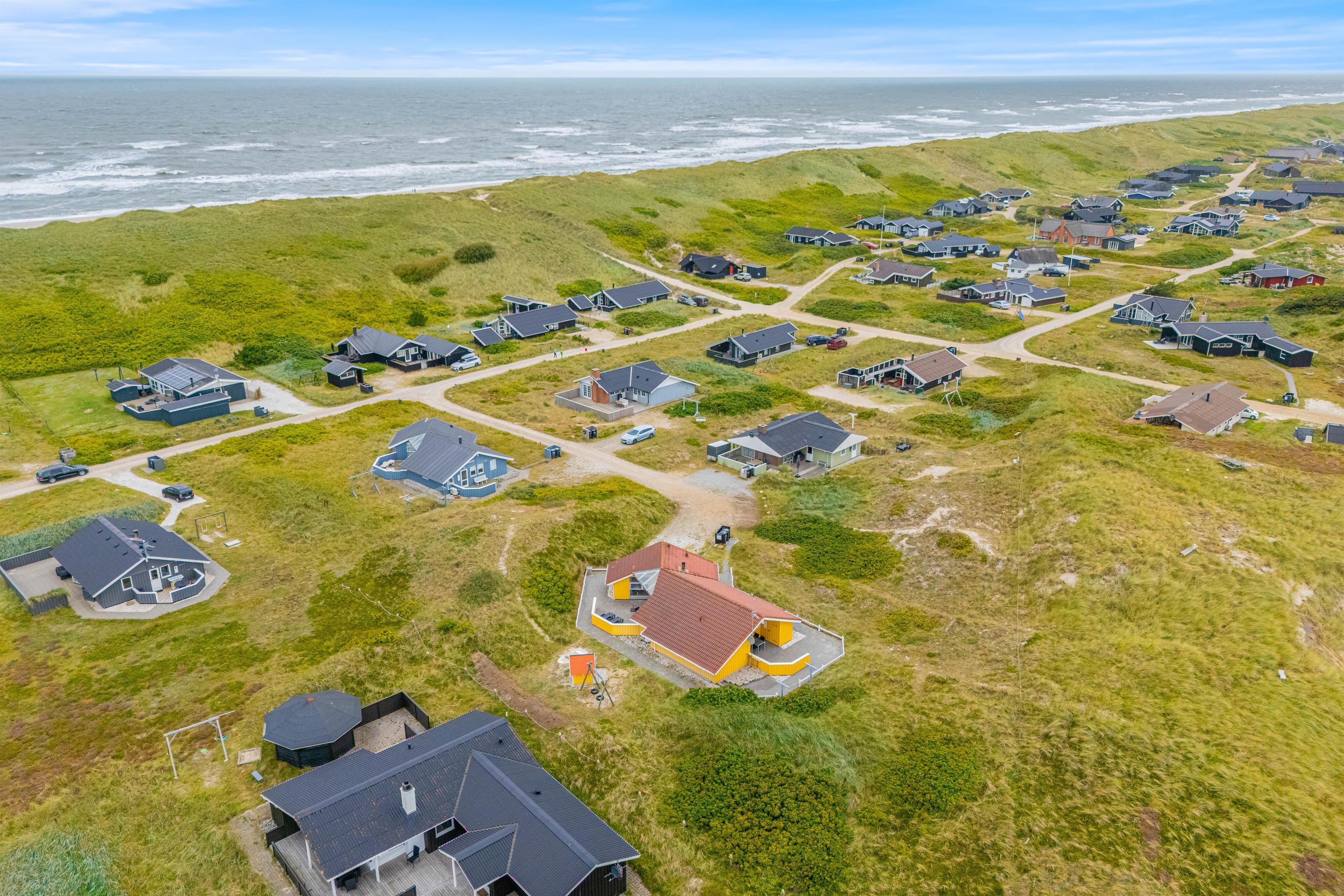 Bjerregård er et af de mest populære ferieområder langs den jyske vestkyst, kendt for sin brede sandstrand og den smukke, kuperede klitnatur. Her er rammerne til både afslapning og aktivitet. I kan starte dagen med en frisk løbetur langs vandet, nyde roen i klitterne eller prøve kræfter med vandsport i det nærliggende Hvide Sande. På cykel eller i bil når I hurtigt både Hvide Sande og Nørre Nebel, hvor caféer, restauranter og indkøbsmuligheder byder på lidt ekstra feriestemning. Der er også en lokal købmand blot 1 kilometer fra sommerhuset, så I altid har nem adgang til frisk brød og de daglige fornødenheder.