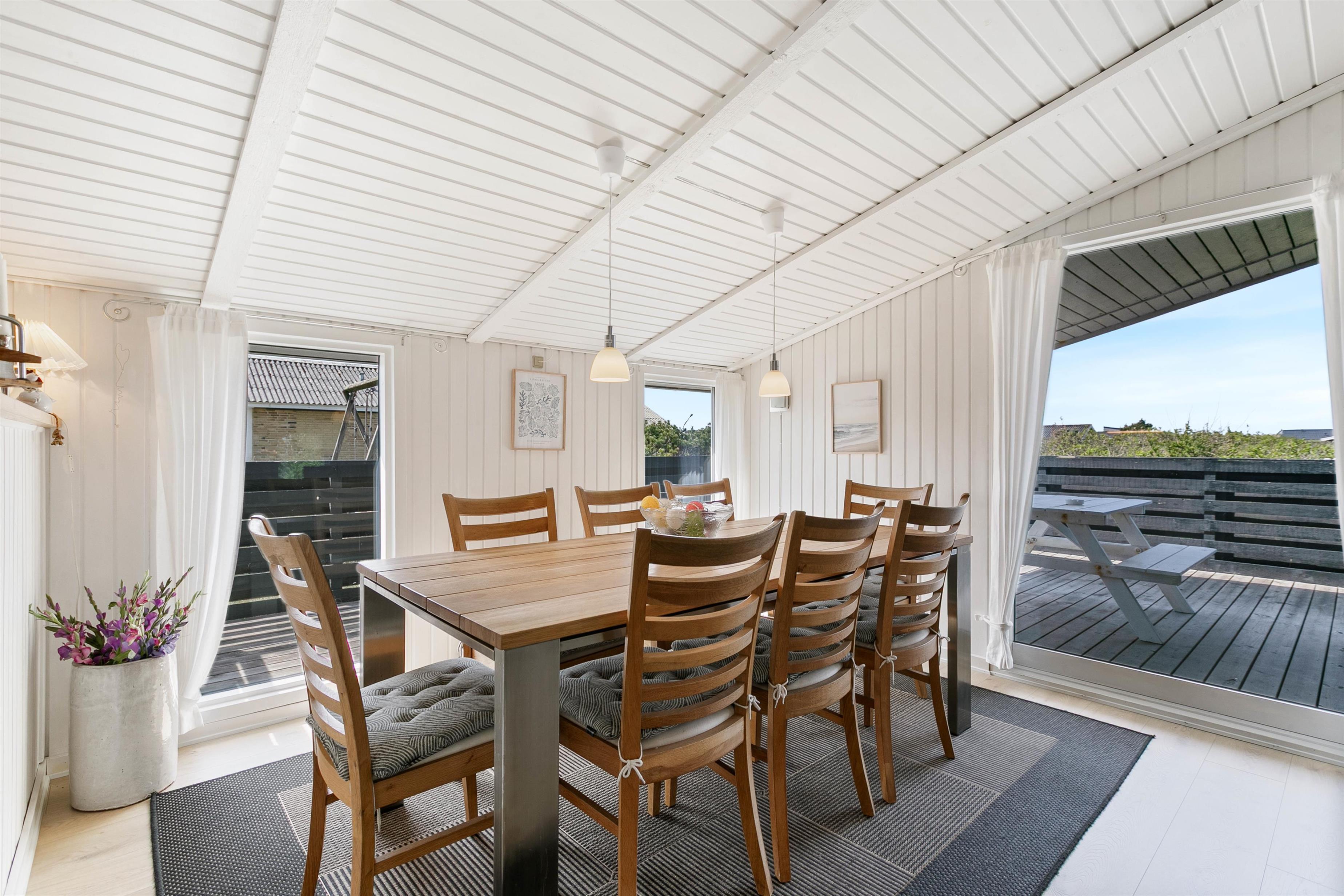 Leder I efter et sommerhus til den næste familieferie på vestkysten? På Julianevej 5 er der plads til 8 personer, og den praktiske indretning med opvaskemaskine, vaskemaskine og tørretumbler gør sommerhuset optimalt til den store familie. Der er mulighed for ekstra afslapning i sommerhusets sauna, og udenfor får I 2 lukkede terrasser, et gyngestativ og en sandkasse.