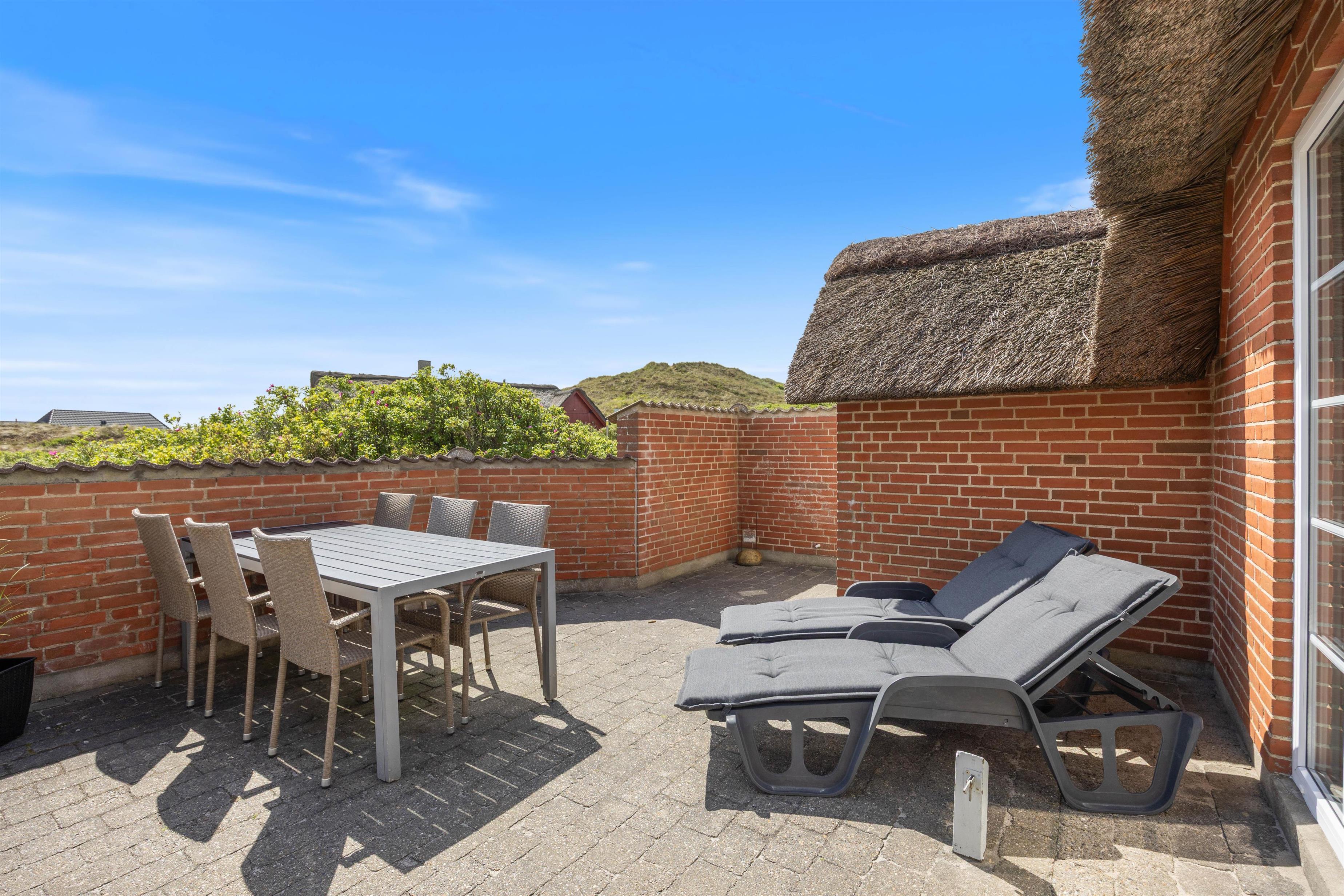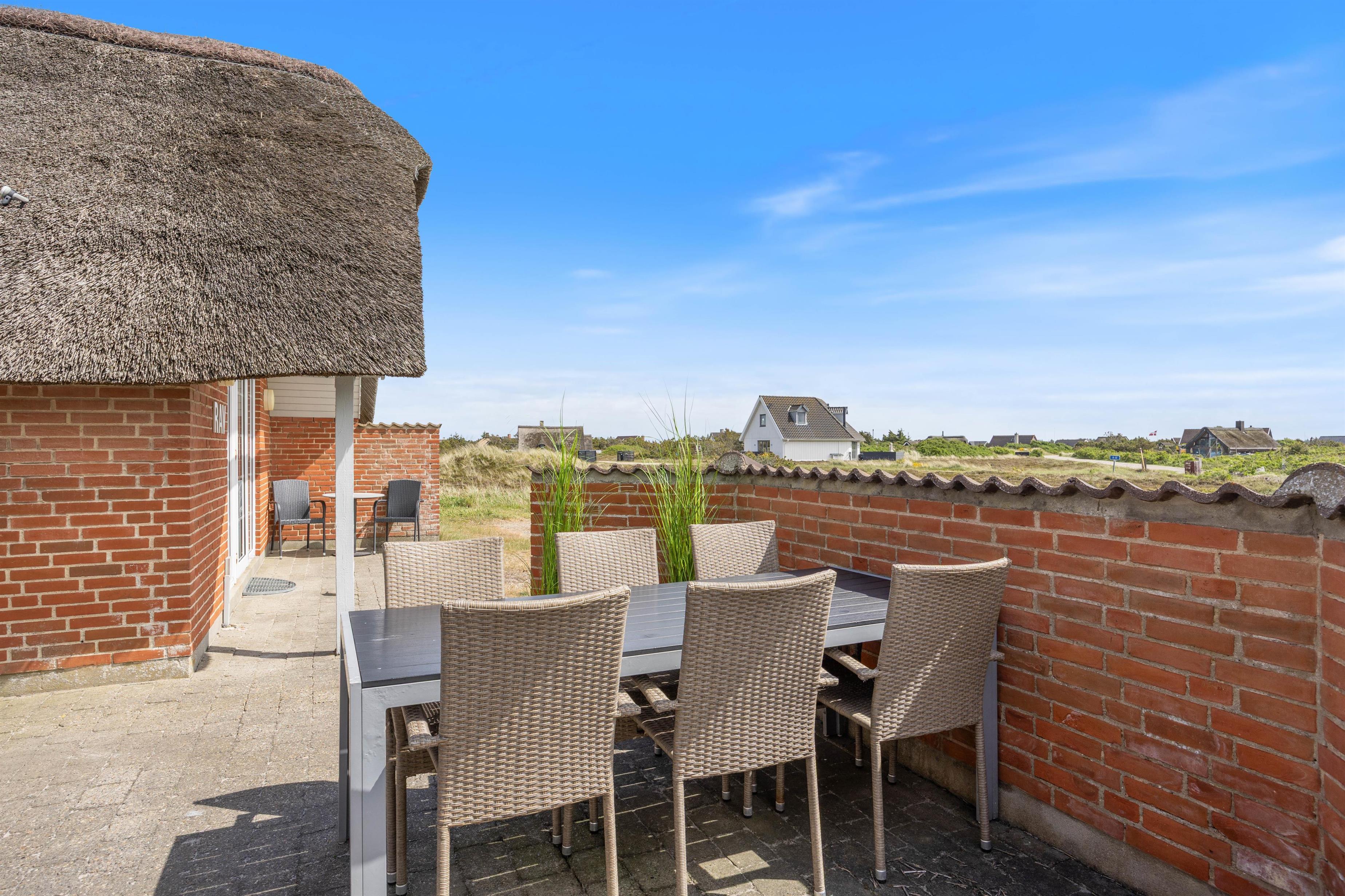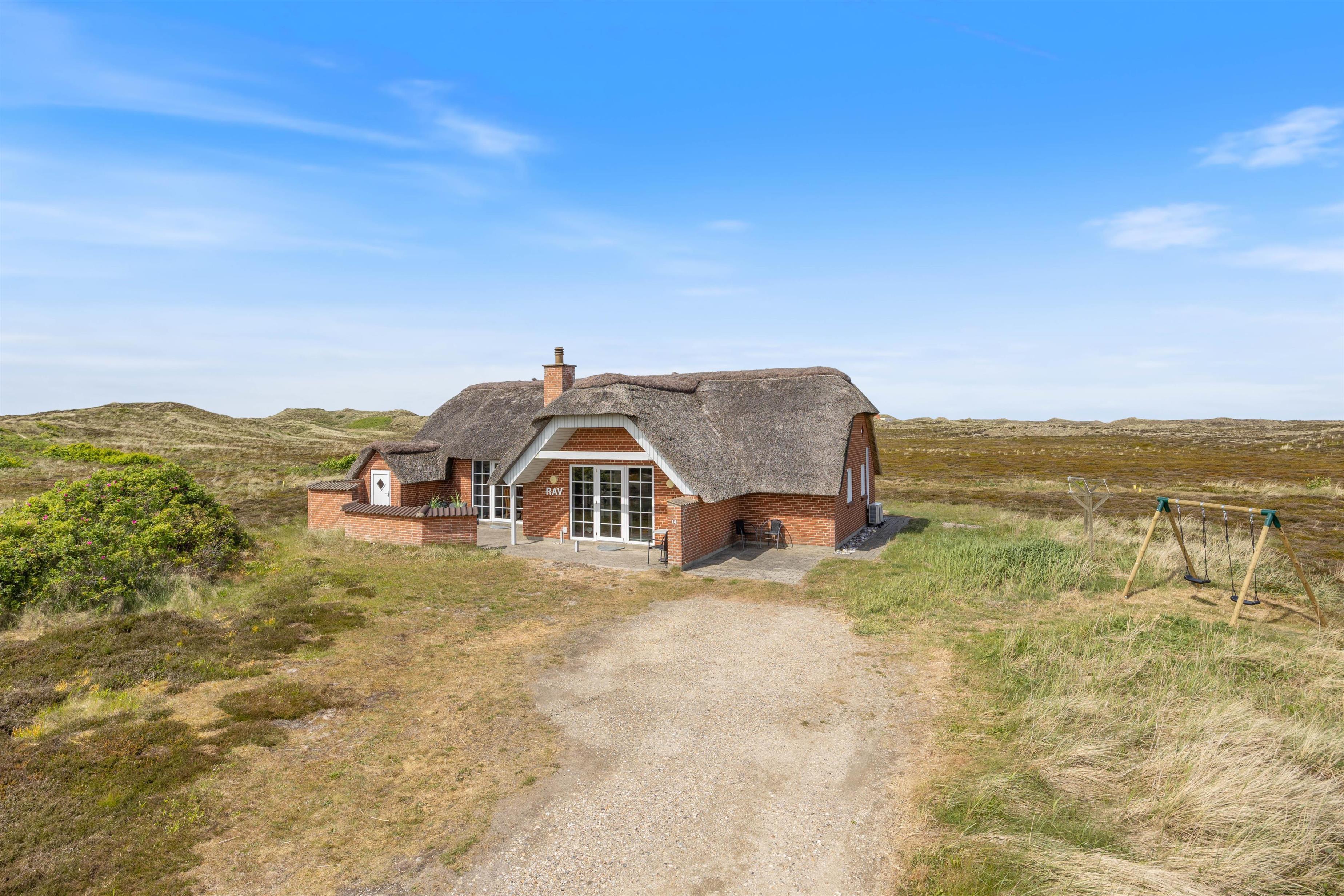 På Riskrogen 14 ligger et flot og velholdt sommerhus med stråtag og gratis trådløst internet. Sommerhuset har en skøn beliggenhed på en stor og dejlig naturgrund lige op af et fredet hedeområde og kun 400 meter fra Vesterhavet. Feriehuset er løbende vedligeholdt og fremstår meget indbydende og hyggeligt. Her er en delvis overdækket og afskærmet terrasse mod syd, hvor hele familien kan samles til hyggelige feriestunder.