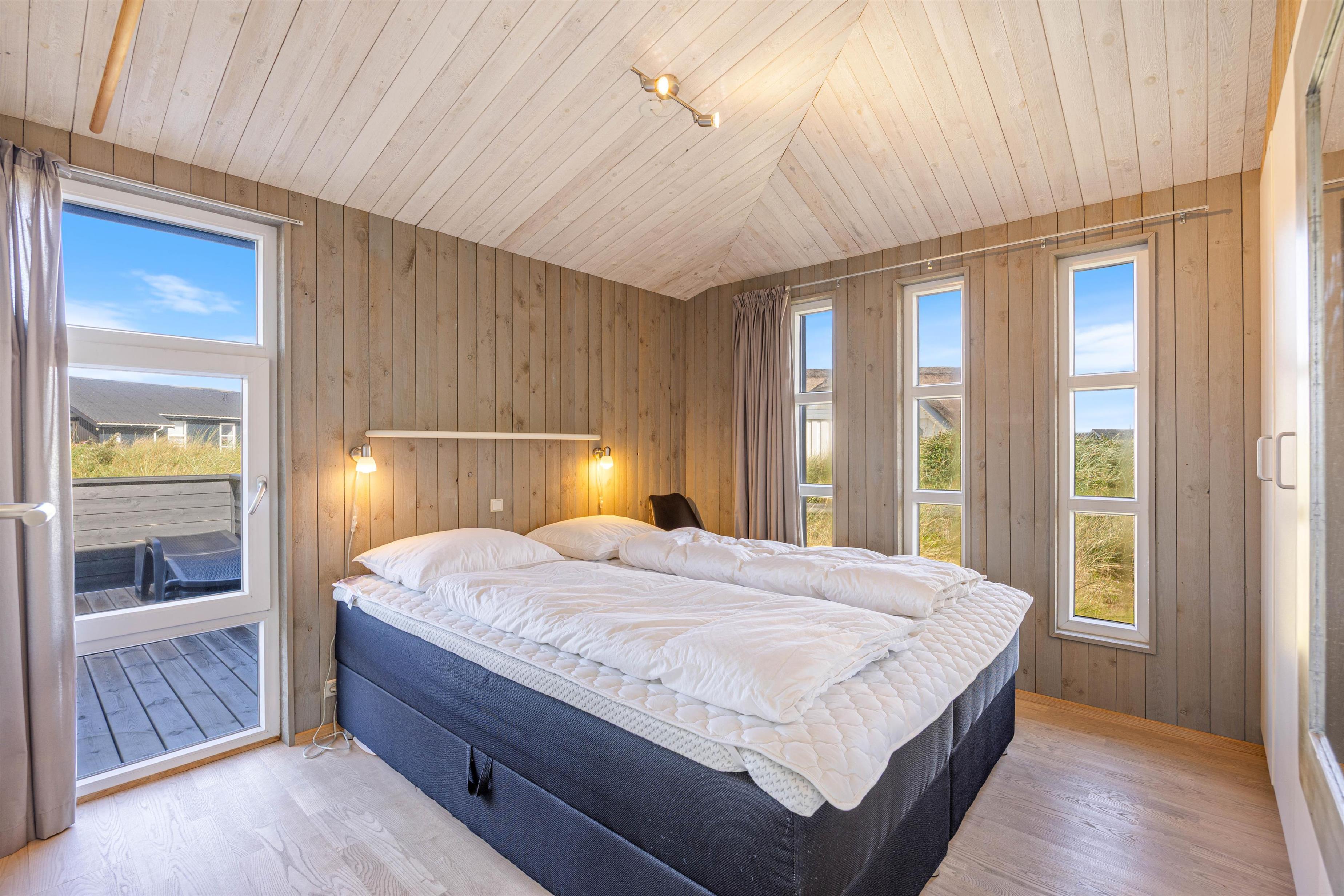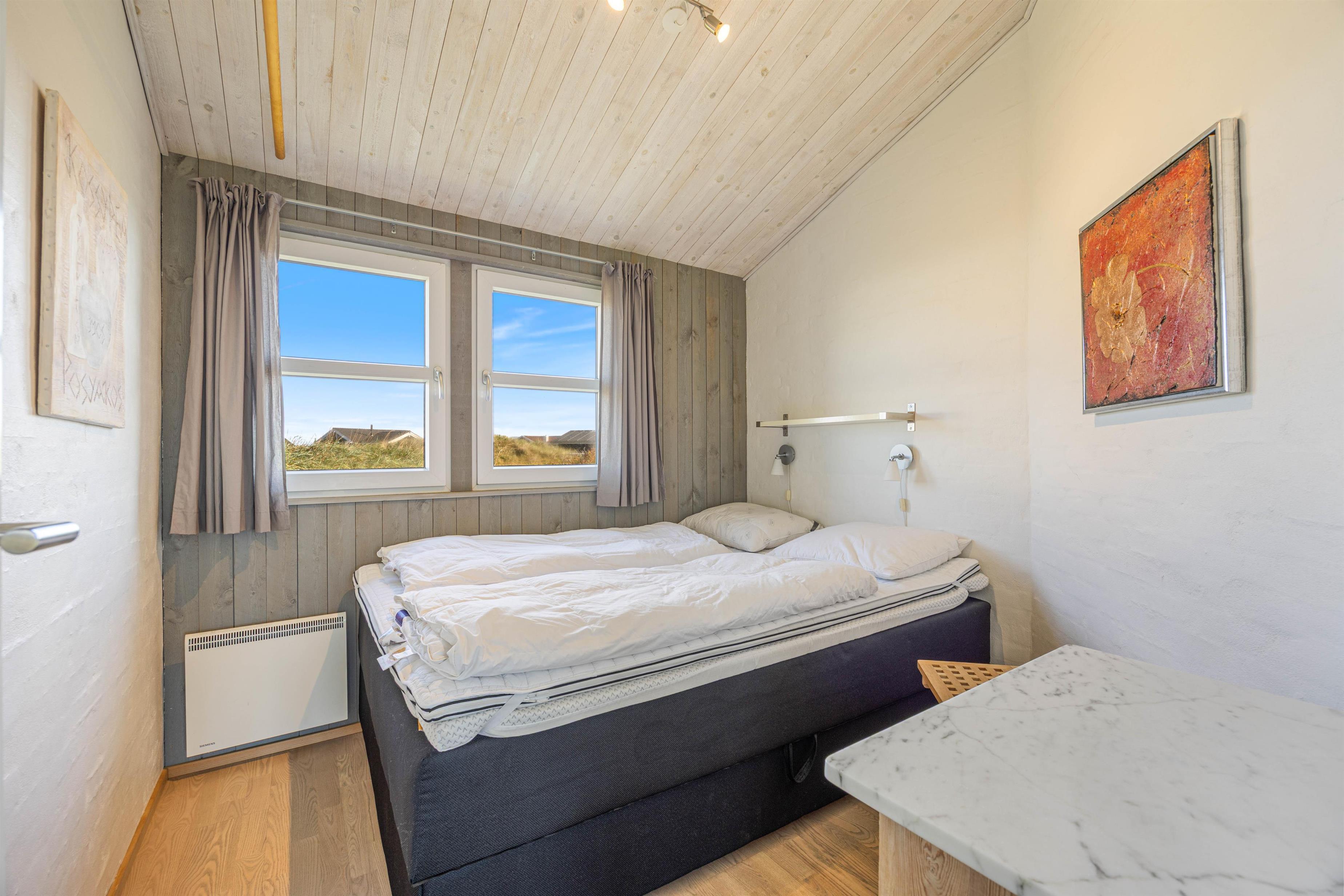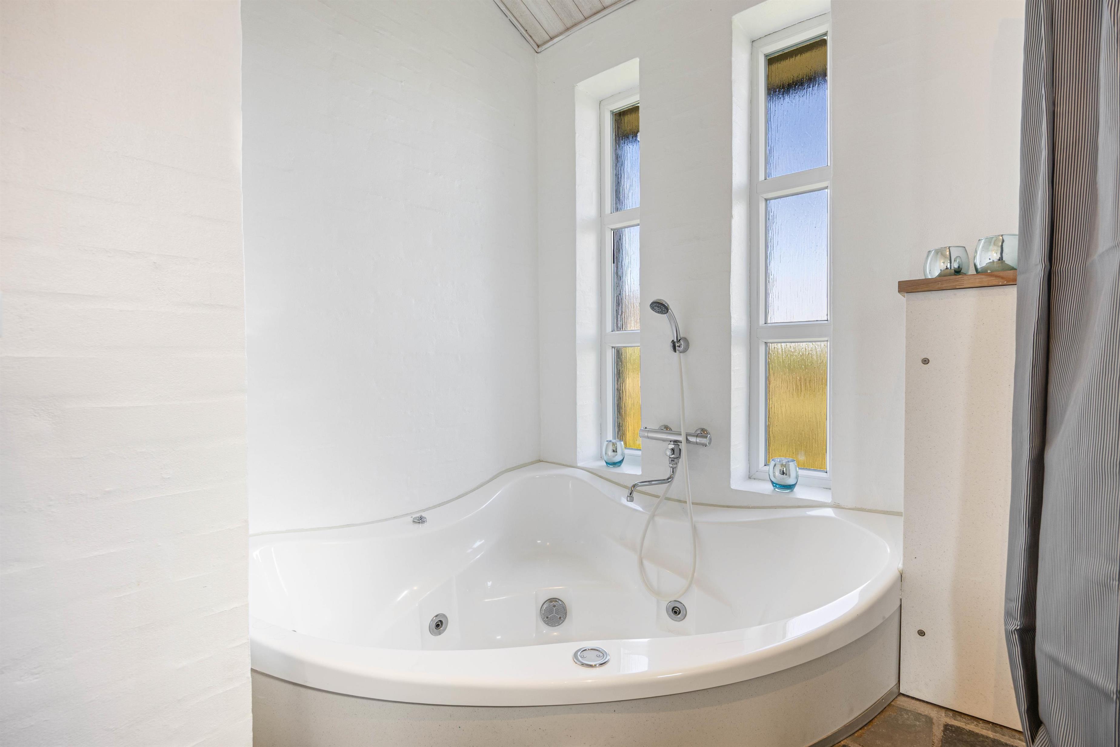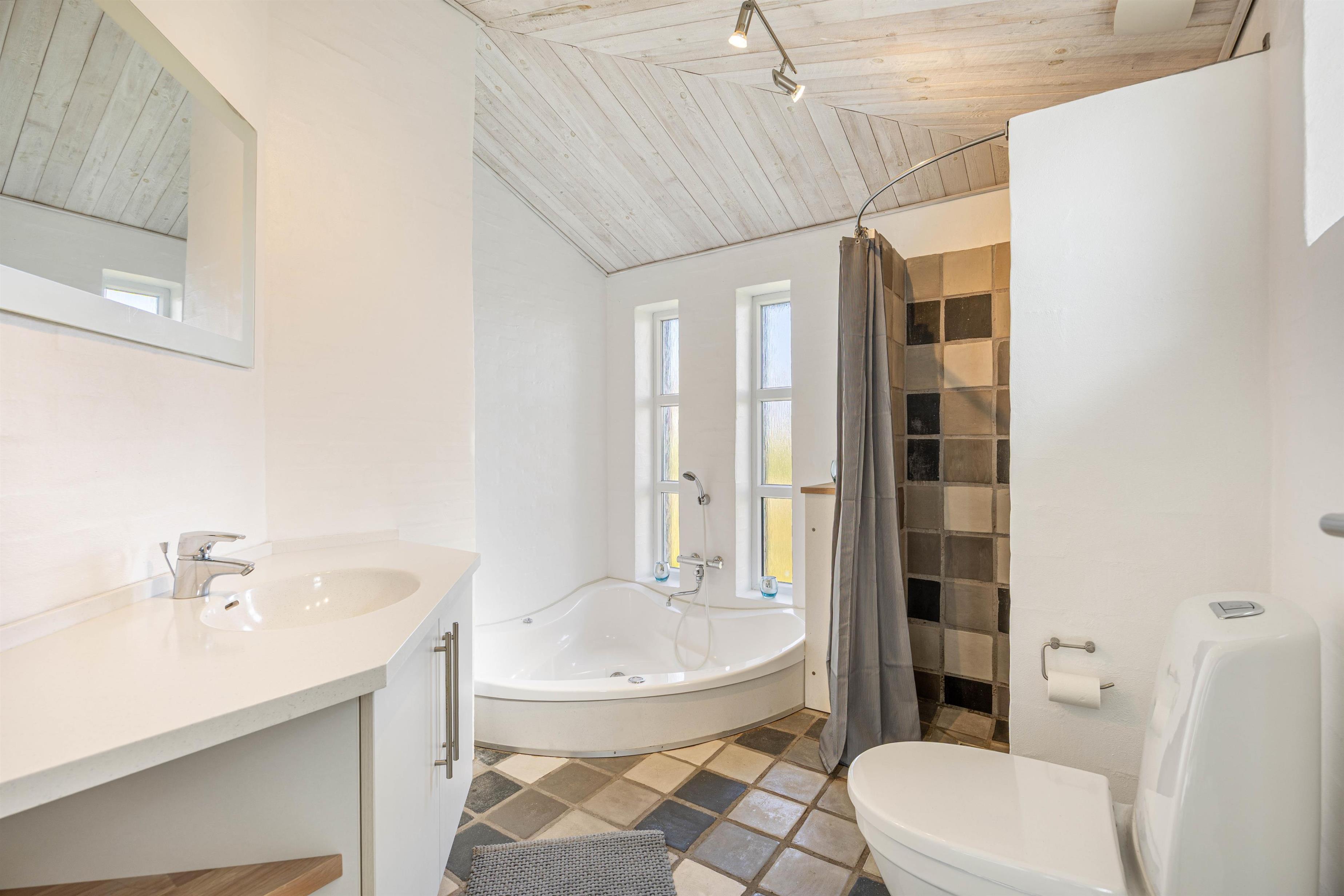 Ud fra opholdsrummet finder I de 3 fine soveværelser med hver en dobbeltseng. Det praktisk indrettede badeværelse er med en nedsænket spa, som indbyder til afslapning og hygge efter en lang dag ved stranden og i klitterne.