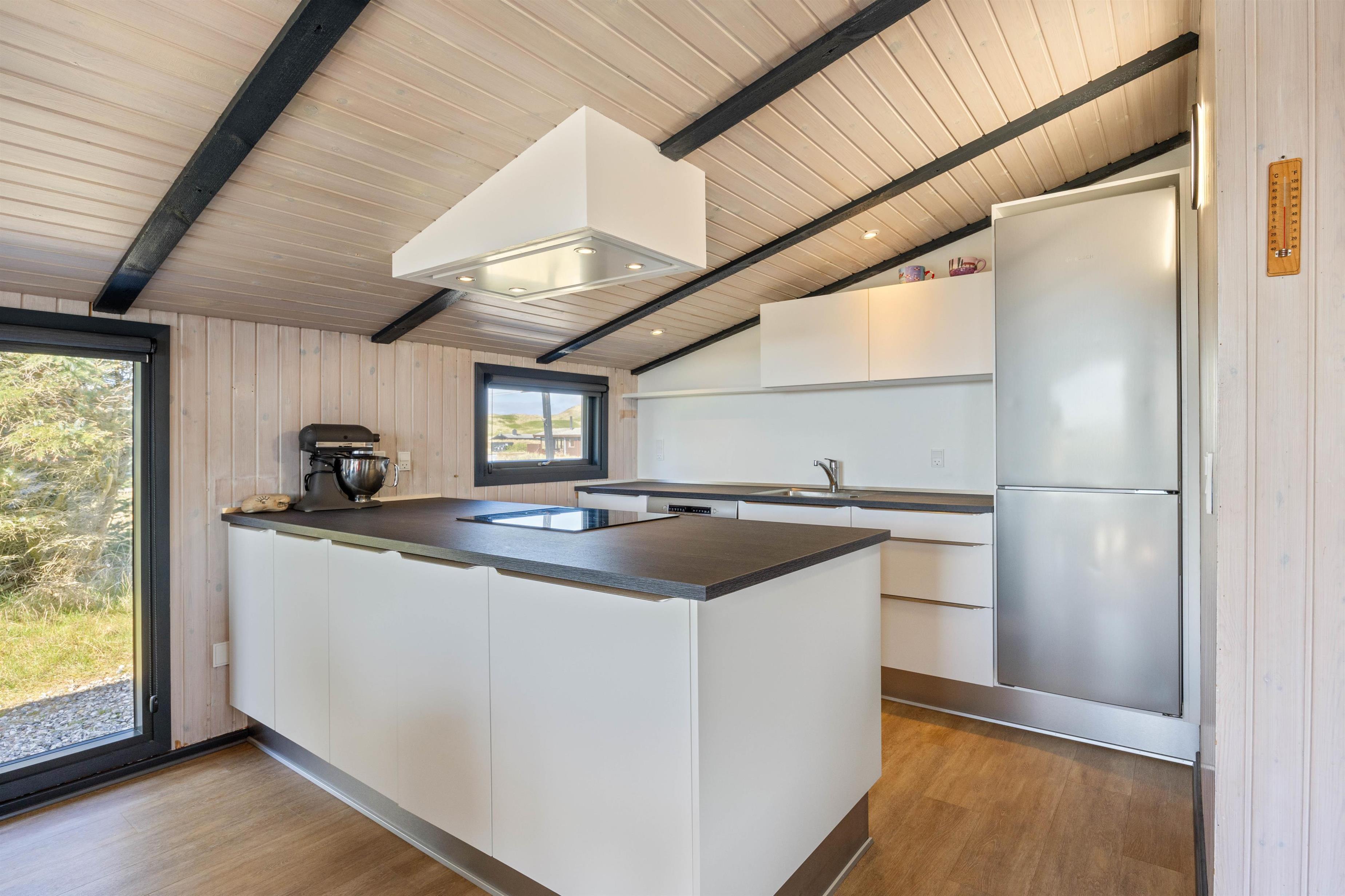 Sommerhusets moderne køkken er i åben forbindelse til opholdsstuen, så I kan være samlet mest muligt i løbet af ferien. Sommerhuset har desuden internetforbindelse, som kan benyttes kvit og frit.