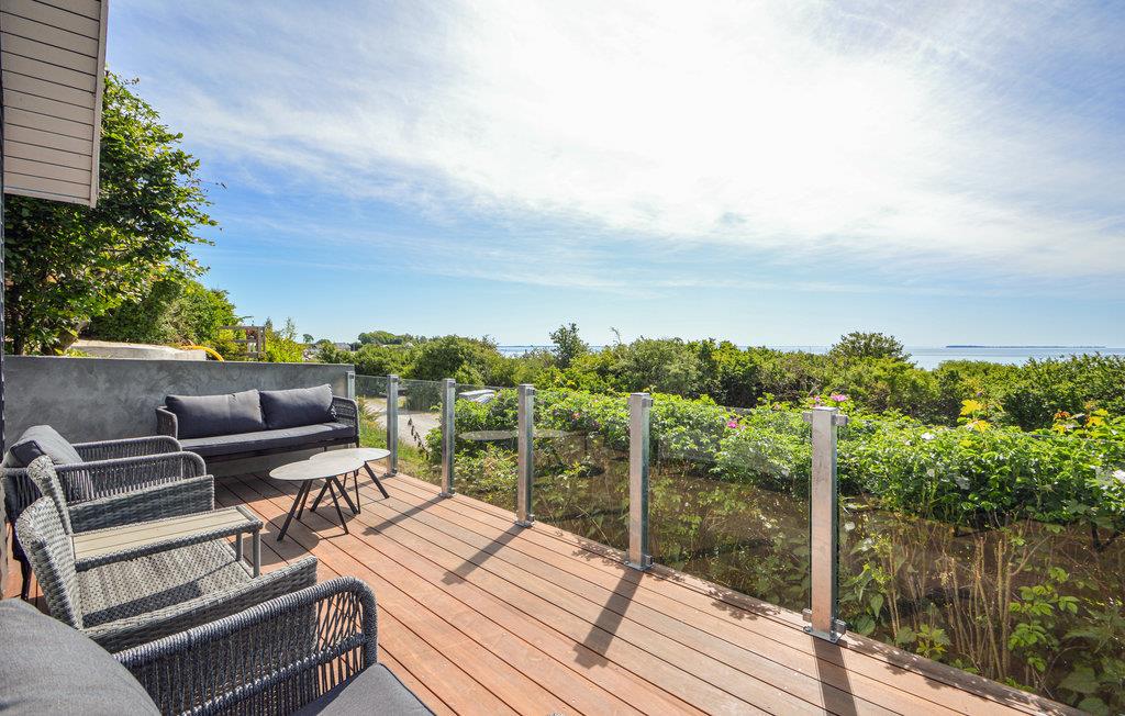 Nyd panoramaudsigt over Lillebælt og børnevenlig strand i hyggeligt sommerhus ved Binderup Strand.