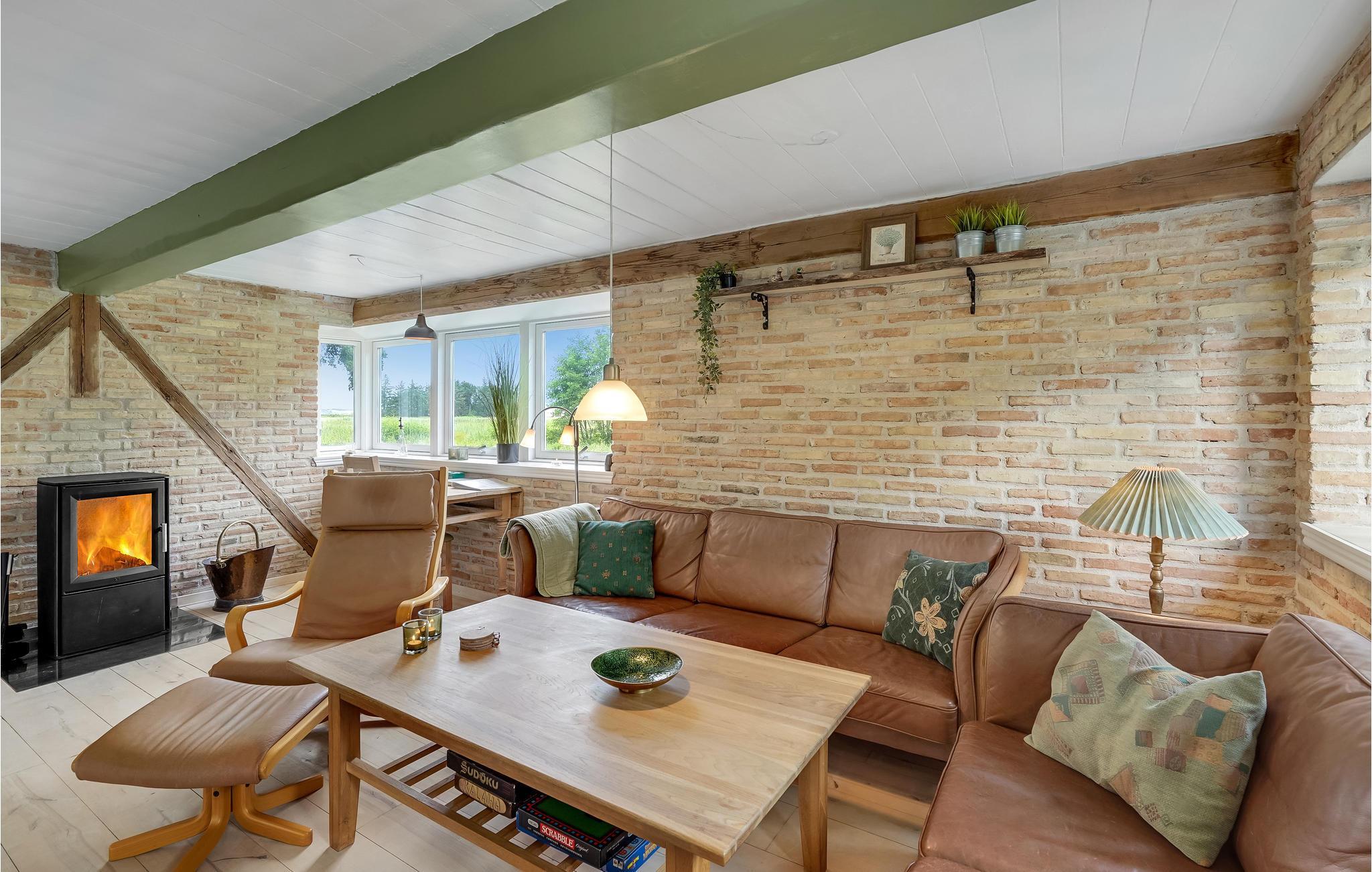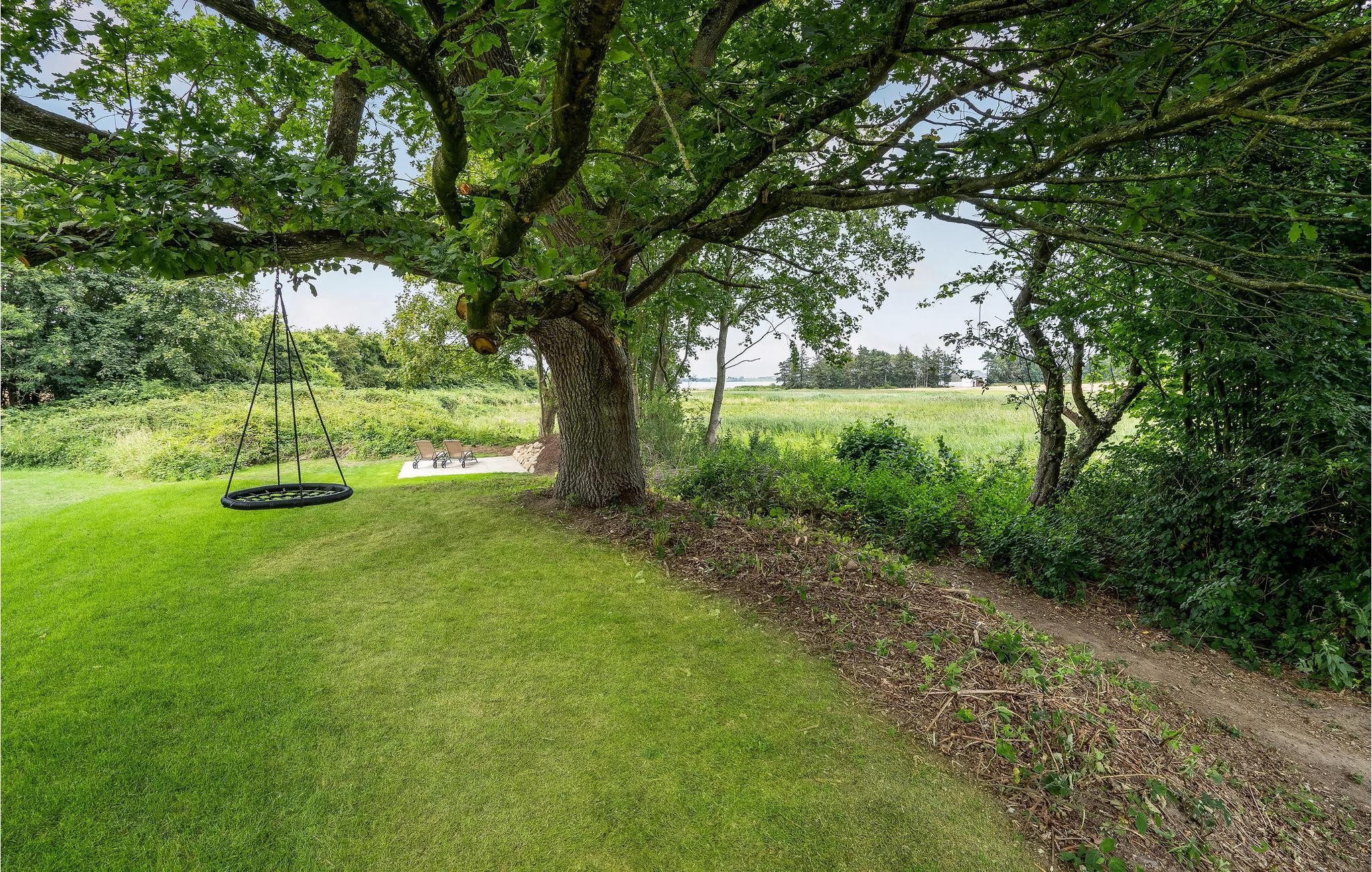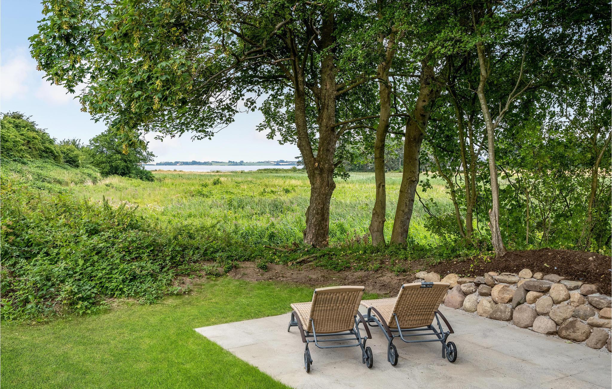 Huset har en rolig placering, og fra grunden er der en fantastisk udsigt til fjordens brede blå linje bag et stykke eng, og længere ude ser I Als. Selve huset byder på gode overnatningsforhold med tre soveværelser, hvoraf to har dobbeltsenge, og det tredje har to enkeltsenge, hvilket giver plads til seks personer. Et af soveværelserne er et gennemgangsrum. I kan se frem til mange hyggelige middage og spilaftener i køkken-alrummet, og efter en tur på stranden, er det skønt at læne sig tilbage i stuen og nyde brændeovnens varm og samme smukke udsigt til fjorden. Loftet over trappen går højt til kip.