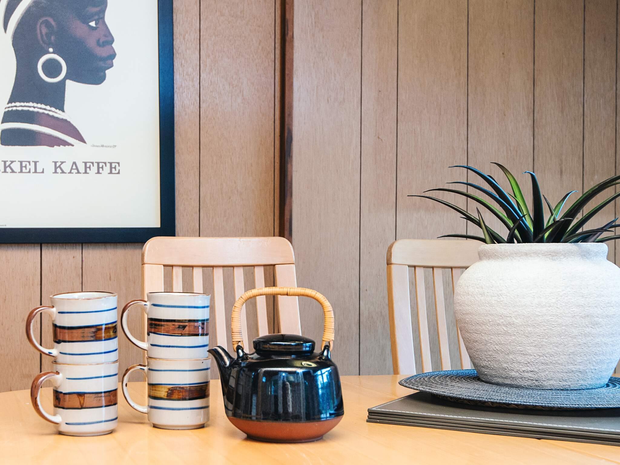 Køkkenafd.: El-komfur, køleskab m/frostboks, kaffemaskine, opvaskemask.