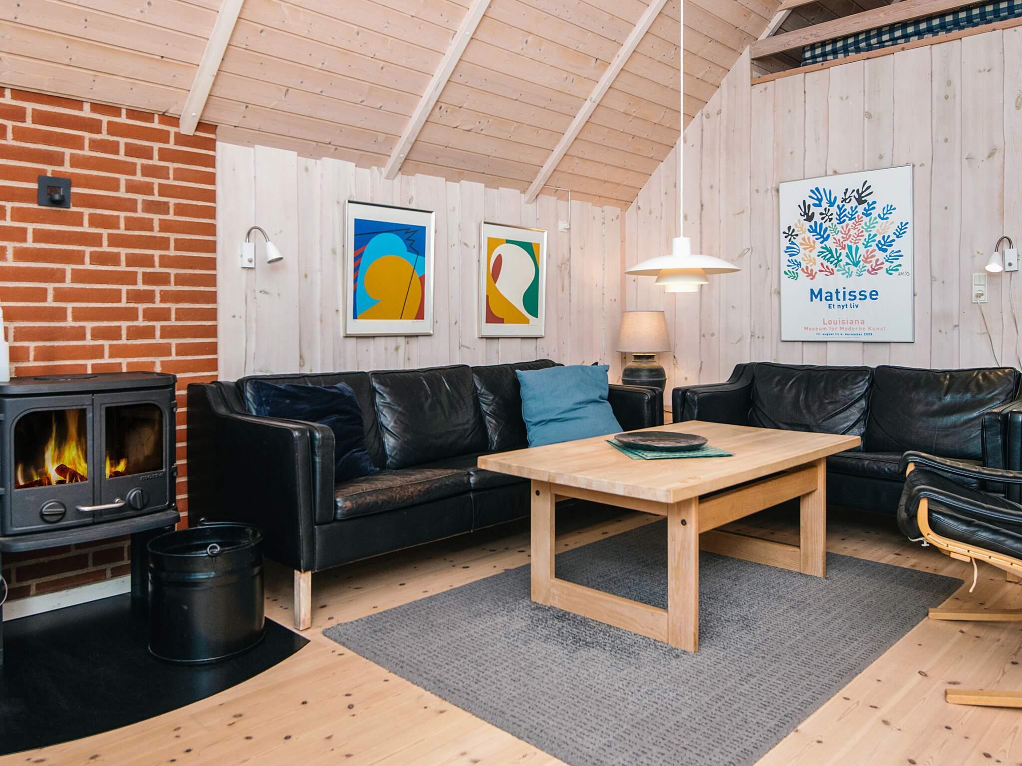 1 Opholdsstue: Brændeovn, stereoanlæg med cd, tv, parabol, høj stol