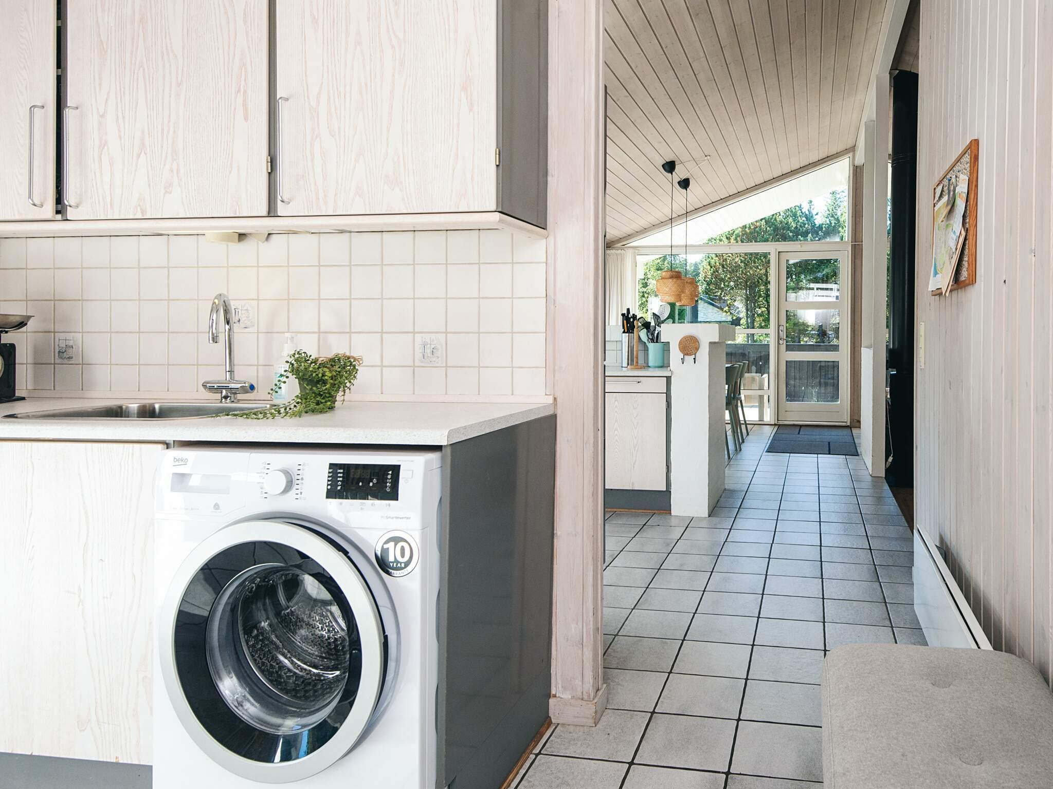 Huset har to badeværelser, hvoraf det ene har spabad og adgang til husets sauna. Der er vaskemaskine og tørretumbler.