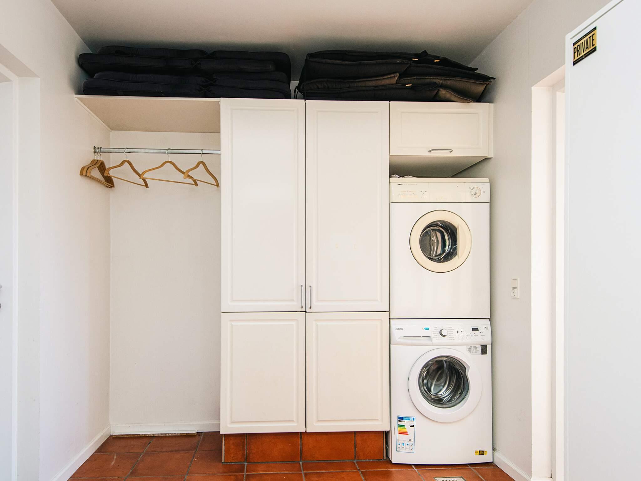 Køkkenafd.: El-komfur, køleskab m/frostboks, mikroovn, emhætte, kaffemaskine, opvaskemask., vaskemask., tørretumbler