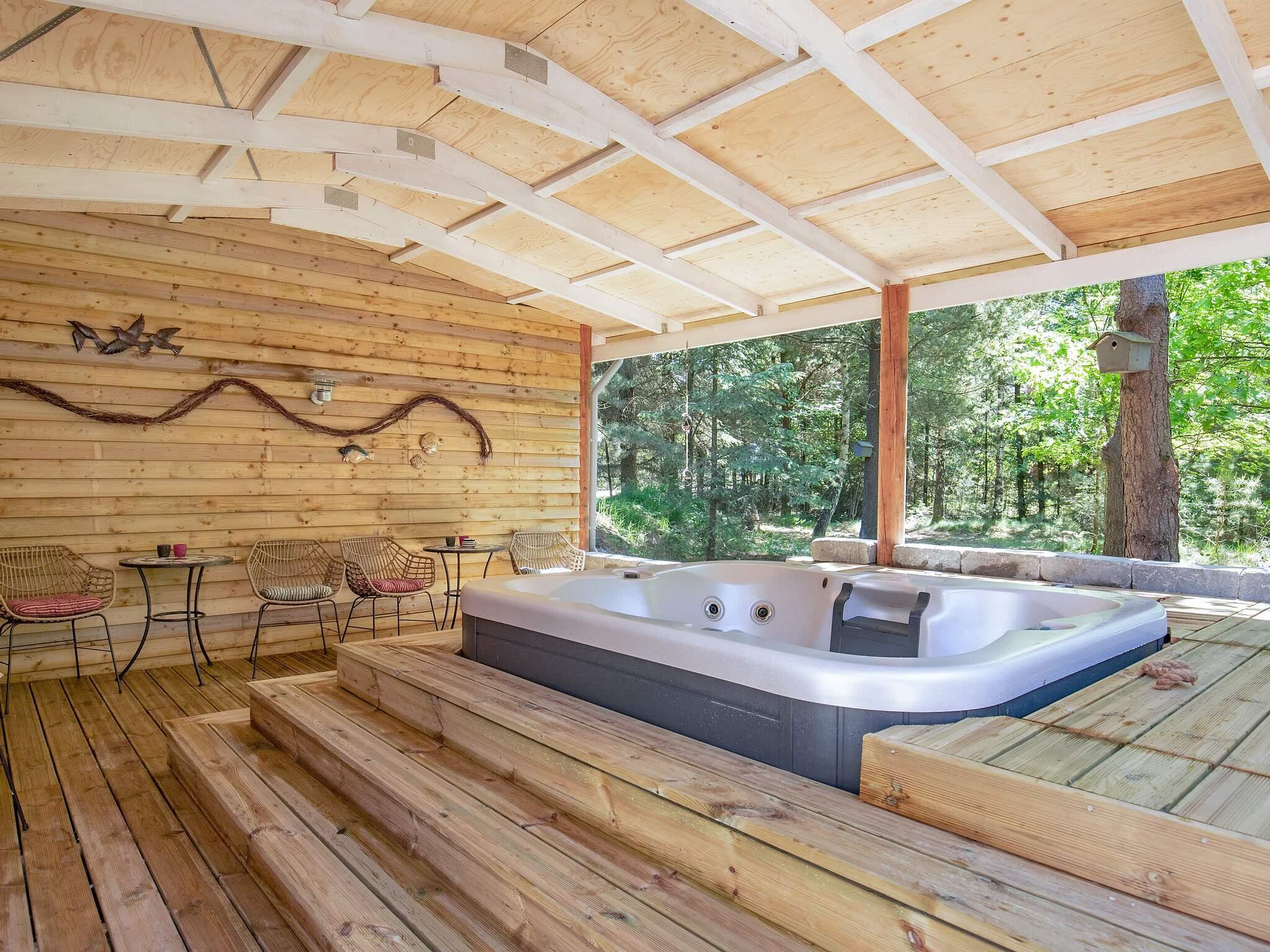 Midt i den skønneste natur ligger dette sommerhus med spabad, som er renoveret i 2017. Sommerhuset har et stort og åbnet køkken med spiseafdeling med et stort ovenlysvindue. Der er stor stue og et badeværelse med spabad. Omkring sommerhuset er der to store terrasser og åben grund med træer. Udlejes ikke til ungdomsgrupper.