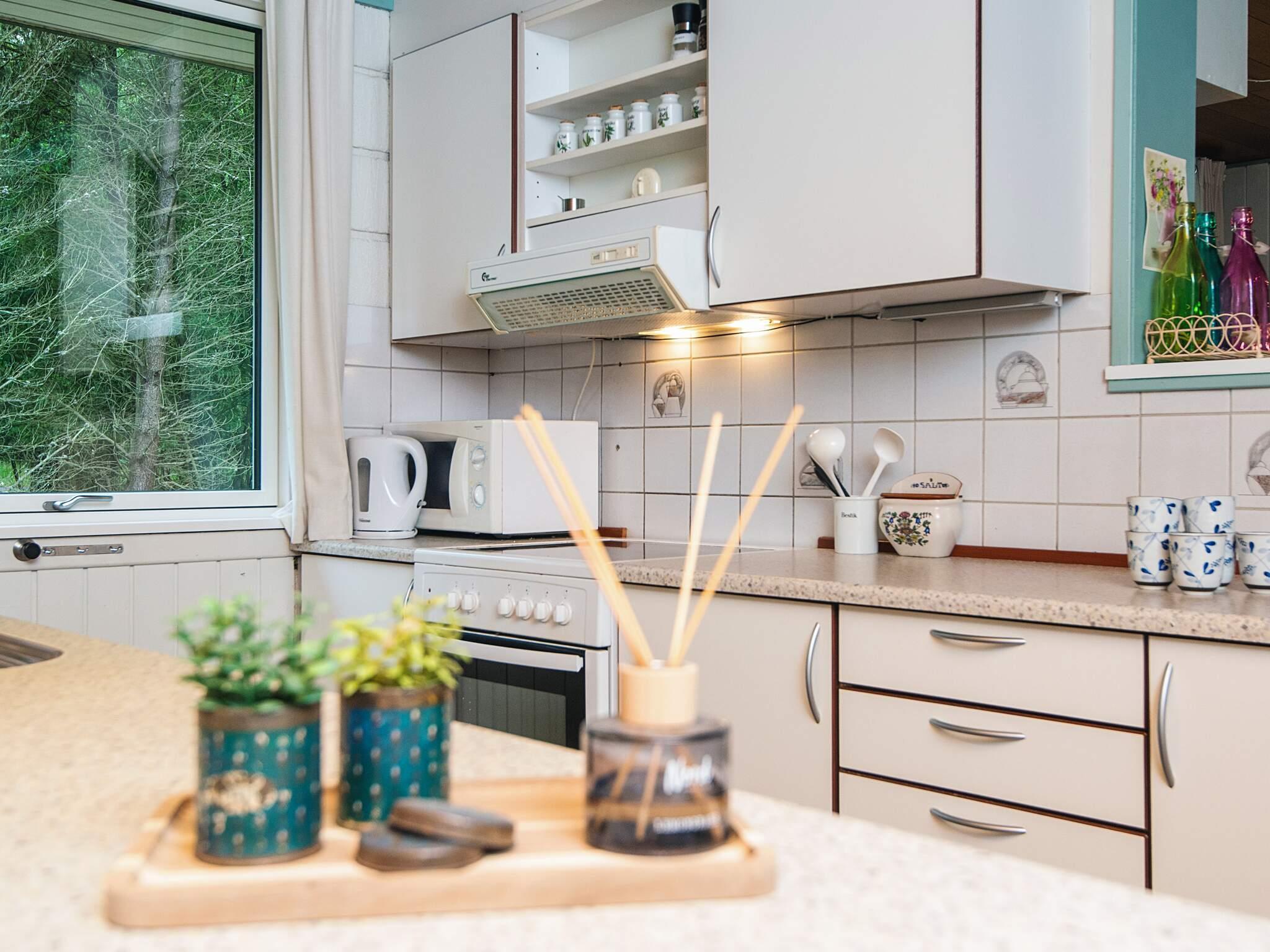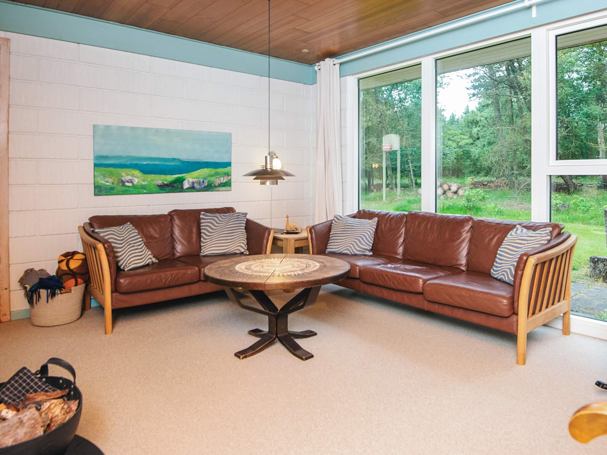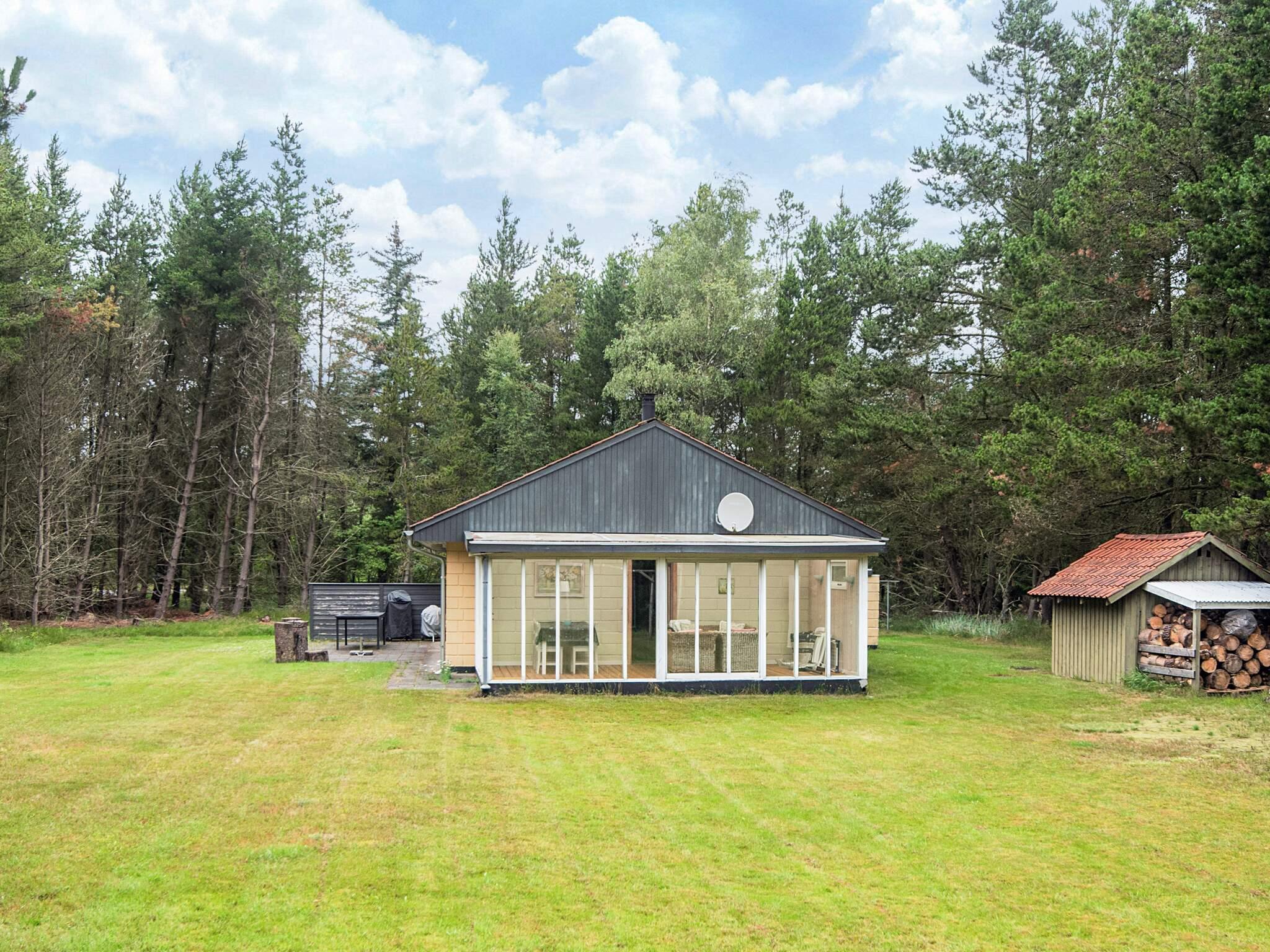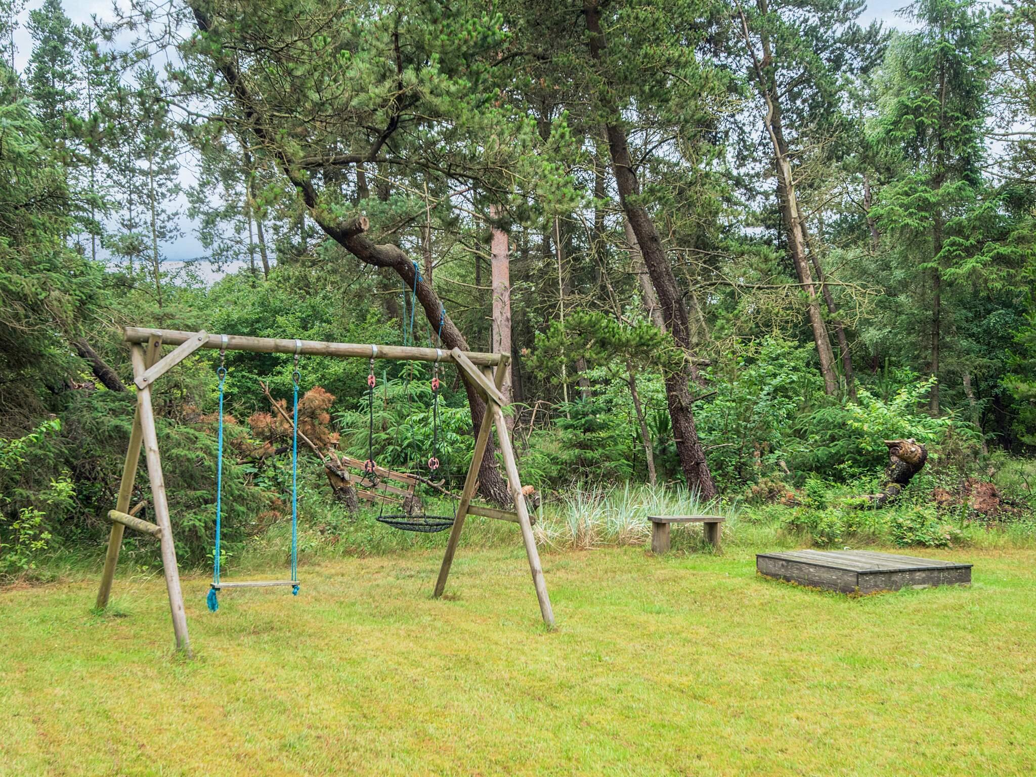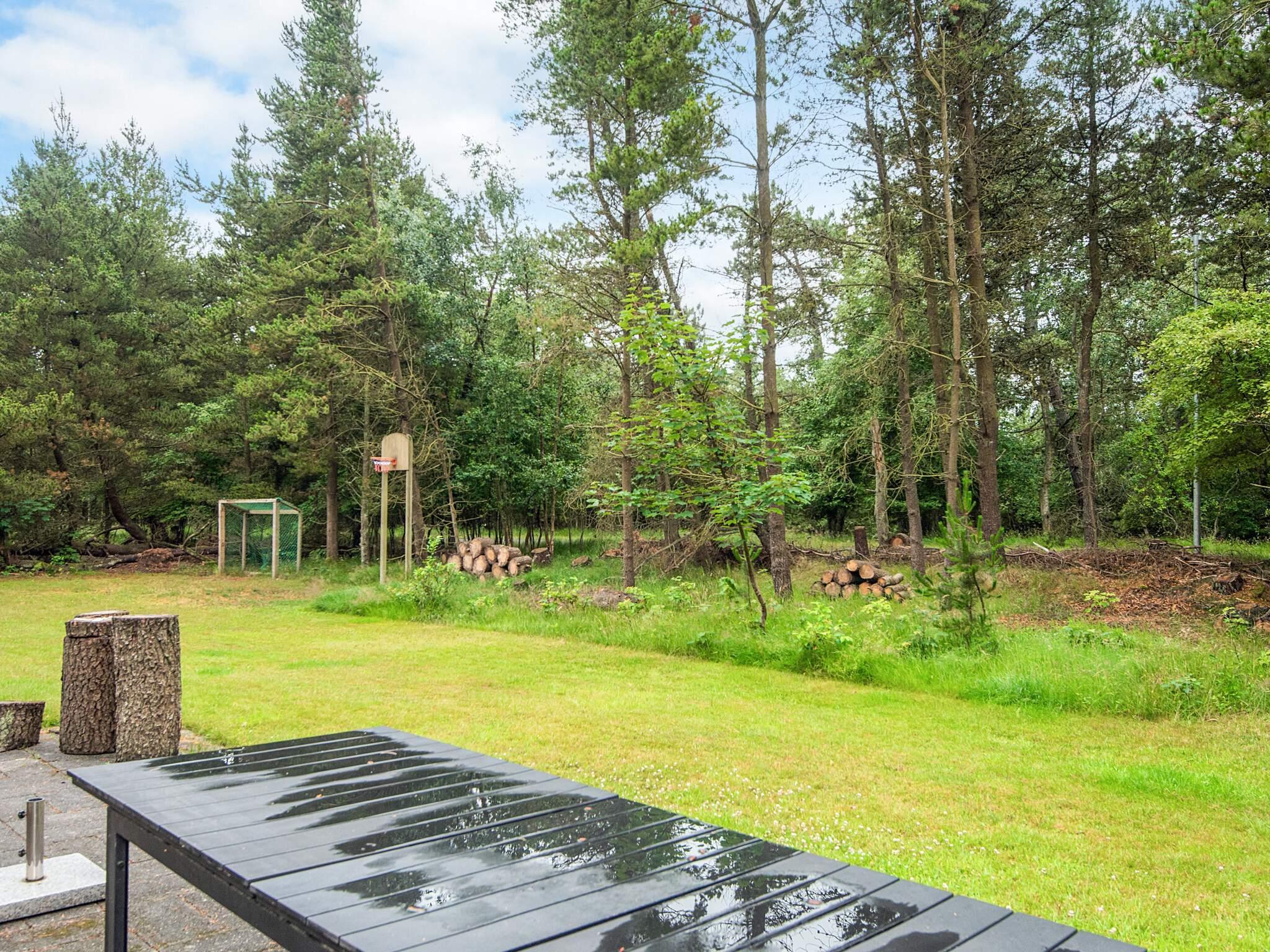 Sommerhuset ligger i et naturskønt og fredeligt område på en stor grund omgivet af græsplæne, hvor der er rig mulighed for udendørsaktiviteter. Der er fodboldmål, basketmål, gynger og sandkasse. På det ene badeværelse er der et spabad, hvor I kan ligge og nyde massagefunktionerne. Huset består af fire soveværelser, et stort køkken- og opholdsrum og en stue med brændeovn og sofamiljø. Den ene dobbeltseng er smal. I forbindelse med huset er der en stor udestue og terrasse mod syd. Der er en golfbane i gåafstand, hvor der er mulighed for pay and play bane. Ikke langt til Ho Feriecenter med bowlingbaner og mindre badeland. Udlejes ikke til ungdomsgruppe
