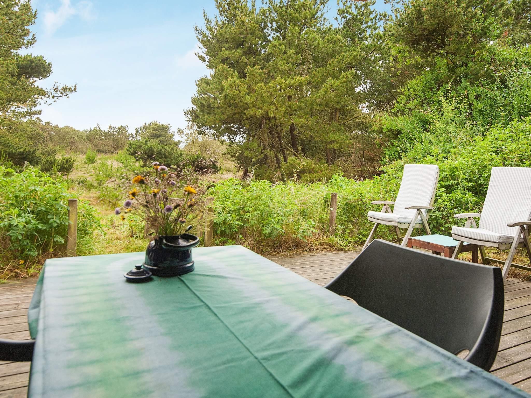 Sommerhus beliggende på en 7000 m² stor naturgrund, hvoraf halvdelen ligger i de fredede klitter. I området er der rig mulighed for at gå ture i det skønne klitlandskab. Sommerhuset, der er "arkitektens eget hus", er med trævægge inde som ude og indeholder mange detaljer. Kombineret køkkenafdeling og spisestue med hyggelige bjælkelofter. Alle husets vægge er naturtræ og der er klinkegulve overalt. Der er et smart tv i huset med Appel-tv, hvorpå er DR + TV2 appen installeret. Der er gulvvarme i badet og i stuens opholdsafdeling. Det oprindelige hus er opført i 1983 men er moderniseret i 2004. Stor sydvendt, læfyldt og delvist overdækket terrasse. Der er installeret el-ladestander i huset, HUSK selv kabel. Udlejes ikke til ungdomsgrupper.