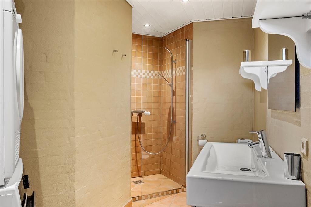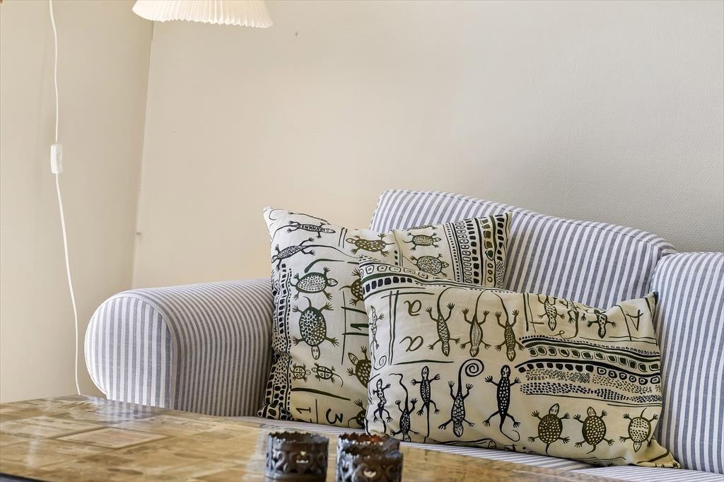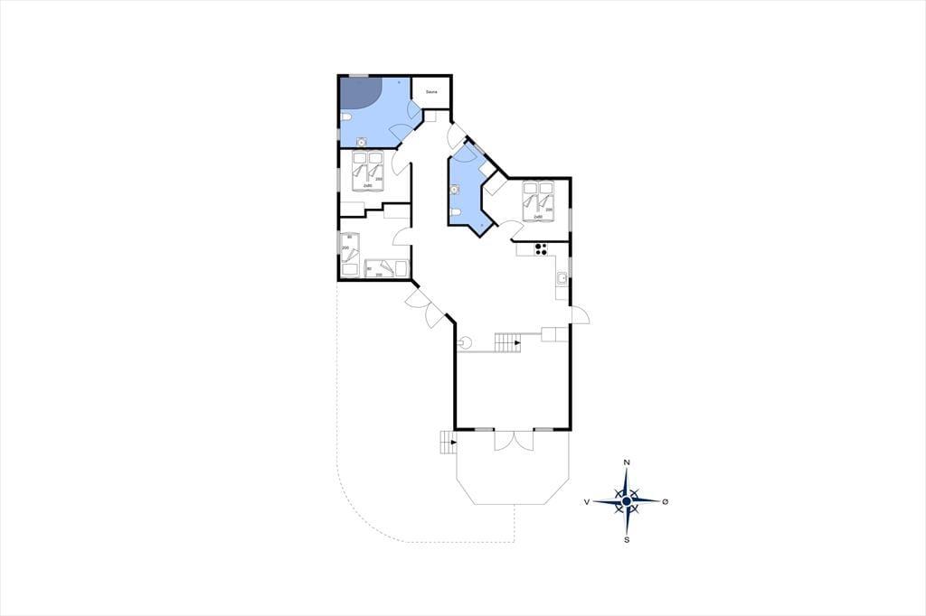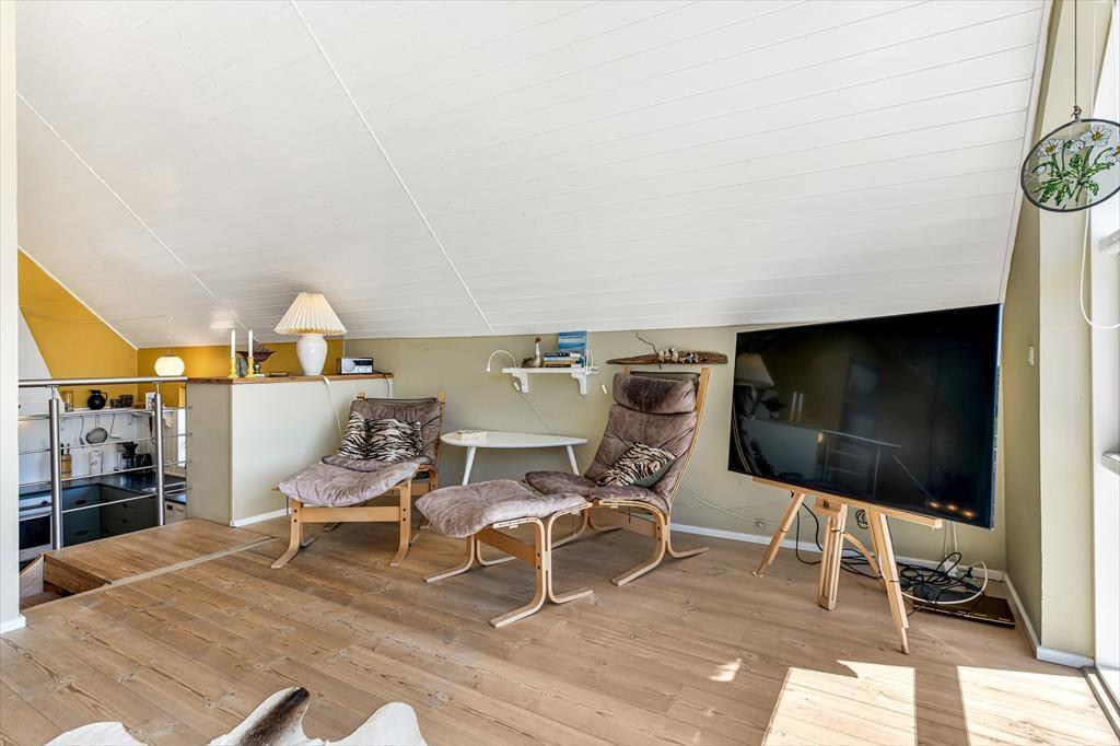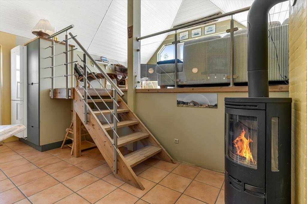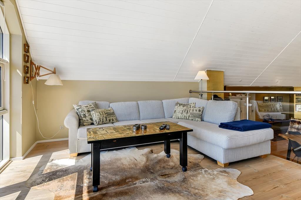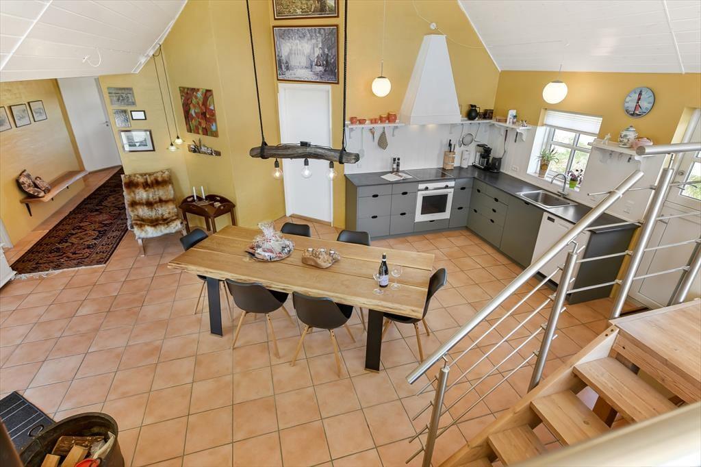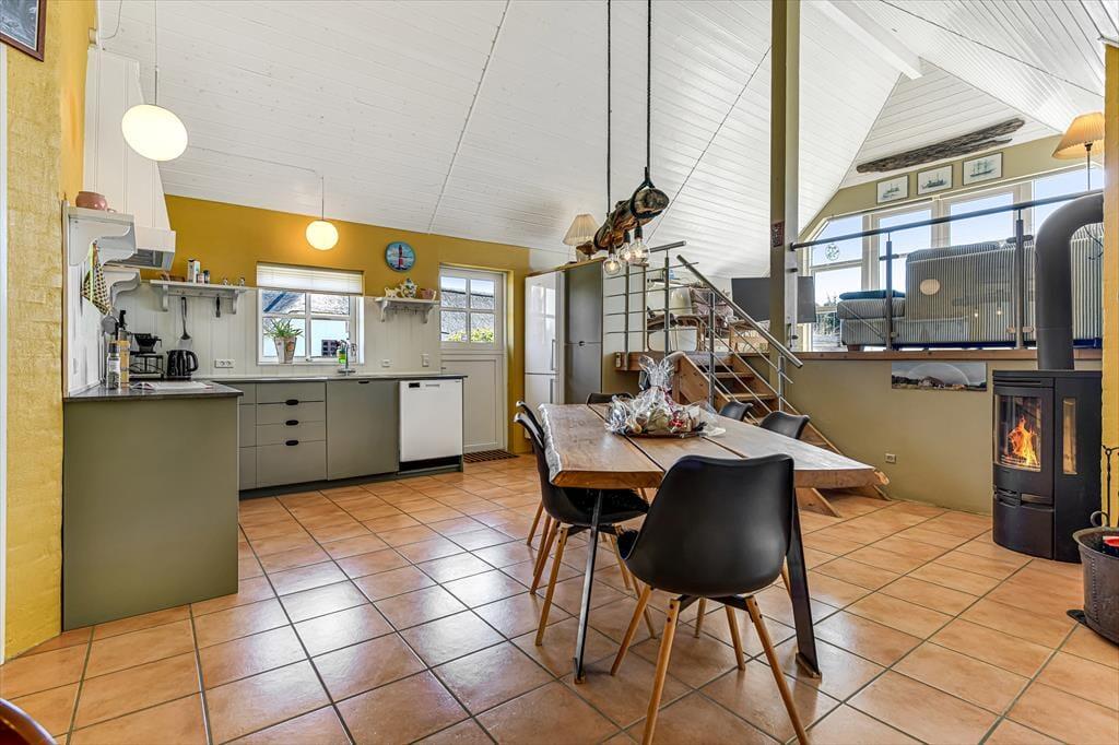Med mørk træfacade, hvide sprossevinduer, stråtag og en hævet terrasse er det allerede udefra tydeligt at se, at huset ikke er en helt almindelig feriebolig. Også indendørs er der skruet op for charmen, for rummene er særdeles hyggeligt indrettet med interiør, der passer perfekt til den rustikke arkitektur. Huset, som er opført i 2006, er samtidig fuld af luksuriøse boligløsninger: For eksempel er det ene af de to badeværelser udstyret med spabad og sauna, og i køkkenet finder I alskens hårde hvidevarer, så I ikke behøver at gå på kompromis med madlavningen. Som en knap så synlig, men bekvem detalje er der gulvvarme i dele af huset, og det suppleres af både varmepumpe og brændeovn. Sidstnævnte står i køkken-alrummet, som er et skønt, højloftet opholdsrum med åben forbindelse til en hævet stue. Endelig rummer sommerhuset også tre værelser med i alt seks sengepladser.