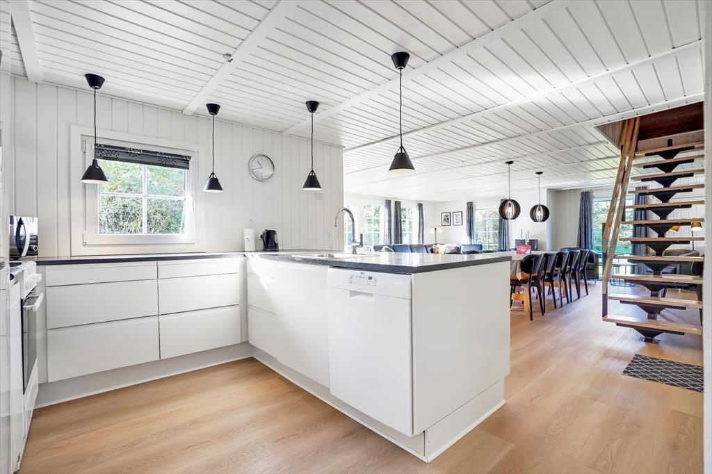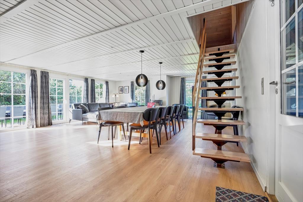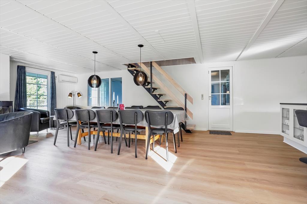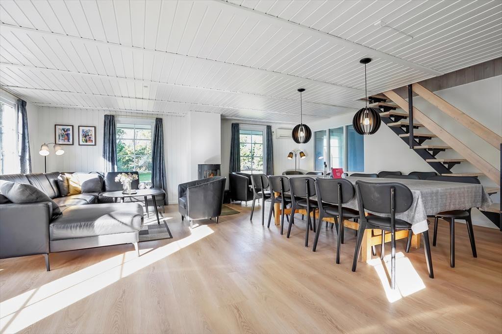 Med et sommerhus af denne kaliber er I sikre på, at alt bare spiller, uanset om I er samlet for at fejre en rund fødselsdag eller om I bare gerne vil holde sommerferie flere familier sammen. Huset måler hele 170 m2 og byder blandt andet på seks soveværelser, som alle er indrettet med komfortable dobbeltsenge. Værelserne er på praktisk vis fordelt både oppe og nede – så hvis der er små børn med på ferien, kan de blive puttet på førstesalen, mens I fortsætter hyggeaftenen i stueplanets dejlige stue. Et veludstyret køkken ligger i åben forbindelse med stuen, og endelig består planløsningen også af to gode badeværelser og det førnævnte wellnessområde. Her kan I plaske i poolen, slappe af i spabadet og blive varmet igennem i saunaen.
