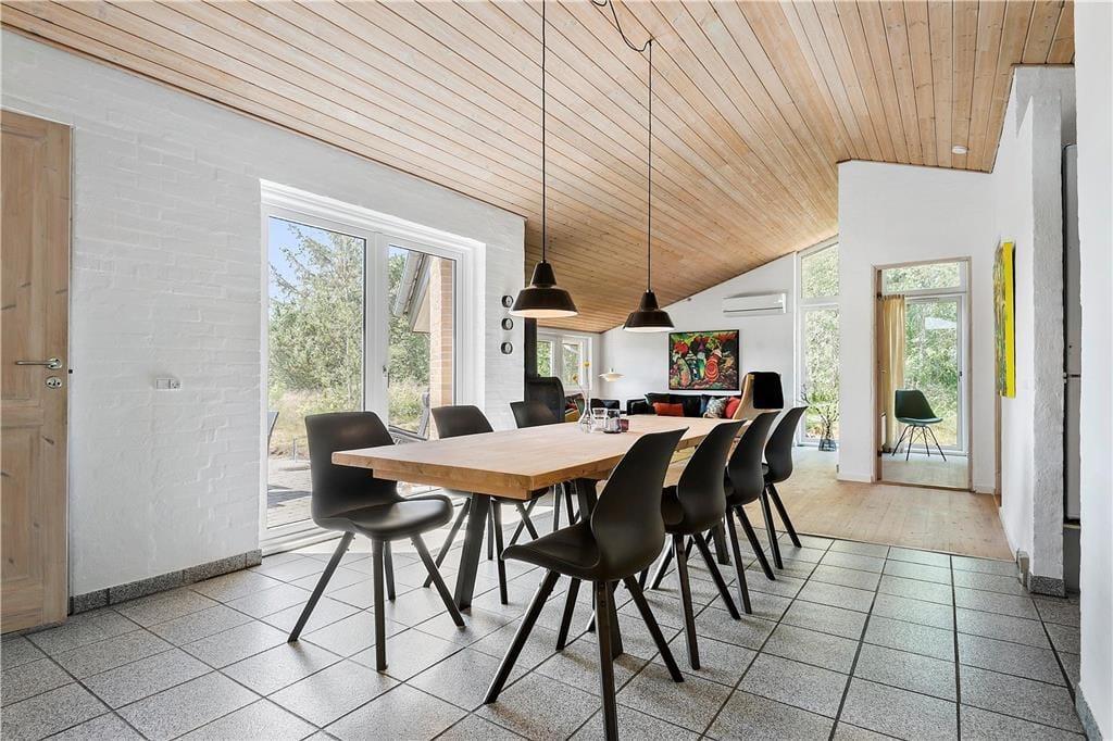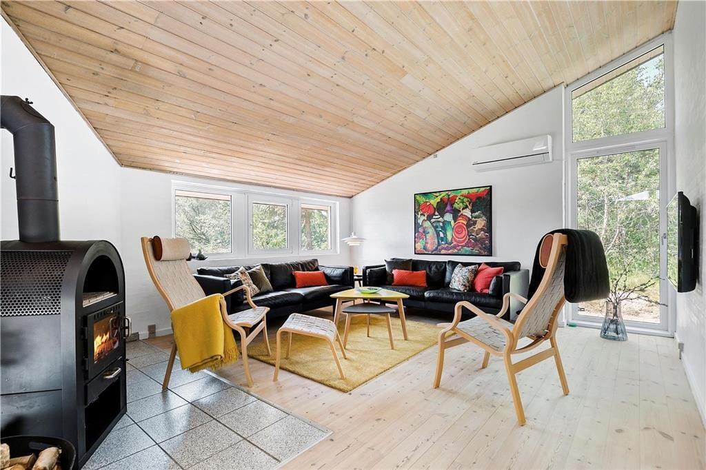 Sommerhuset er en gedigen murstensejendom, der er opdateret med nyt møblement og andre forbedringer i 2019. Det betyder, at I kommer til at bo komfortabelt og godt, og I får endda hele 111 m2 at brede jer på. Planløsningen består af fire gode soveværelser og et praktisk indrettet køkken, som ligger i åben forbindelse med en stor stue. Badeværelser er der to af, hvoraf det ene er indrettet med både spa og sauna – så når I kommer hjem efter dagens oplevelser, kan I tage et velfortjent bad og en afslappende saunatur. Afslapningsstunderne kan også foregå i stuen, for eksempel i sofahjørnet nær brændeovnen og fladskærmen eller samlet til et godt måltid mad ved spisebordet. Uanset hvor I sidder, kan I nyde den frie udsigt til det grønne landskab gennem vinduerne.