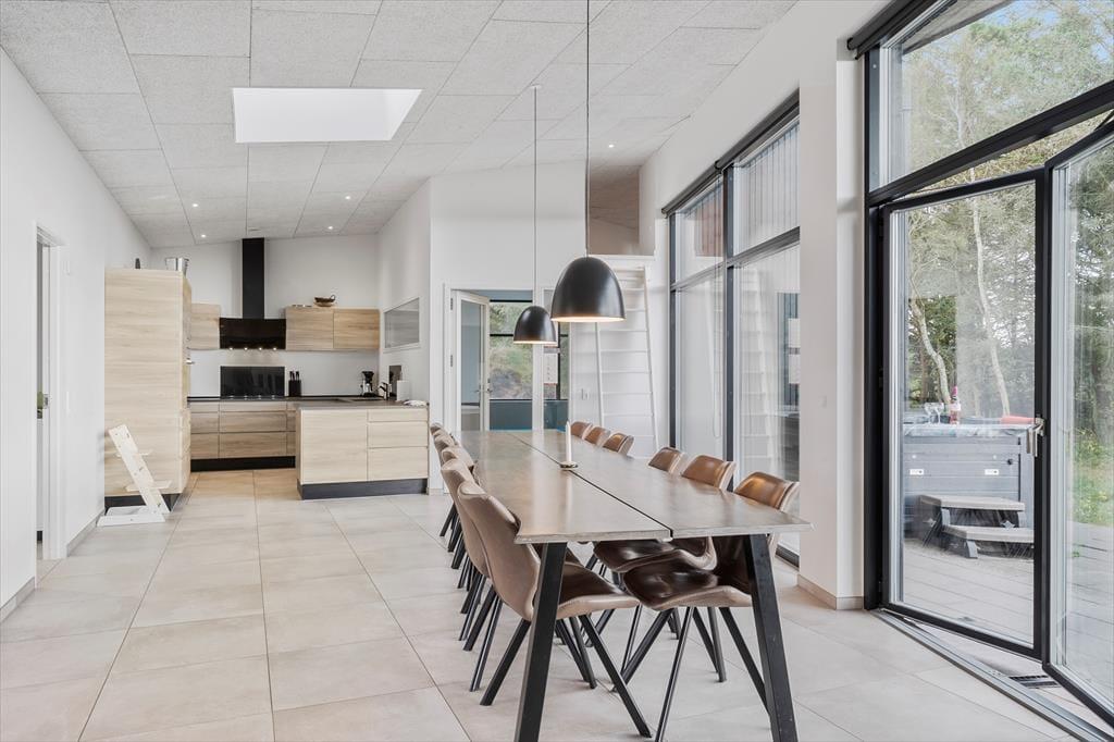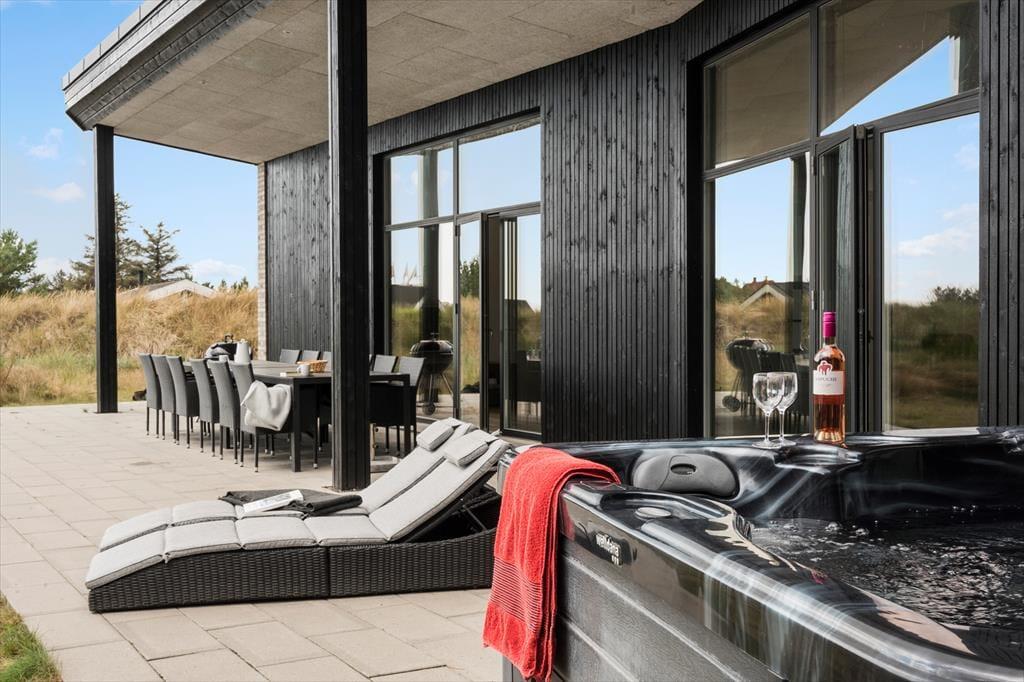 Livsnydere og legebørn i alle aldre får en herlig ramme om ferien i dette gennemført lækre sommerhus i Blåvand. Den moderne og energivenlige ejendom er blandt andet indrettet med et stort aktivitetsrum og en luksuriøs wellnessafdeling, og den store naturgrund, som huset ligger på, forskønner bestemt også ferielivet.