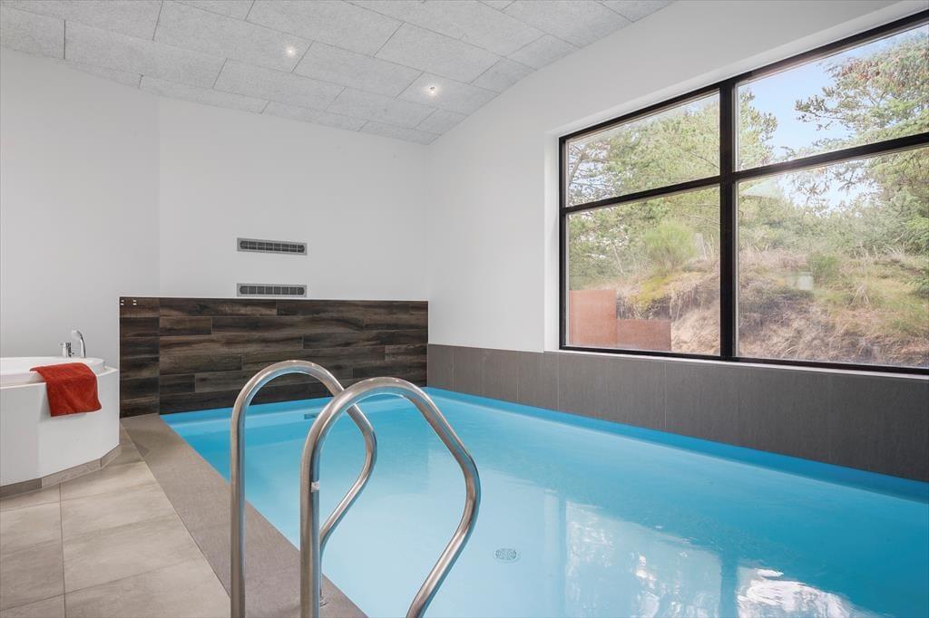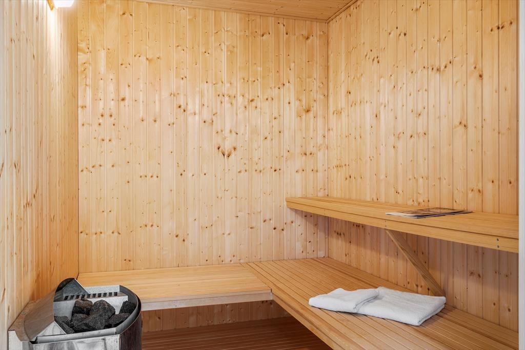 I wellnessafdelingen kan familien hygge sig i den 22 m2 store pool – og hvis I er mere til en afslapningsstund i varmere vand, kan standvandsspabadet anbefales. Kommer I hjem fra en frisk Vesterhavs-dukkert ved den nærliggende Hvidbjerg Strand, er det skønt at få varme i kroppen i husets sauna.