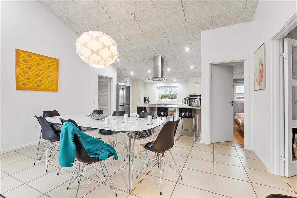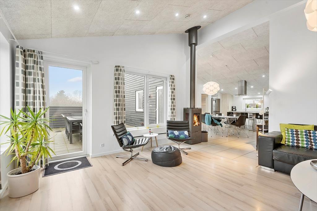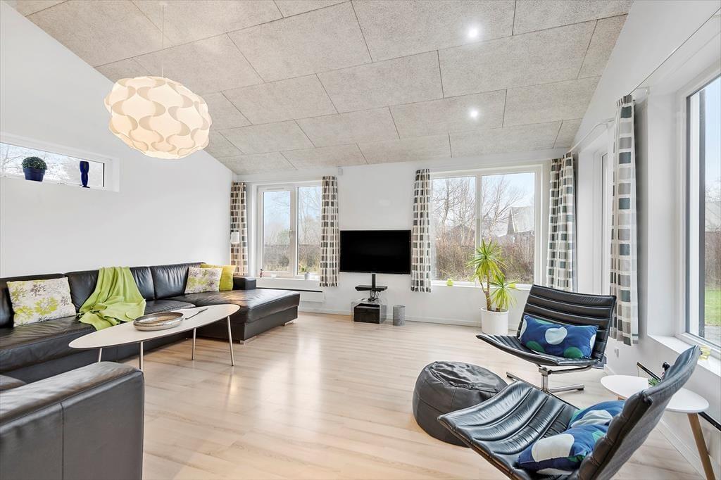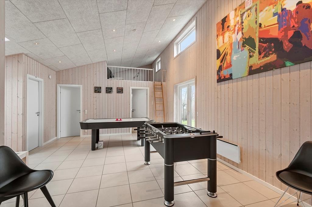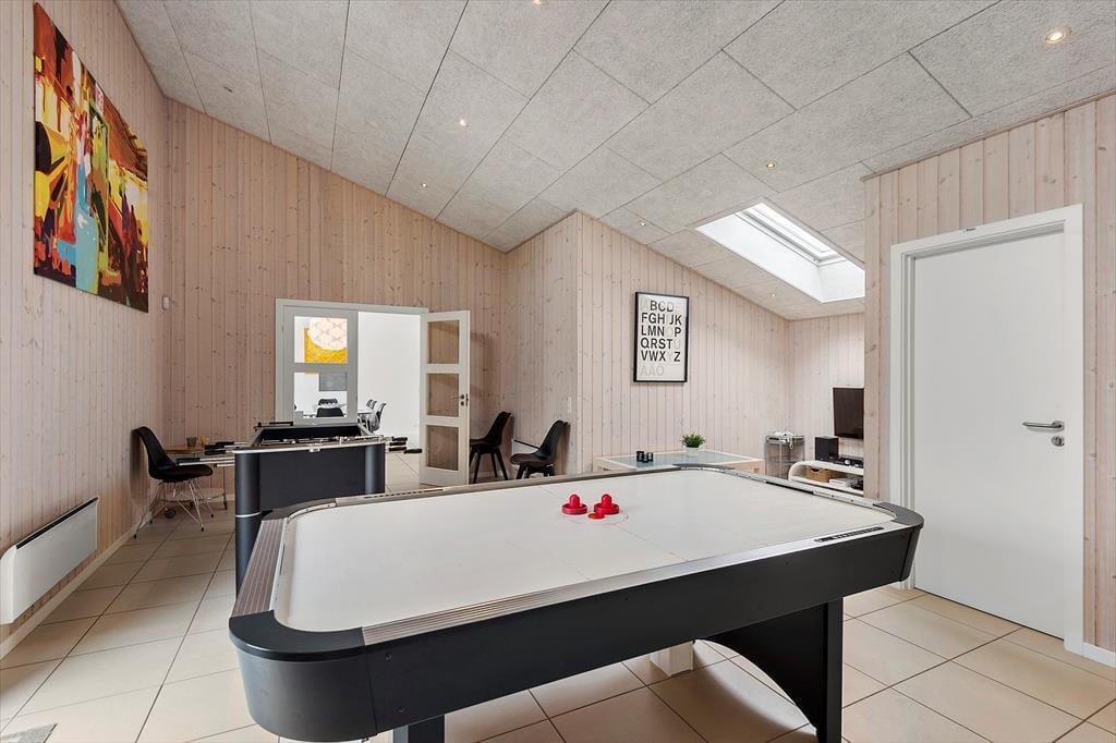 Uanset om du drømmer om at bruge ferien på at sove længe, læse tykke bøger eller have det sjovt med familien, kan det lade sig gøre her i det lyse og velindrettede hus. Planløsningen byder nemlig på fire gode soveværelser, en flot stue med integreret køkken og endelig et stort aktivitetsrum, hvor du og dine kære kan hygge jer med at spille bordfodbold, airhockey og Nintendo Wii. Fra aktivitetsrummet er der direkte forbindelse til en hems, der både kan bruges som soveplads og som hyggekrog i løbet af dagen, og hvis du trænger til at slappe fuldstændigt af, er der spabad og sauna på det ene af de to badeværelser.