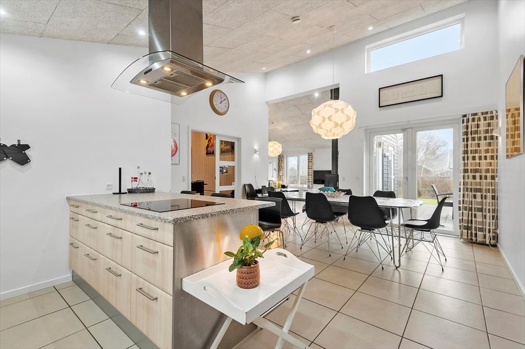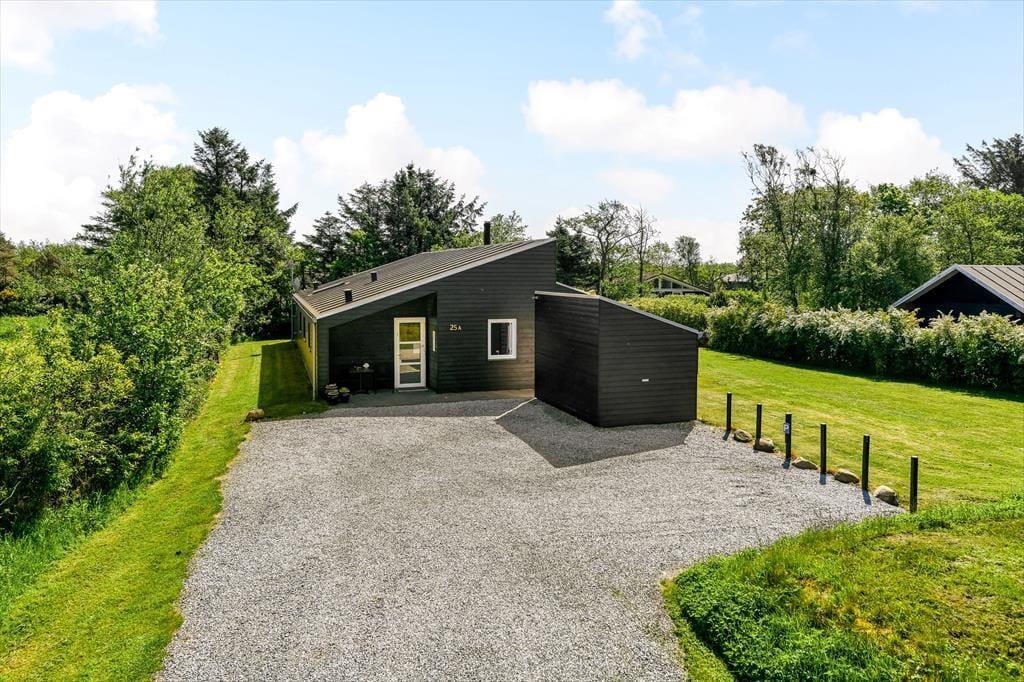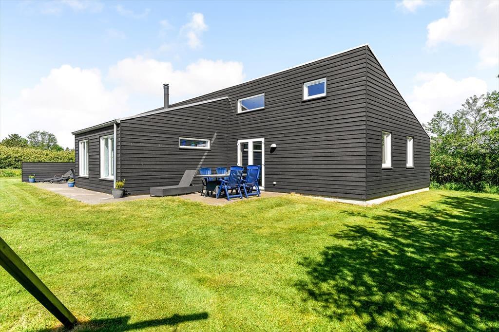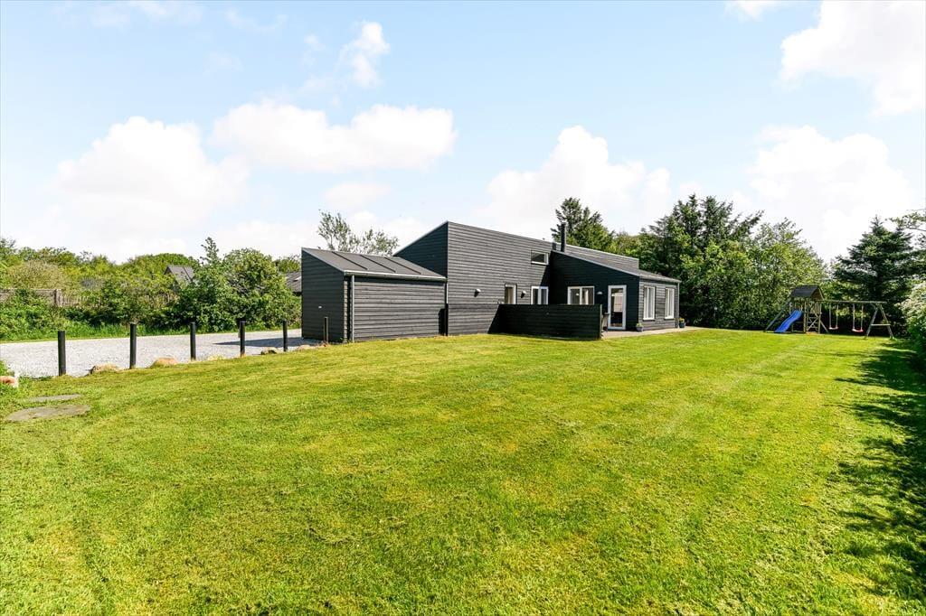 Både børn og voksne kan se frem til at holde ferie i dette lækre sommerhus på Hvidbjerg Strandvej. Det er nemlig udstyret med aktivitetsrum, wellness-badeværelse og legefaciliteter i haven, og så har det en fremragende beliggenhed midt imellem Blåvands hyggelige bymidte og den dejlige Hvidbjerg Strand.
