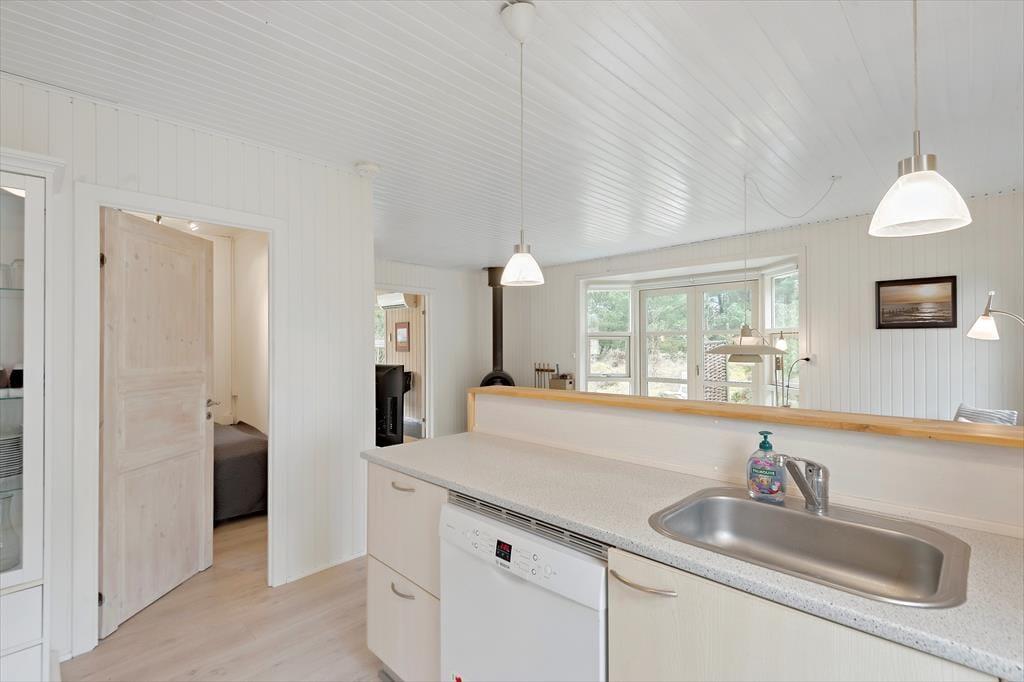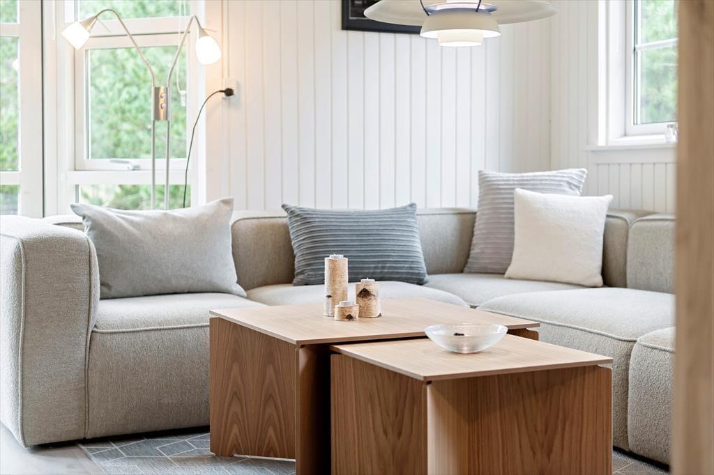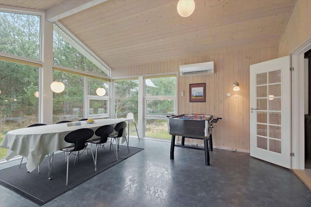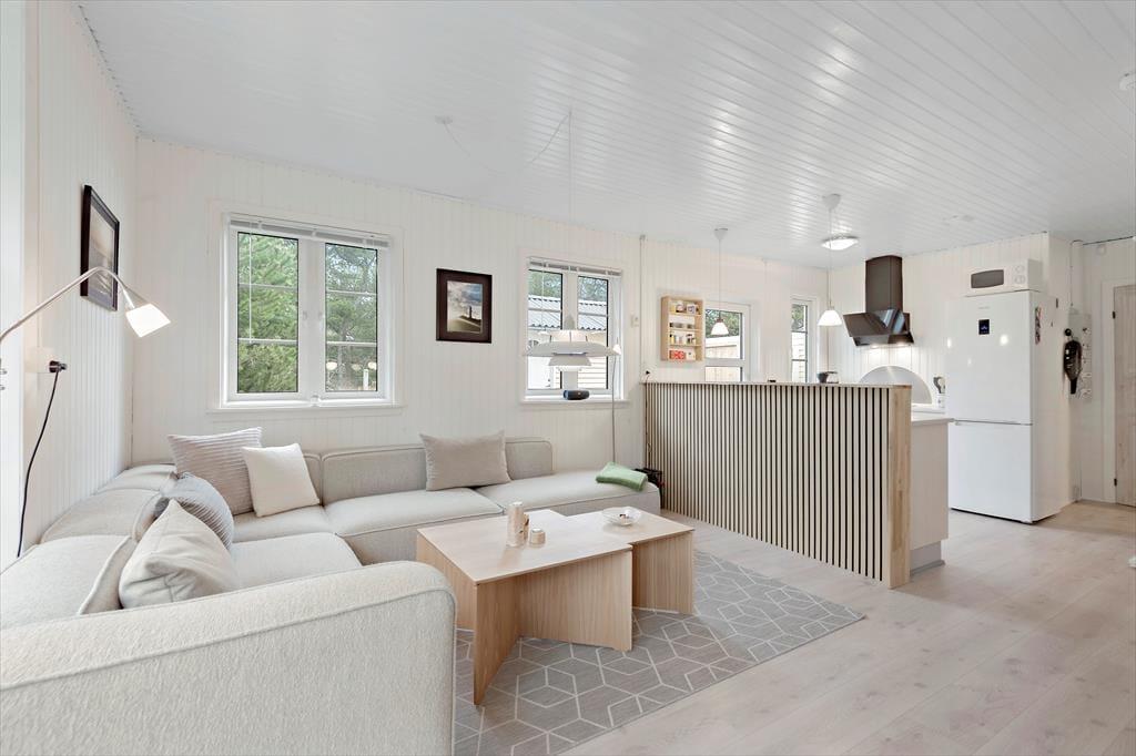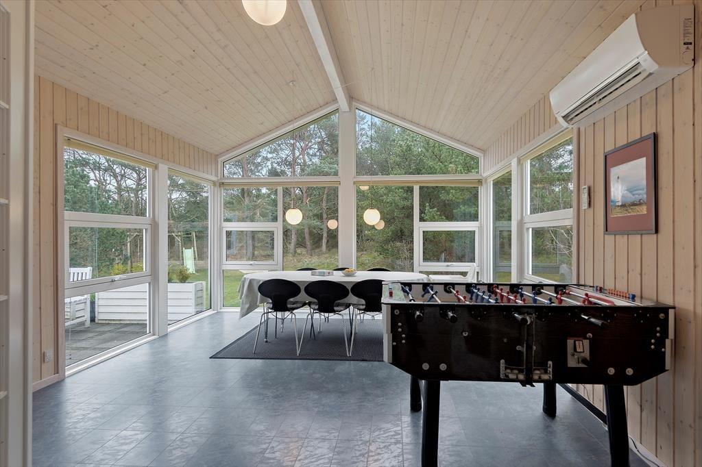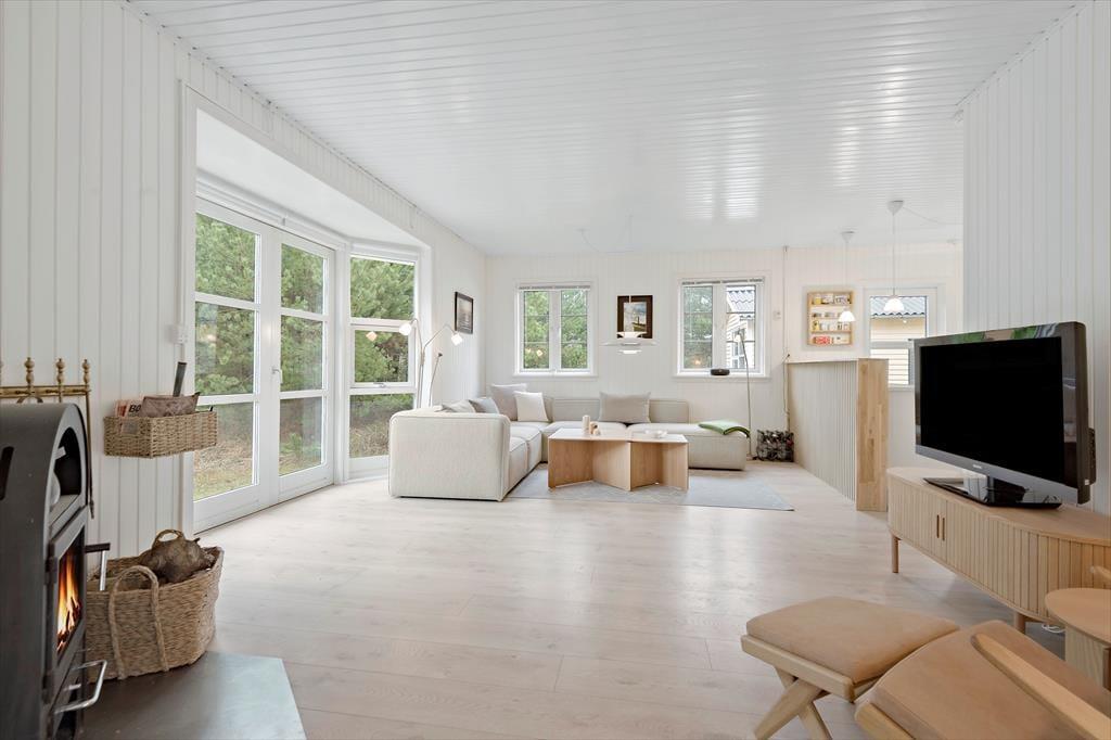 Efter en vellykket renovering i 2023 har sommerhusets rum et lyst og let udtryk. Stuen er et dejligt opholdsrum at være i, uanset om det er vejr til at lade terrassedøren stå åben, eller om du får lyst til at tænde op i brændeovnen. Et veludstyret køkken ligger i åben forbindelse, og via dobbeltdørene har du direkte adgang til husets anden stue, der har så store vinduer vendt mod haven, at den minder om en havestue. Familiens spillefugle kan tage bordfodboldbordet flittigt i brug, og hvis I ikke kan få nok, kan I endda lave en turnering, der kan løbe over hele ferien. Nattesøvnen skal selvfølgelig også passes, og til formålet er der to soveværelser i selve sommerhuset og et tredje i annekset.