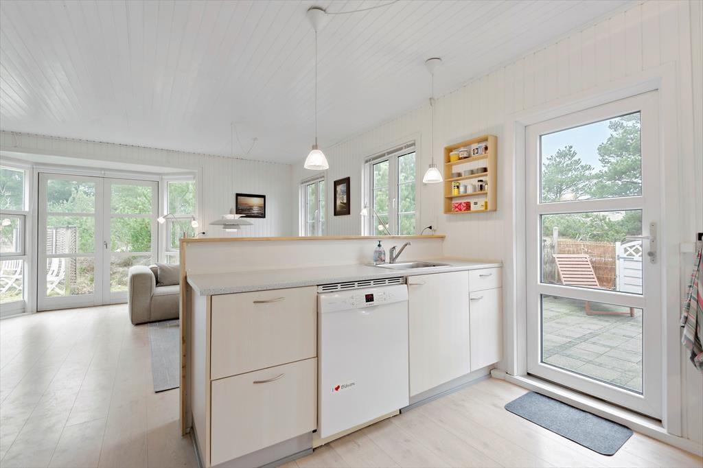 Sommerhuset ligger godt tilbagetrukket på en lille sidevej til Bakkedraget i et af Blåvands naturskønne områder. Bymidten er kun en kort gåtur væk, så hvis du vil spise en stor eftermiddags-is eller på restaurant om aftenen, er der ingen grund til at køre bilen frem. Alt efter, om du får lyst til en dejlig gåtur eller bare vil frem for at tage en hurtig dukkert, kan du spadsere eller køre til stranden, der breder sig langs det mægtige Vesterhav. Lokalområdets natur er i særklasse, og der er både klithede og flotte plantager at udforske – foruden den nærmest uberørte halvø Skallingen, der ligger som del af Nationalpark Vadehavet.