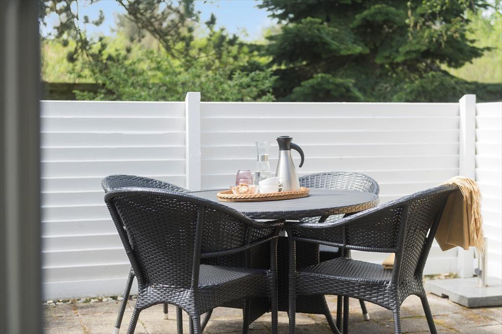 Skinner sommersolen over Blåvand, er det fristende at tilbringe det meste af ferien ude på en af de to terrasser, der breder sig i forlængelse af træhuset. Den ene terrasse har et overdækket areal, hvis du får brug for at søge ly for en forbipasserende byge, og hvis det er skygge, du leder efter, kan du sætte dig på græsplænen under grundens smukke træer. Mens du slapper af i havestolen, kan du begynde at tænke over, om aftensmaden skal tilberedes under åben himmel – og takket være den centrale adresse kan du hurtigt nå ind til Blåvands slagter eller fiskebutik, hvis du mangler noget at putte på grillen.