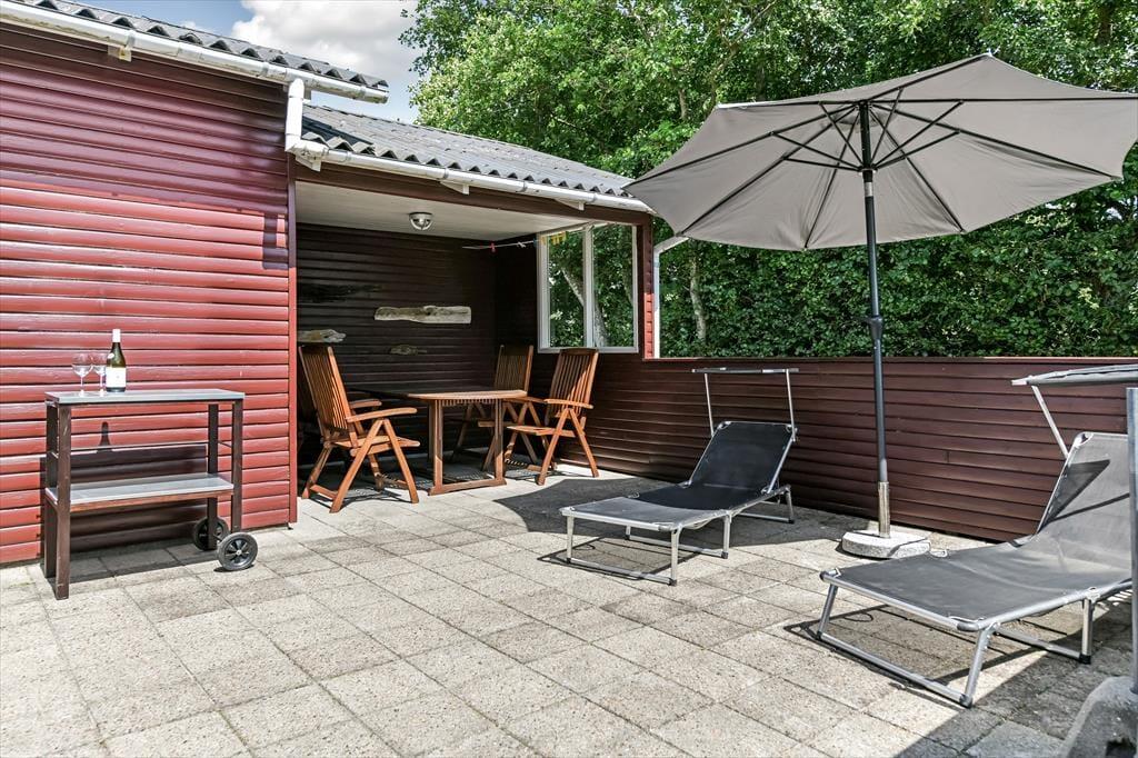 Haven er dejlig stor og grøn. På varme forårs- og sommerdage er det ganske enkelt vidunderligt at lege i haven med børnene og slappe fuldstændig af i fredelige omgivelser. På den sydvendte terrasse bliver du forkælet med masser af sol – skygge giver det overdækkede terrasseområde efter behov. På græsplænen kan du tumle rundt med dine børn og jeres hund eller spille vikingespil og andre underholdende udendørsspil. Til de mindste feriegæster står en sandkasse og en gynge klar.