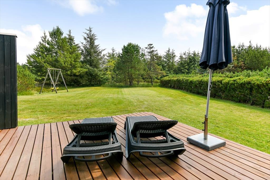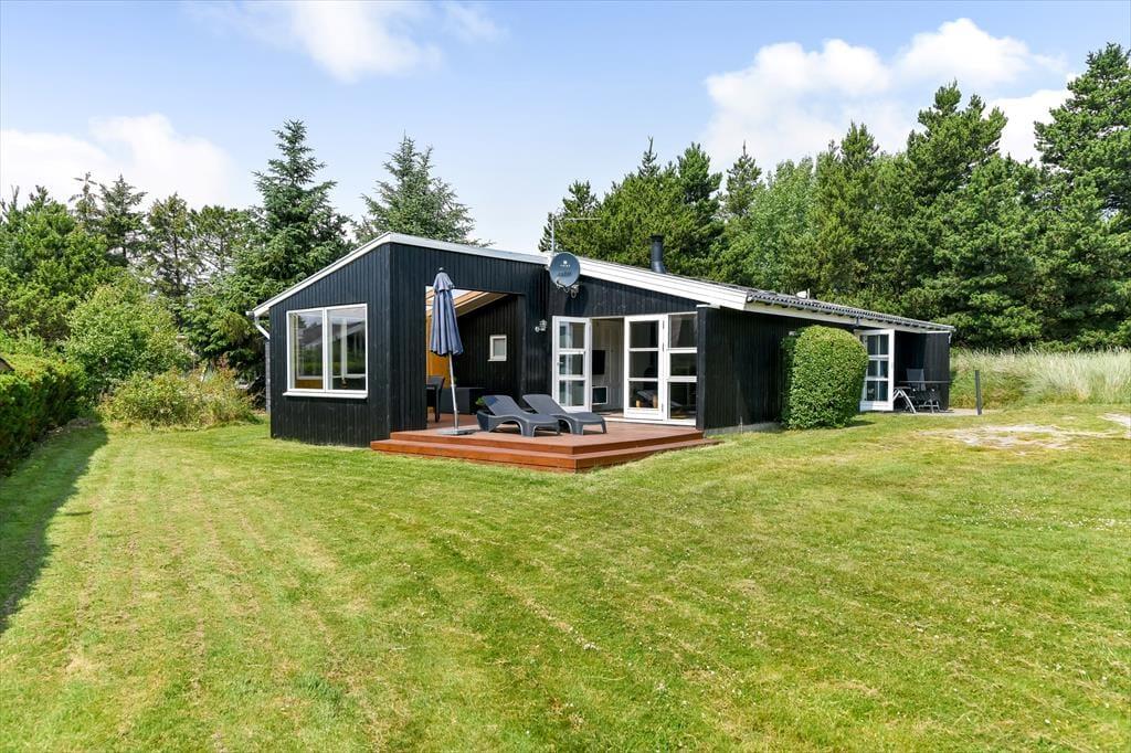 Den fredelige adresse på Nordkrogen i Blåvand er helt klart et af plusserne ved dette dejlige træsommerhus. Mange andre kvaliteter bør dog også fremhæves, for huset har en rar atmosfære og en velfungerende planløsning til fire personer – og ude i det fri venter både et skønt terrassemiljø og en ugeneret naturgrund.