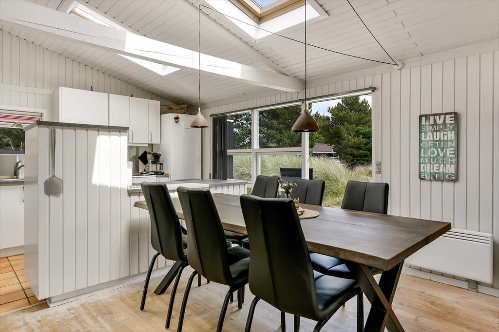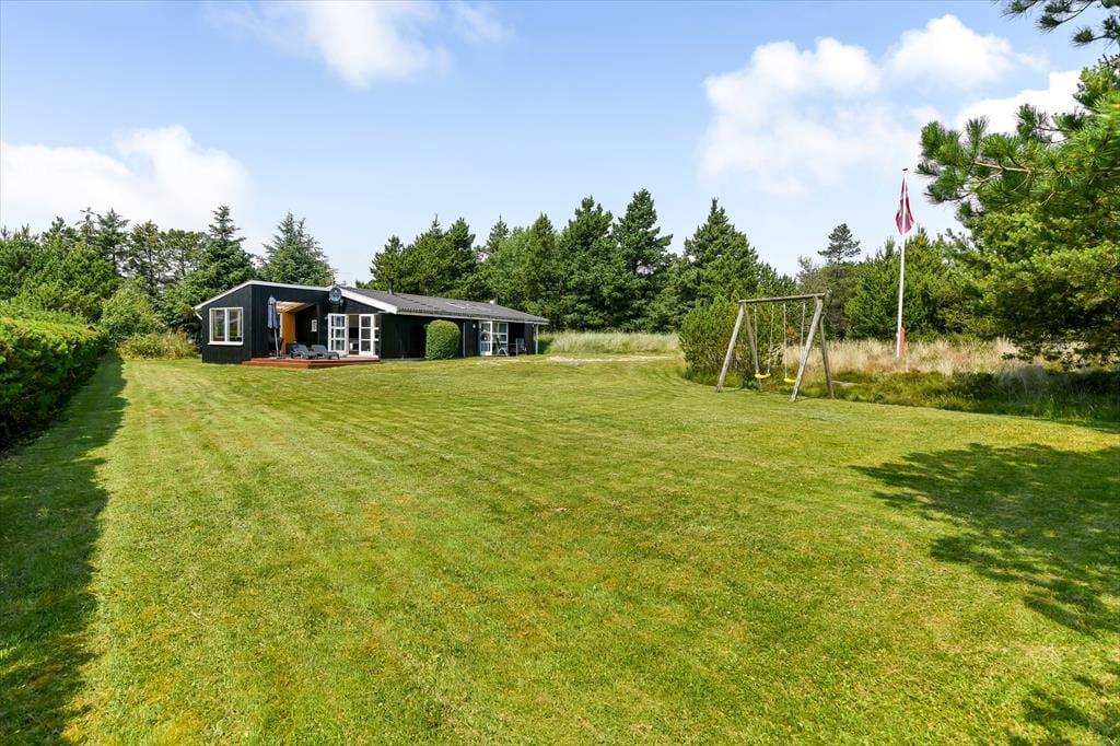 Sommerhuset ligger fredeligt placeret på en lukket vej, der bugter sig i den nordlige ende af badebyen Blåvand. Hvis du vil gå tur med udsigt til klitheden, er det nemt at komme ud af byen – og du kan også hurtigt nå frem til Blåvands smukke strande, når du trænger til en frisk dukkert eller en travetur langs med Vesterhavet. Bymidten kan du gå til på ti minutter, så hvis du vil forkæle familien med isvafler, kigge efter den perfekte souvenir i butikkerne eller invitere din udkårne ud på en romantisk middag en aften, behøver I ikke engang finde bilen frem.