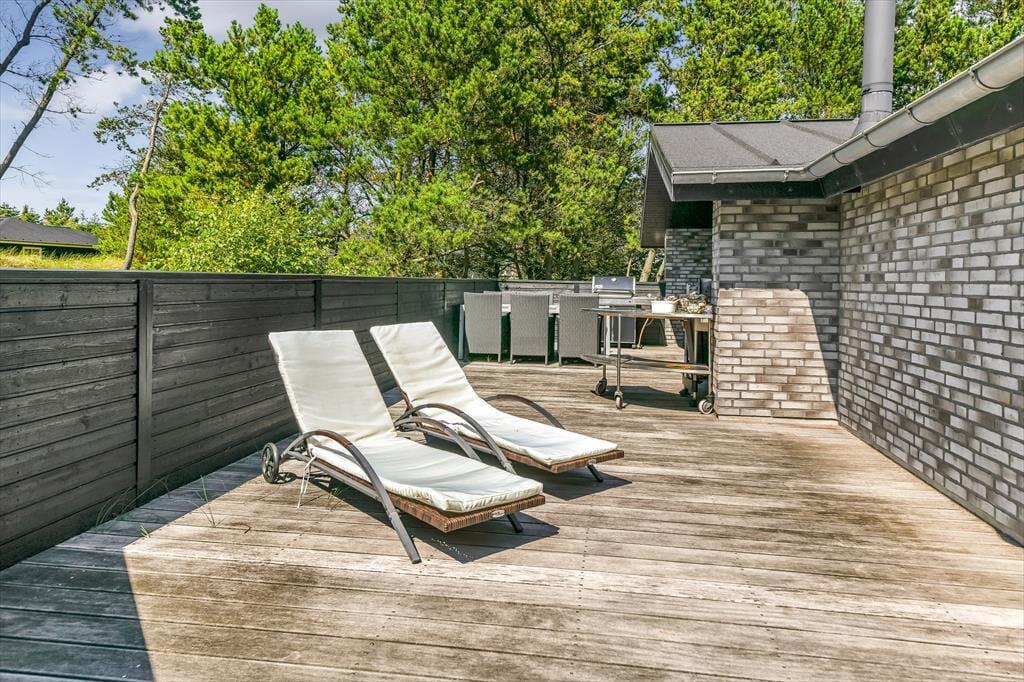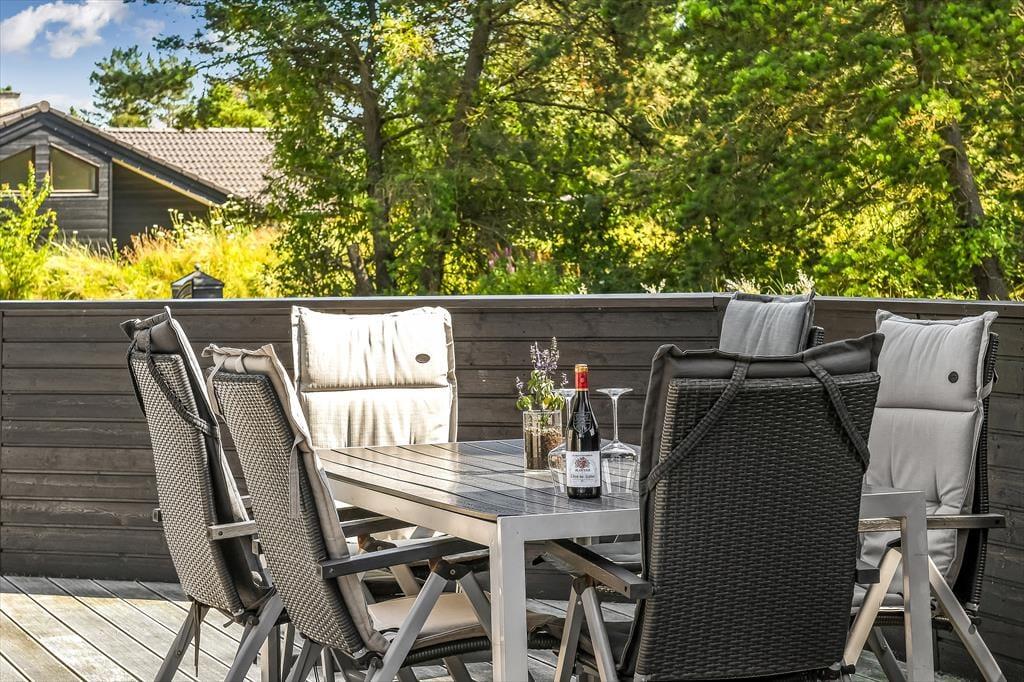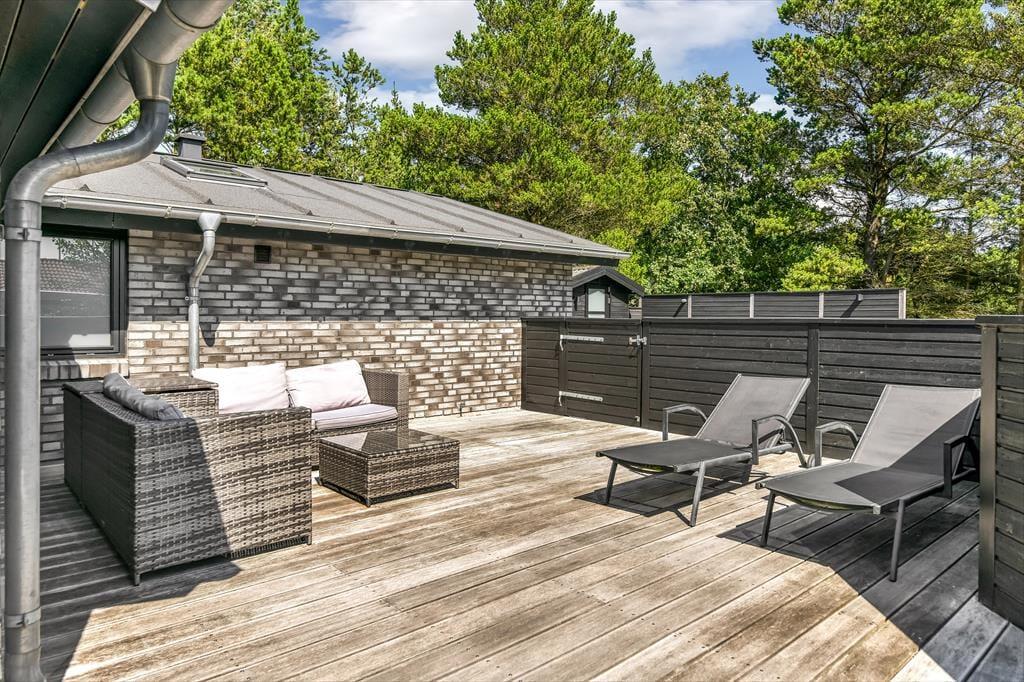 Udendørsområdet på Toldbodvej 28 er som skabt til at nyde de lange, lyse dage og lune aftener. Den lukkede træterrasse sikrer privatliv og læ, så du kan slappe af i havemøblerne eller nyde et måltid udendørs i ro og mag. Terrassen er ideel til både solbadning og leg med børnene, og med den skønne, grønne randbeplantning føles det som en lille, privat oase. Den tilstødende port ind til huset giver en ekstra følelse af tryghed og afskærmning, så du kan lade børnene lege frit uden bekymringer.