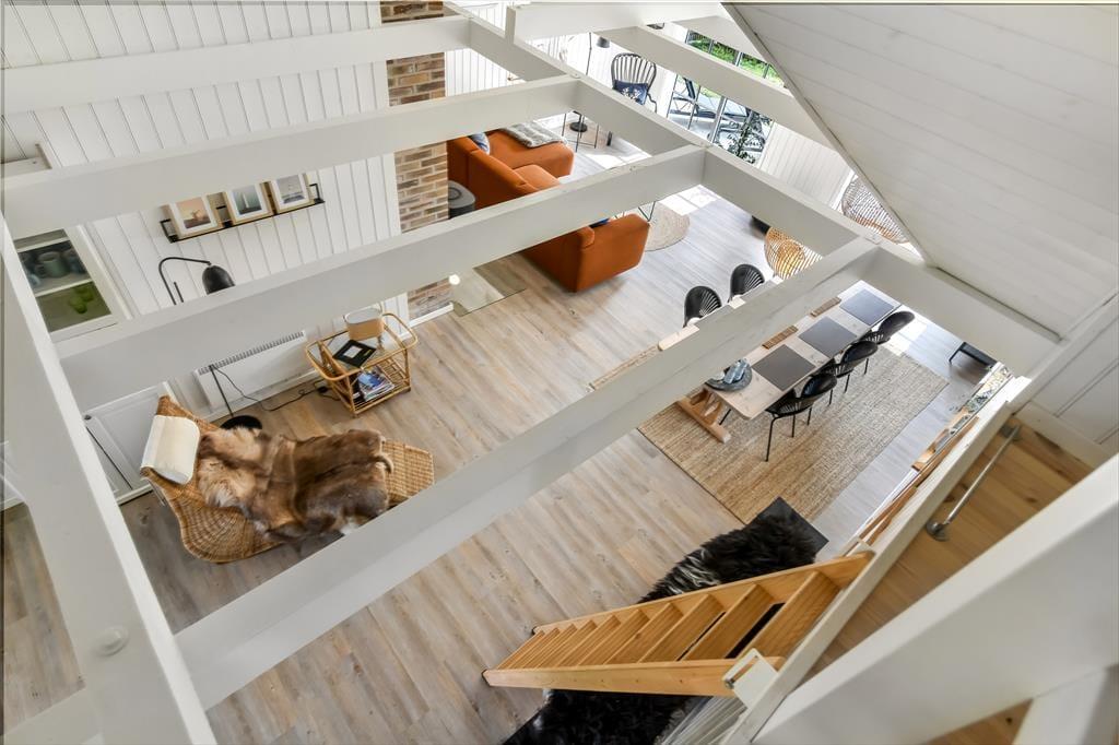 Også ude i det fri er der godt at være, for grunden er stor og naturskøn, så du er omgivet af smukke træer, når du slapper af på en af de gode terrasser eller leger med familien på græsplænen. Områdets vilde fugle synes vist også godt om de fredfyldte omgivelser, og de sidder sikkert klar i trætoppene til at underholde dig med fuglesang, mens du drikker kaffe i solen – og hvis du kigger ud gennem stuevinduet en tidlig morgen, kan det være, at du ser et par rådyr trippe forsigtigt forbi på visit.