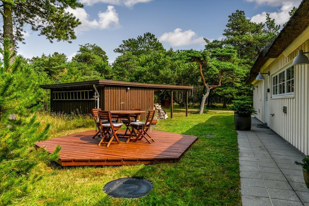 Hvis man slår ordet ’ferieidyl’ op i en ordbog, burde det være et foto af dette stråtækte træsommerhus, der dukkede op. Her på Contortavej 3 i Blåvand får du nemlig hyggestemning og fredfyldt natur for alle pengene – og så ligger det endda i bekvem gåafstand til både stranden og bymidten.