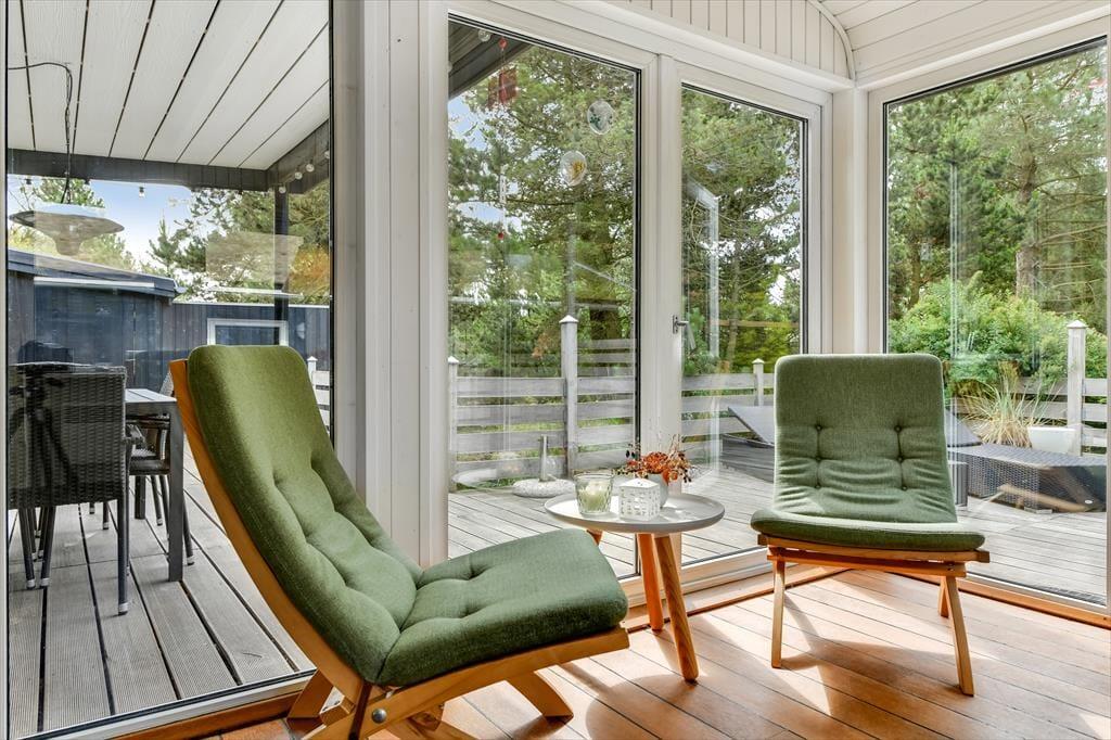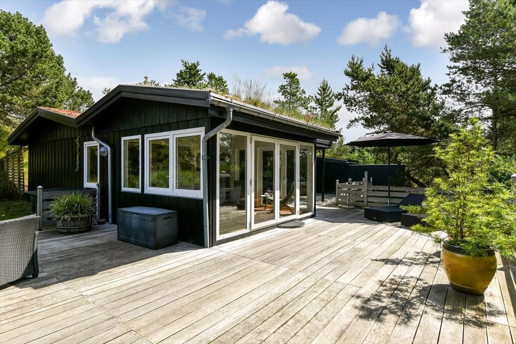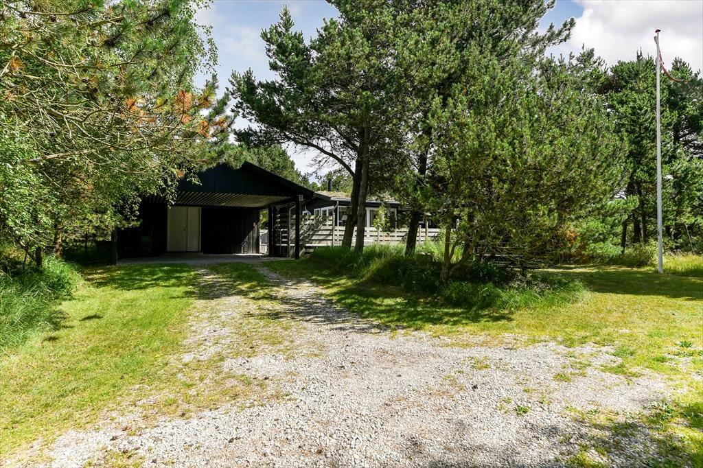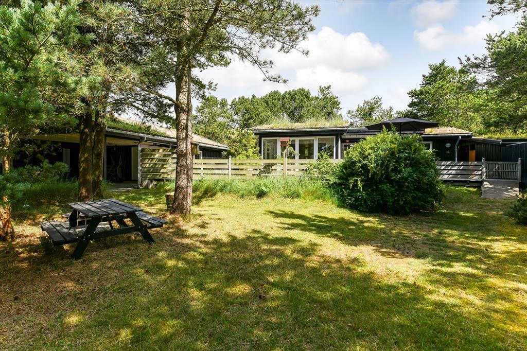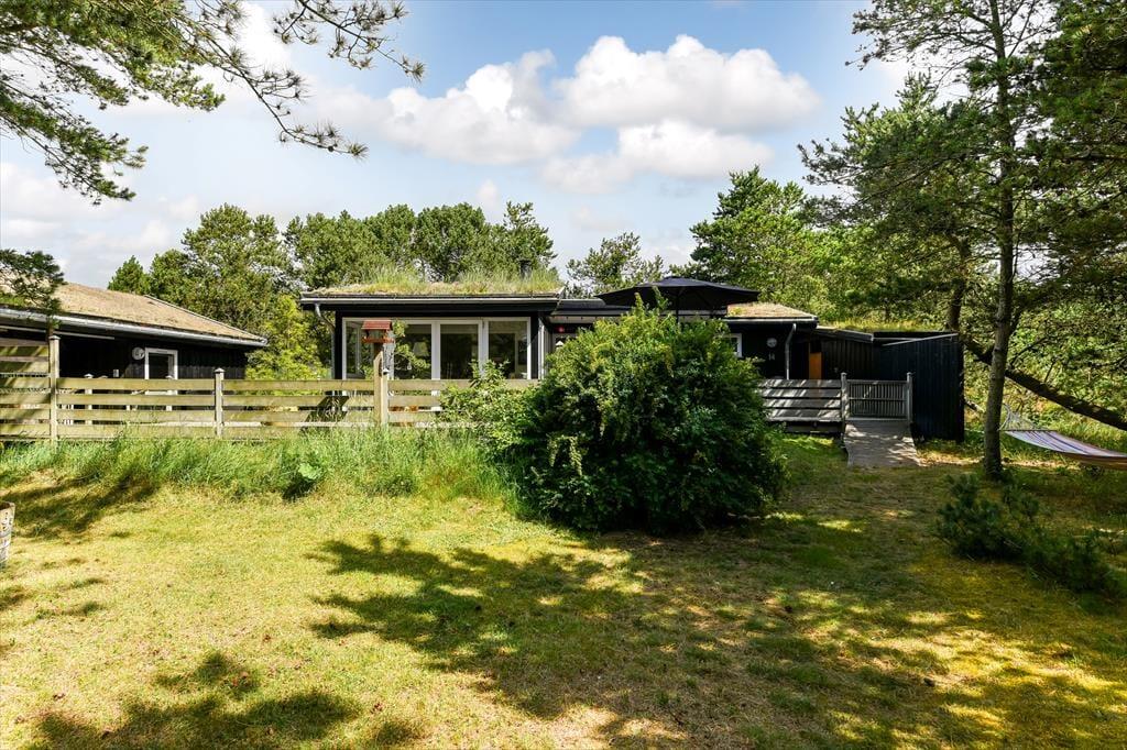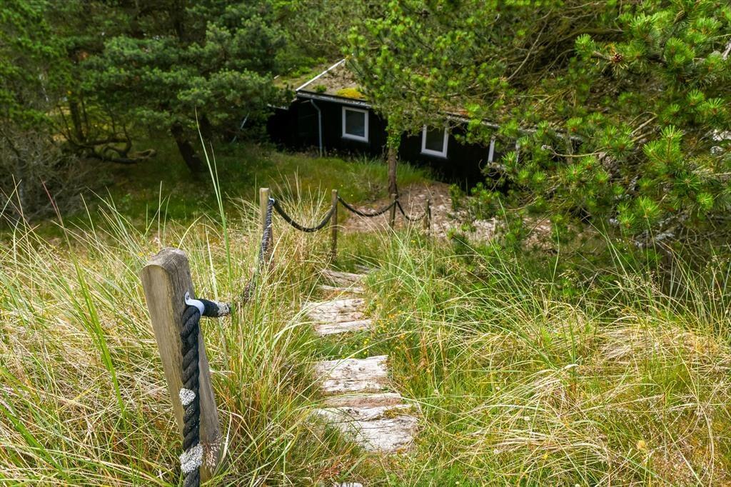 Naturgrunden er virkelig en idyllisk oase: Her er masser af plads til både leg og afslapning, og du kan tilmed gå på opdagelse mellem træerne eller op på klittoppen for at nyde solen og de fredfyldte omgivelser. Rundt om huset er der flere terrasseområder, hvor du kan slænge dig i liggestolene eller samles med dine kære til en kølig forfriskning i loungeafdelingen. Om morgenen kan du skylle dig under udebruseren til lyden af fuglesang, og senere på dagen er det måske tid til at tænde op i grillen og forberede aftensmaden, mens børnene hopper på trampolinen eller leger i det grønne.