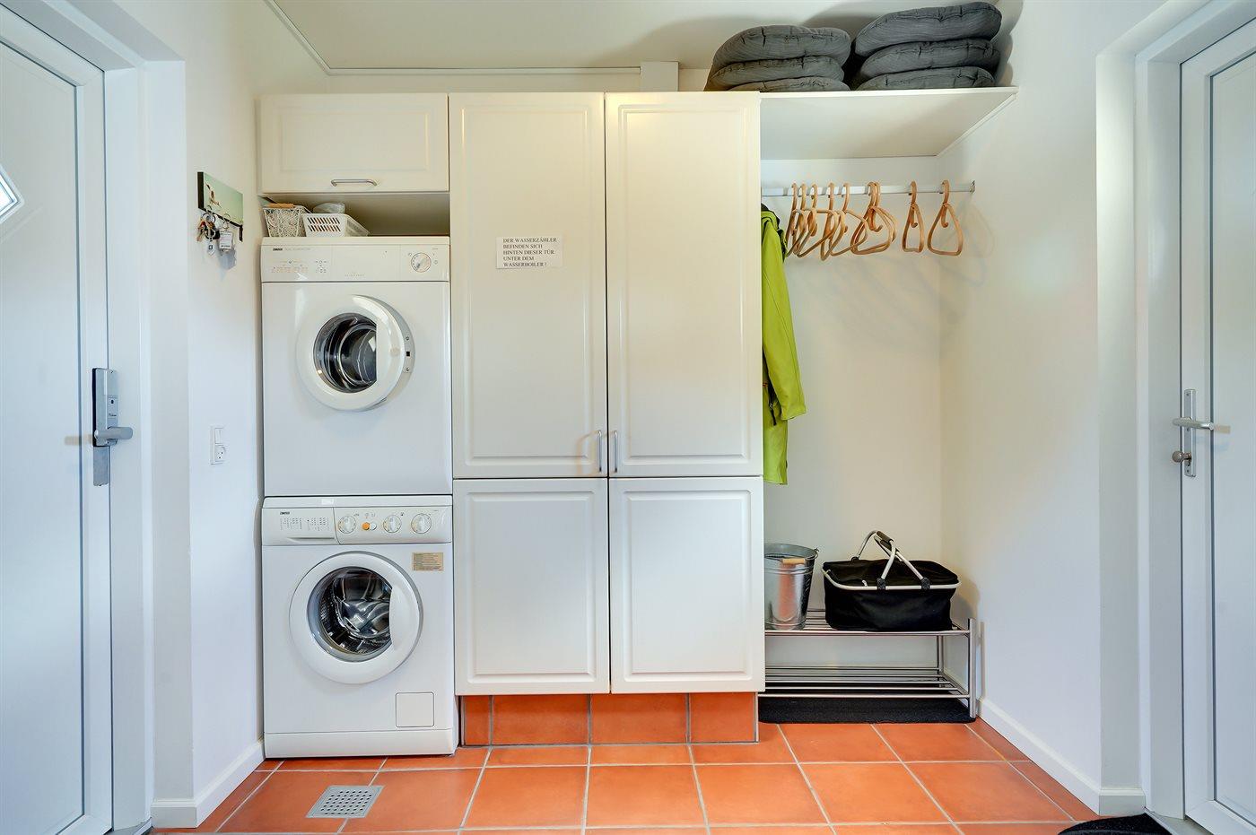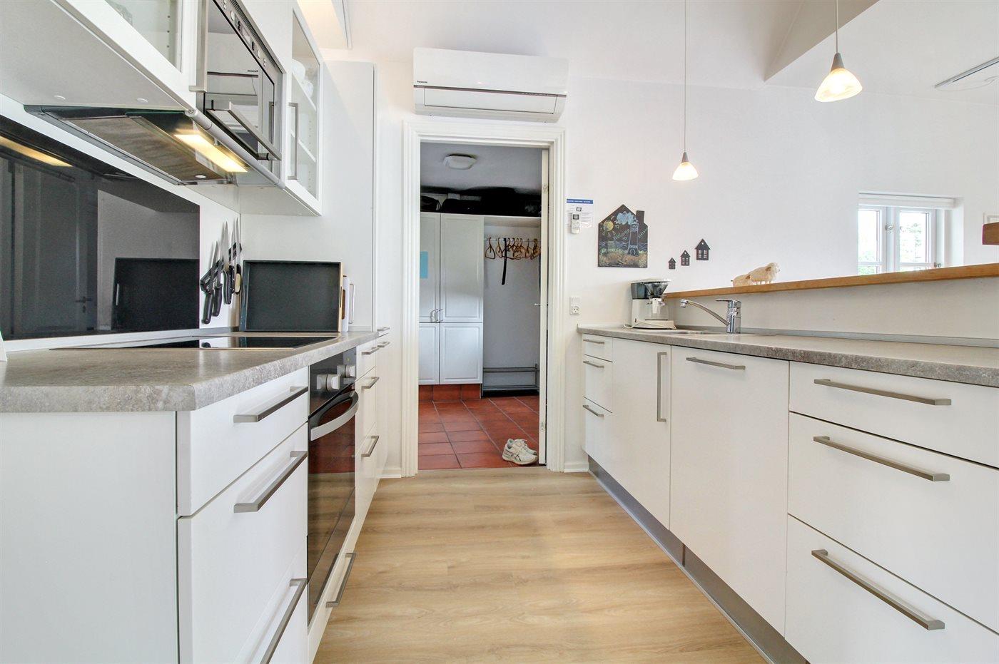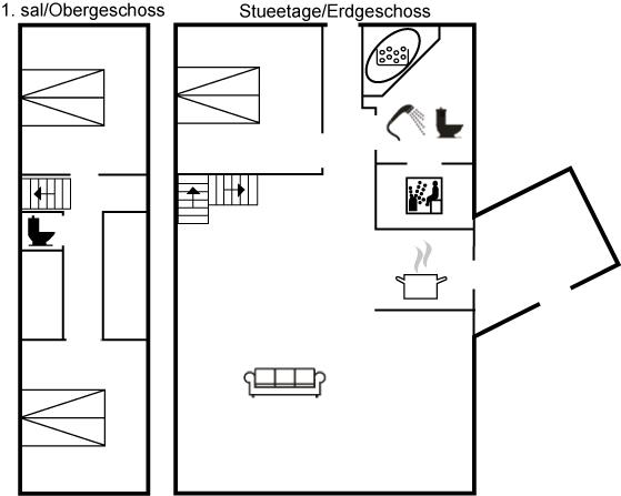 Huset er i 2 plan og opført i 2002. Indvendig er vægge og lofter malet i lyse farver og gulvene er dels belagt med klinker, dels med tæpper. Stuen er møbleret med klassiske møbler og har brændeovn, DVD-afspiller og Smart-TV. Desuden gratis, trådløs internetforbindelse og Chromecast til rådighed. Køkkenet er bl.a. udstyret med opvaskemaskine, mikrobølgeovn og varmluftovn. I det dejlige badeværelse, som er renoveret i 2017 findes der opvarmet klinkegulv, 2-pers. spa, bruseniche og direkte adgang til sauna. Nyt gæstetoilet (2018) på 1. sal. Stort, praktisk bryggers med vaskemaskine og tørretumbler. Husets 6 sovepladser fordeler sig på 3 dobbeltsenge, hvoraf 1 er placeret i stueetagen og 2 på 1. sal. Til de mindste feriegæster findes der barneseng og høj barnestol.