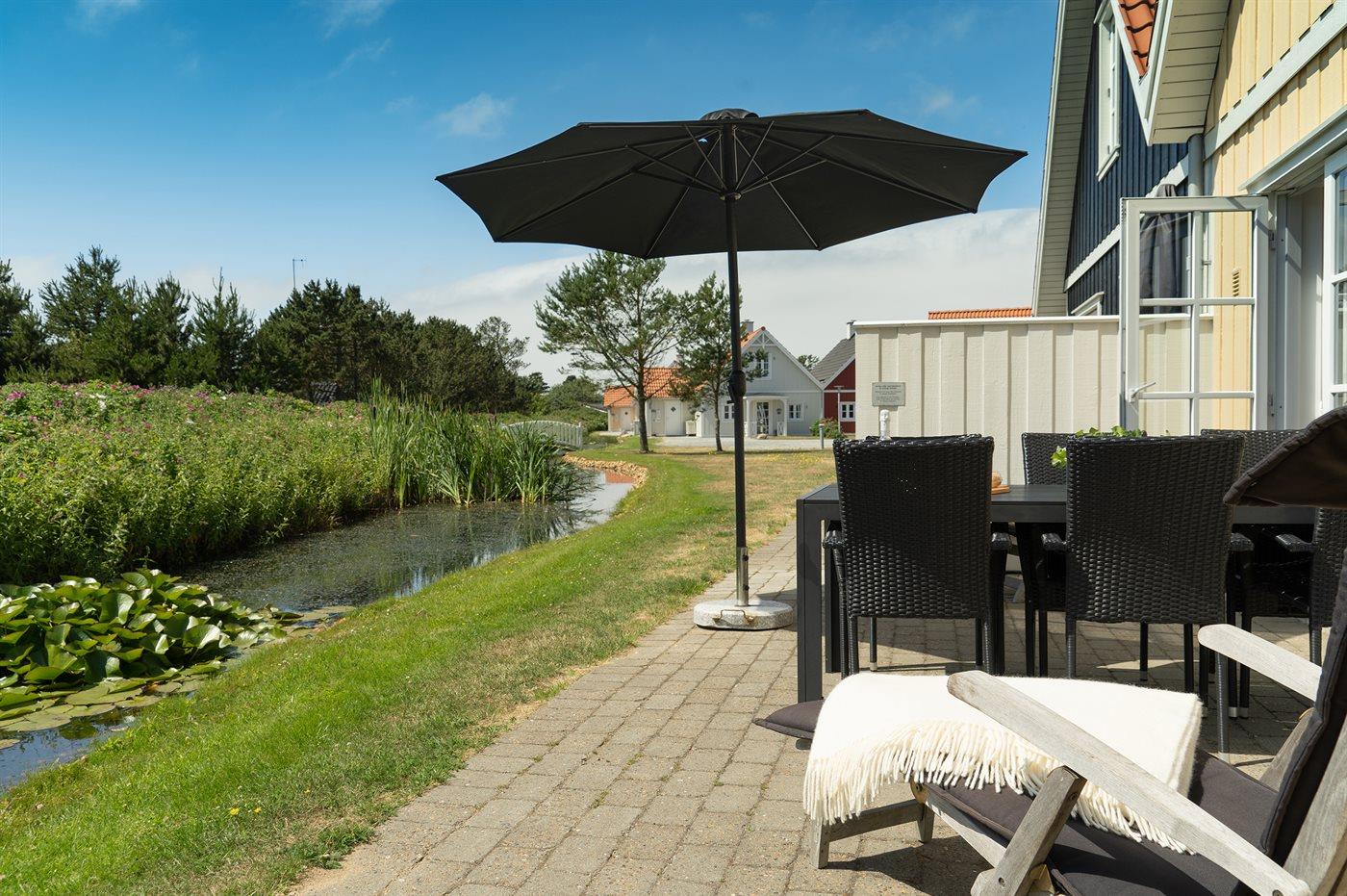 I Blåvandslyst ligger dette romantiske sommerhus i træ. Huset er centralt beliggende i et område med små vandløb og hvide broer - tæt ved indkøb, restauranter, bowlingcenter og strand. Her foregår livet i en rolig atmosfære. De smukke rækkehuse i svensk-inspireret byggestil er placeret i små klynger og har privat parkeringsplads ved huset og terrasse med flotte havemøbler. Der er installeret stik til opladning af elbil.