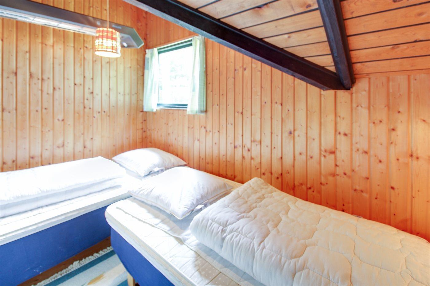 Der er i alt 3 soveværelser. Sovepladserne fordeler sig på: 6 sovepladser i enkeltsenge. Derudover er der 1 stk. barneseng.