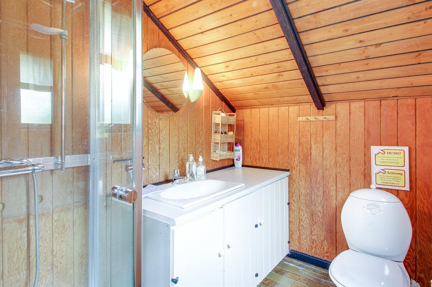 Der er 1 badeværelse med bruseniche og 1 toilet.