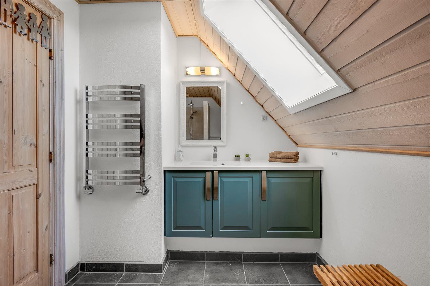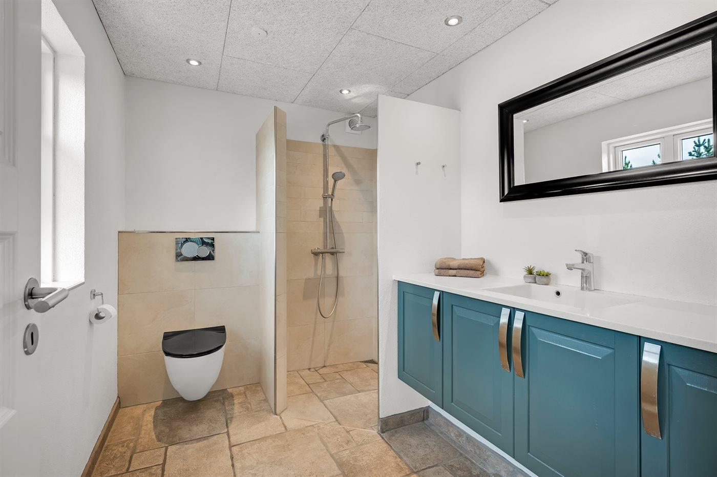 Der er 3 badeværelser med bruseniche og 3 toiletter. Der er gulvvarme på 3 badeværelser. I saunaen er der mulighed for afslapning.