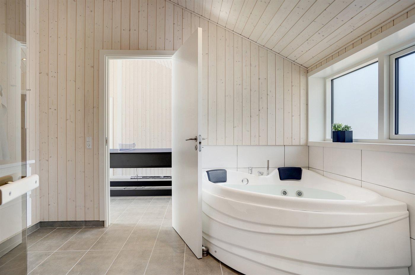 Der er 2 badeværelser med bruseniche og 2 toiletter. Der er gulvvarme på 2 badeværelser. I saunaen er der mulighed for afslapning.