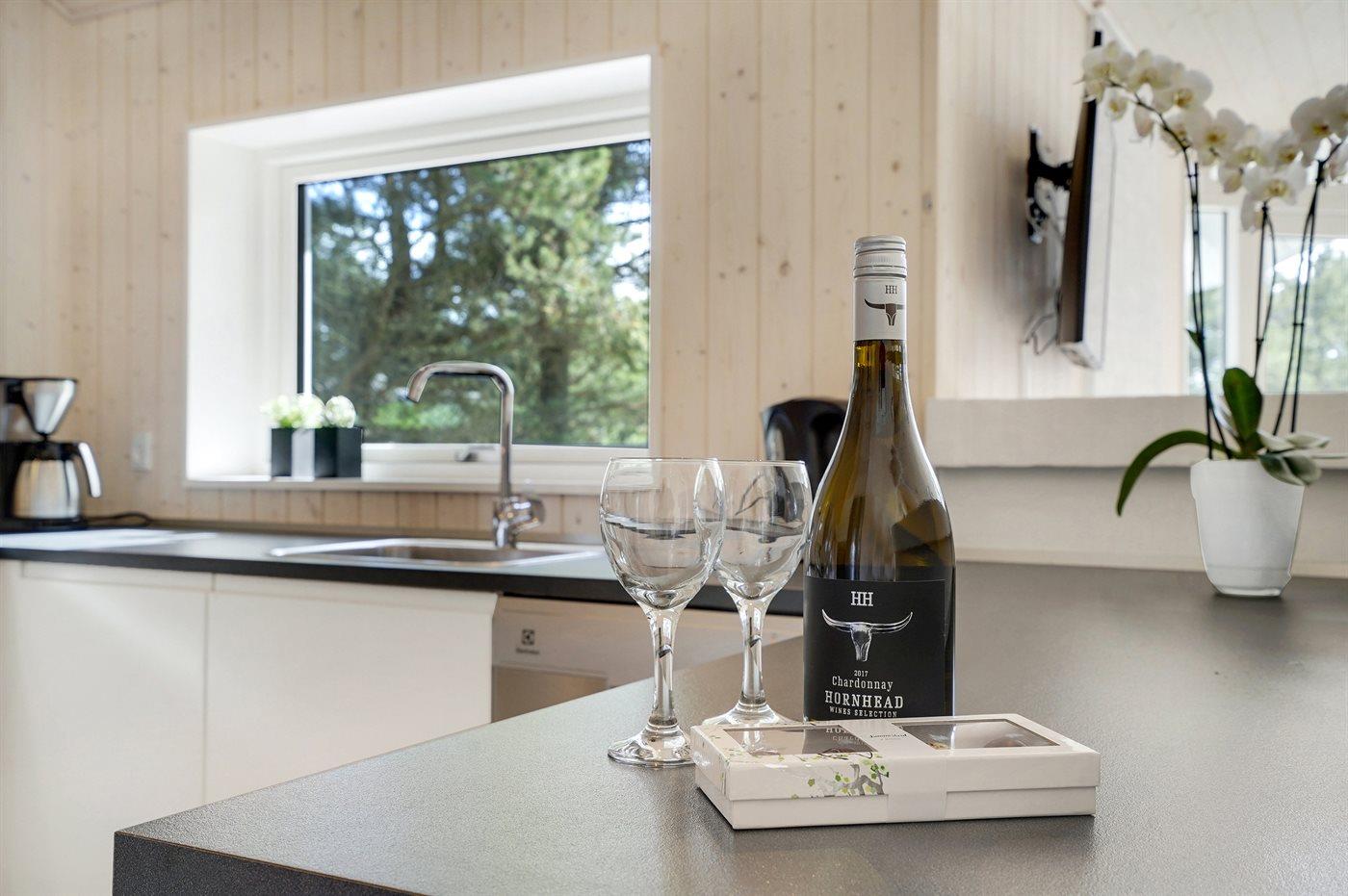 Køkkenet er udstyret med 1 køleskab. Der er 4 keramiske kogeplader, varmluftovn samt opvaskemaskine.