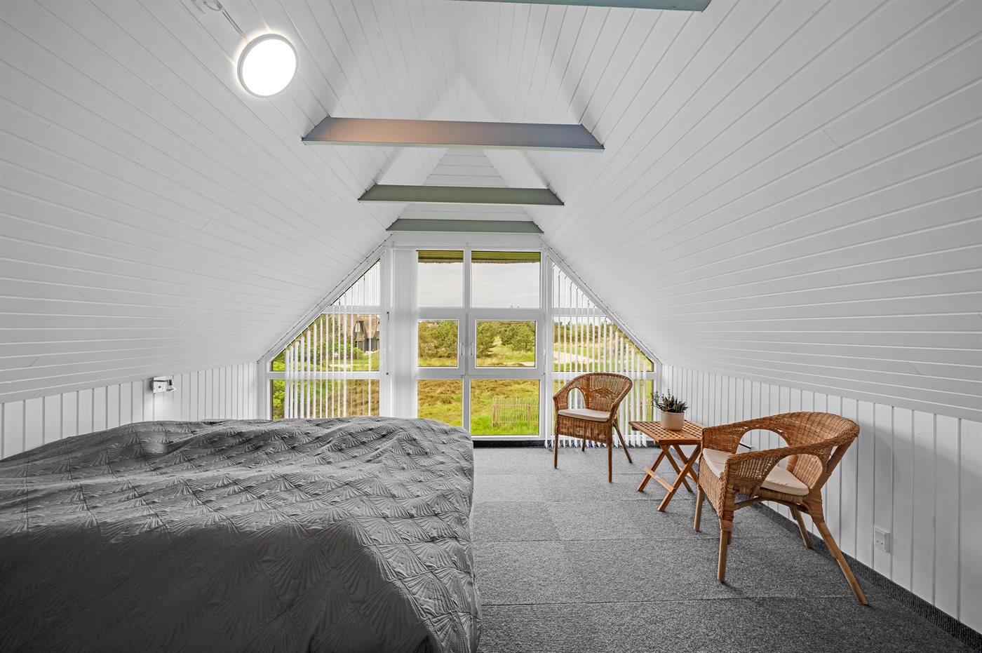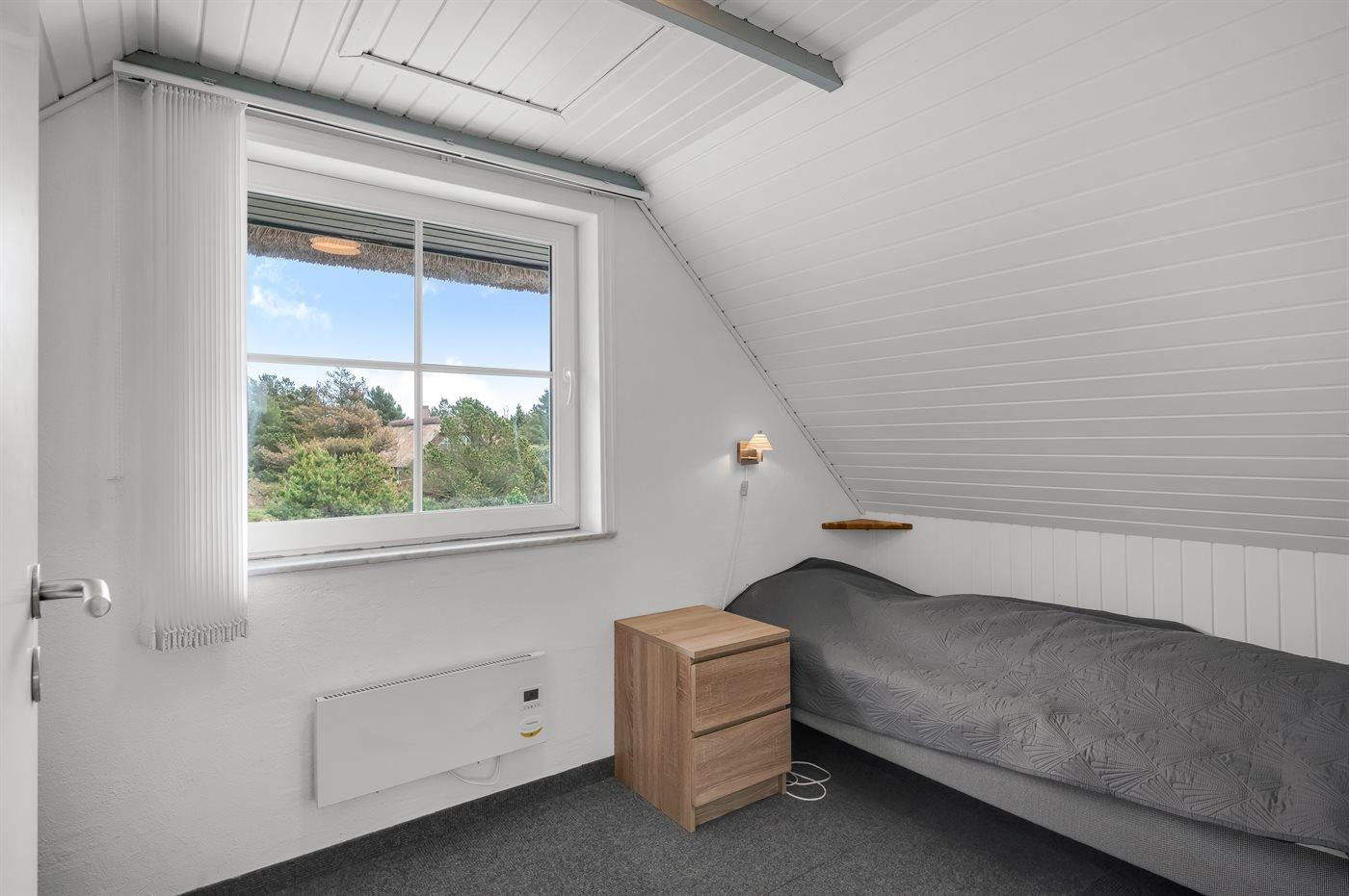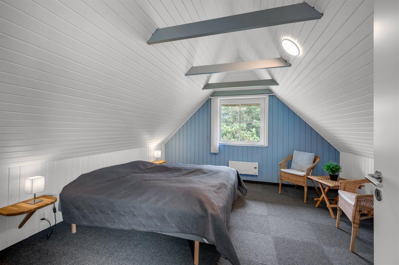 Der er i alt 5 soveværelser. Sovepladserne fordeler sig på: 8 sovepladser i dobbeltsenge. 2 sovepladser i enkeltsenge. Derudover er der 1 stk. barneseng.