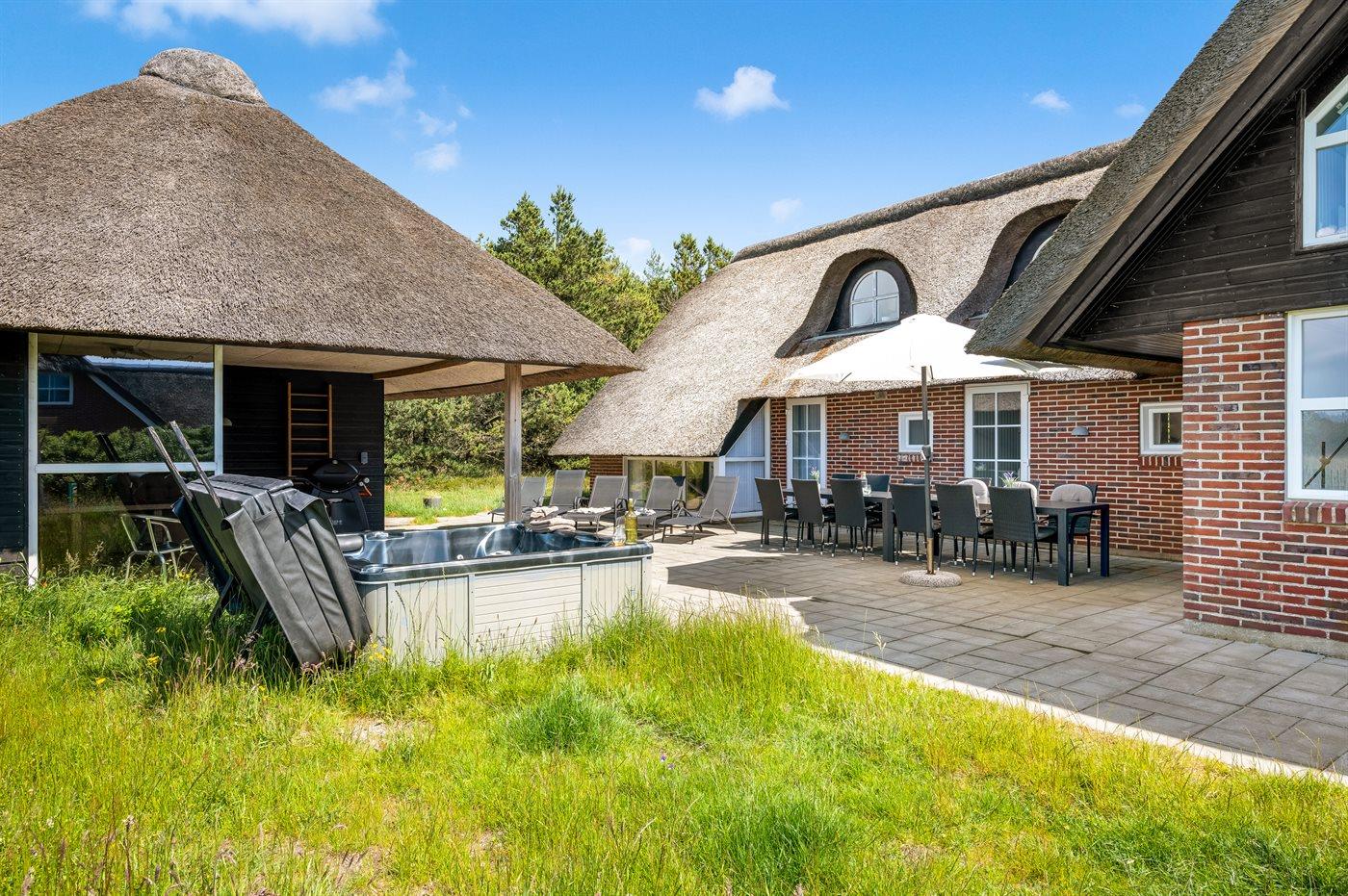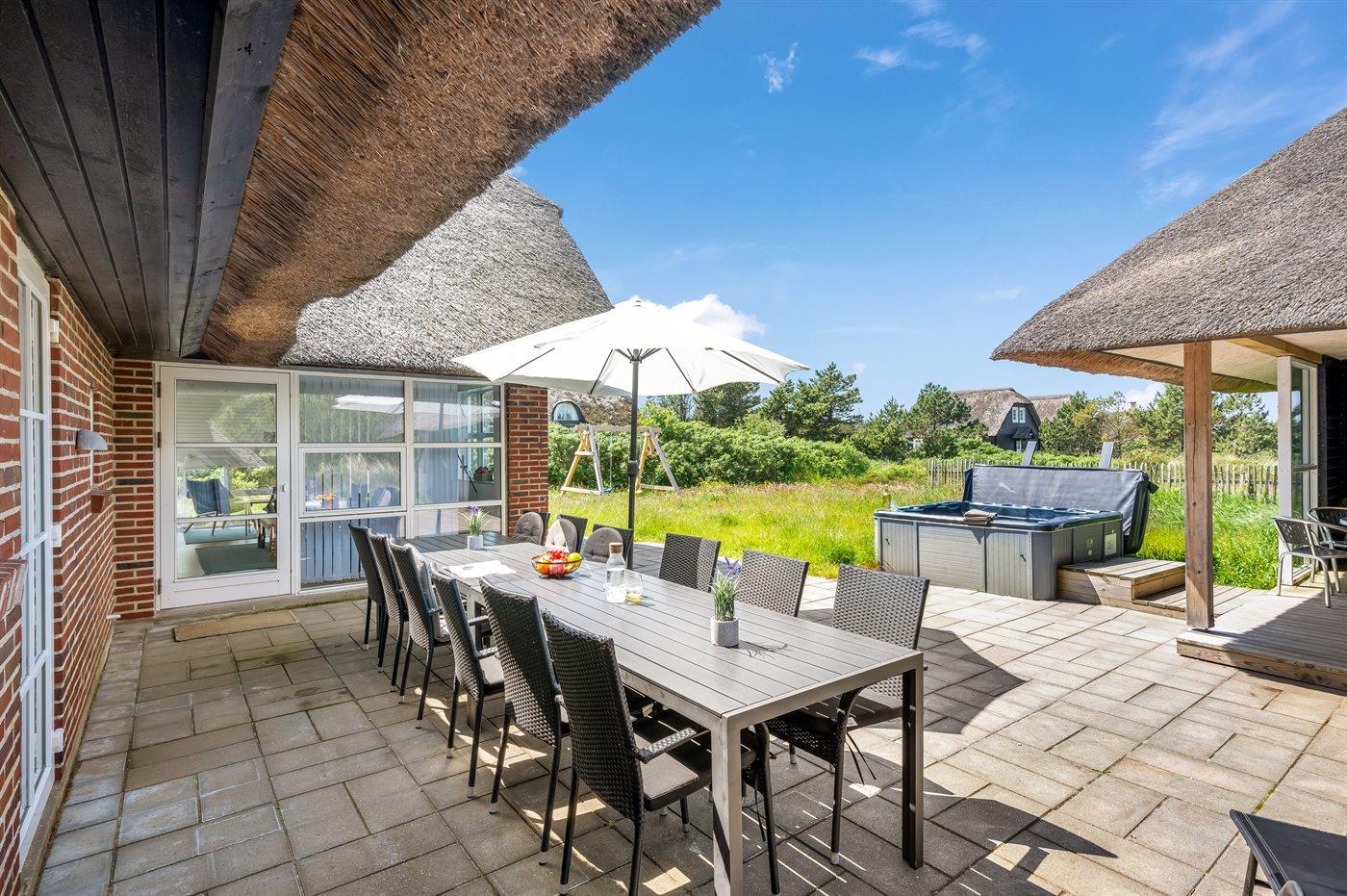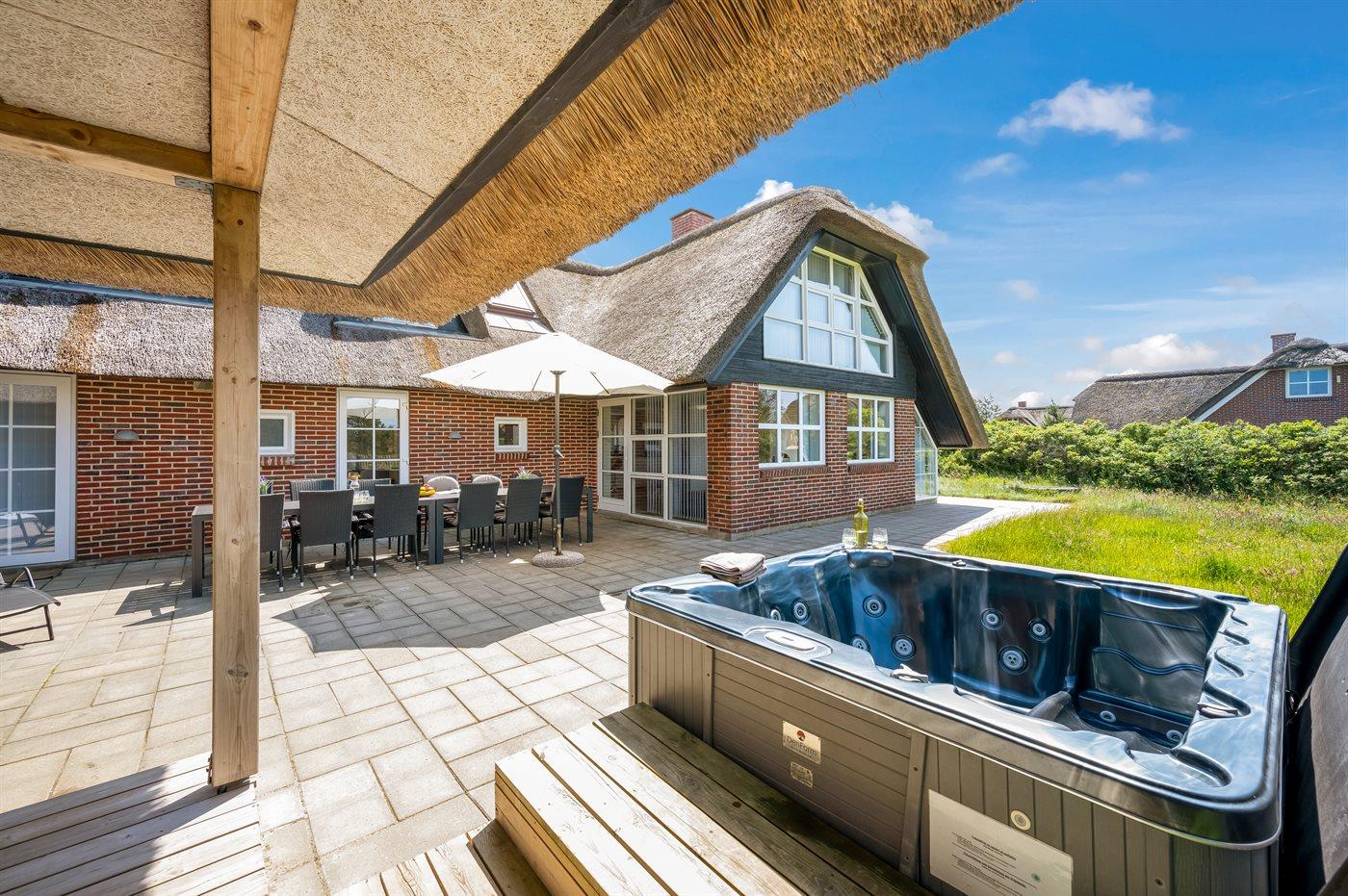 Moderne aktivitetshus i Blåvand med sauna, spabad og billard for både familie og venner.