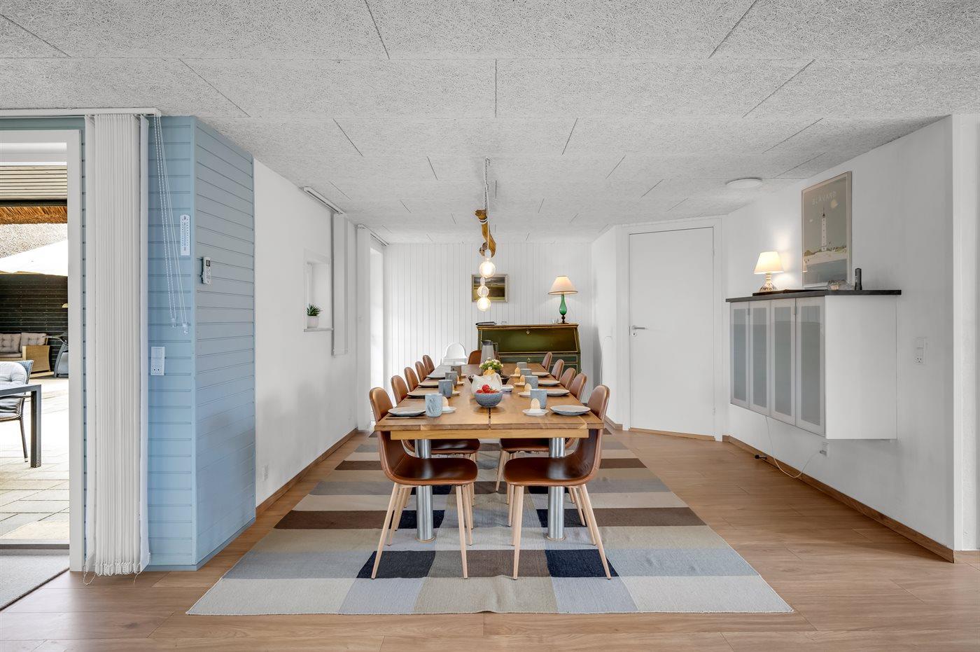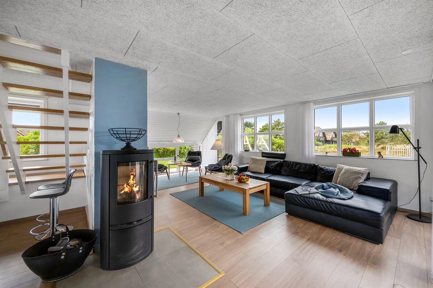 Dette skønne aktivitetshus er perfekt til at danne ramme om en dejlig ferie for hele familien eller sammen med vennerne - med plads til 10 personer og 2 hunde. Sommerhuset, som er moderniseret i 2020/2021, fremstår med moderne og komfortabel indretning og indeholder både sauna, udendørs spabad og billard, som alt sammen er ideelle faciliteter til hygge og samvær.