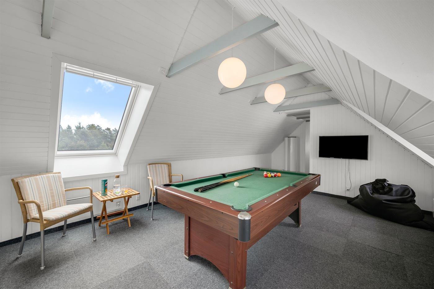 I aktivitetsrummet er der følgende udstyr: Billard og TV .