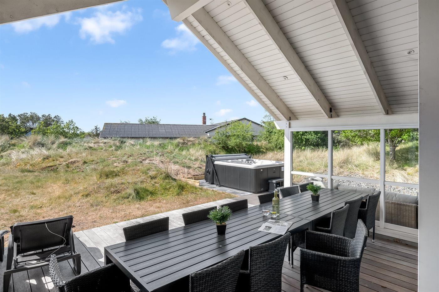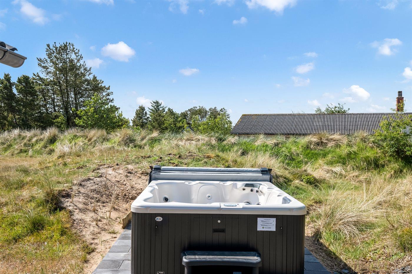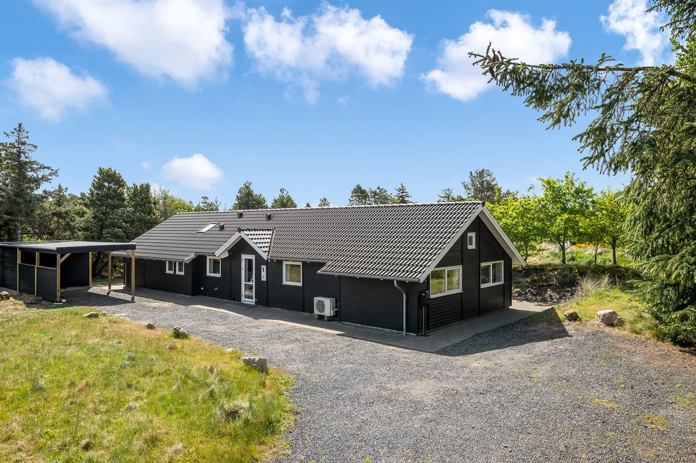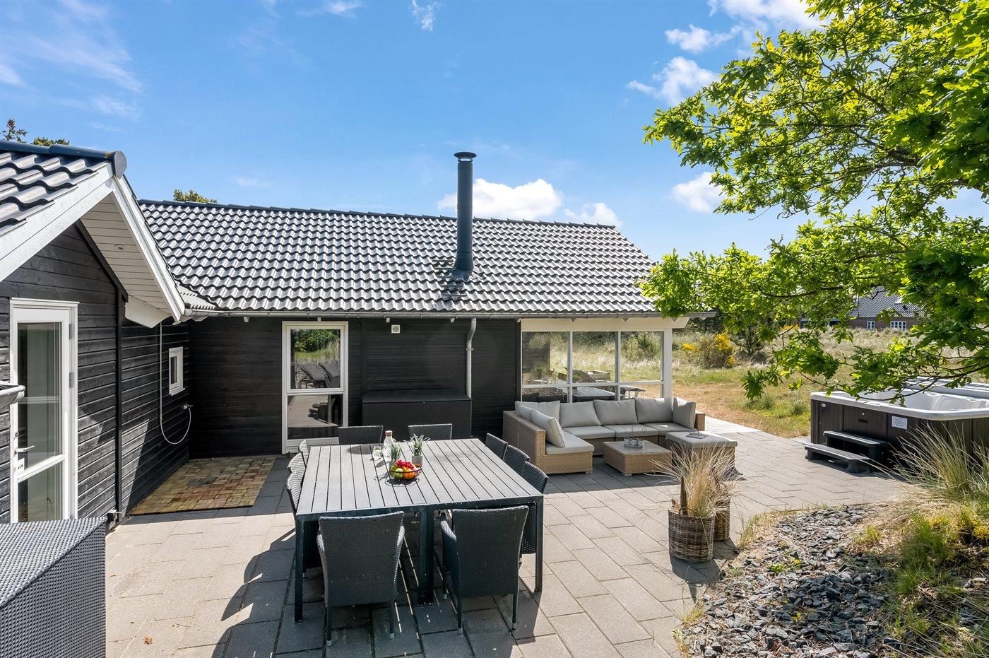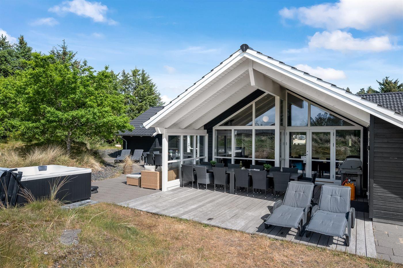 Velholdt sommerhus i Blåvand med aktivitetsrum, spa og elbil-ladestander tæt på strand og by.